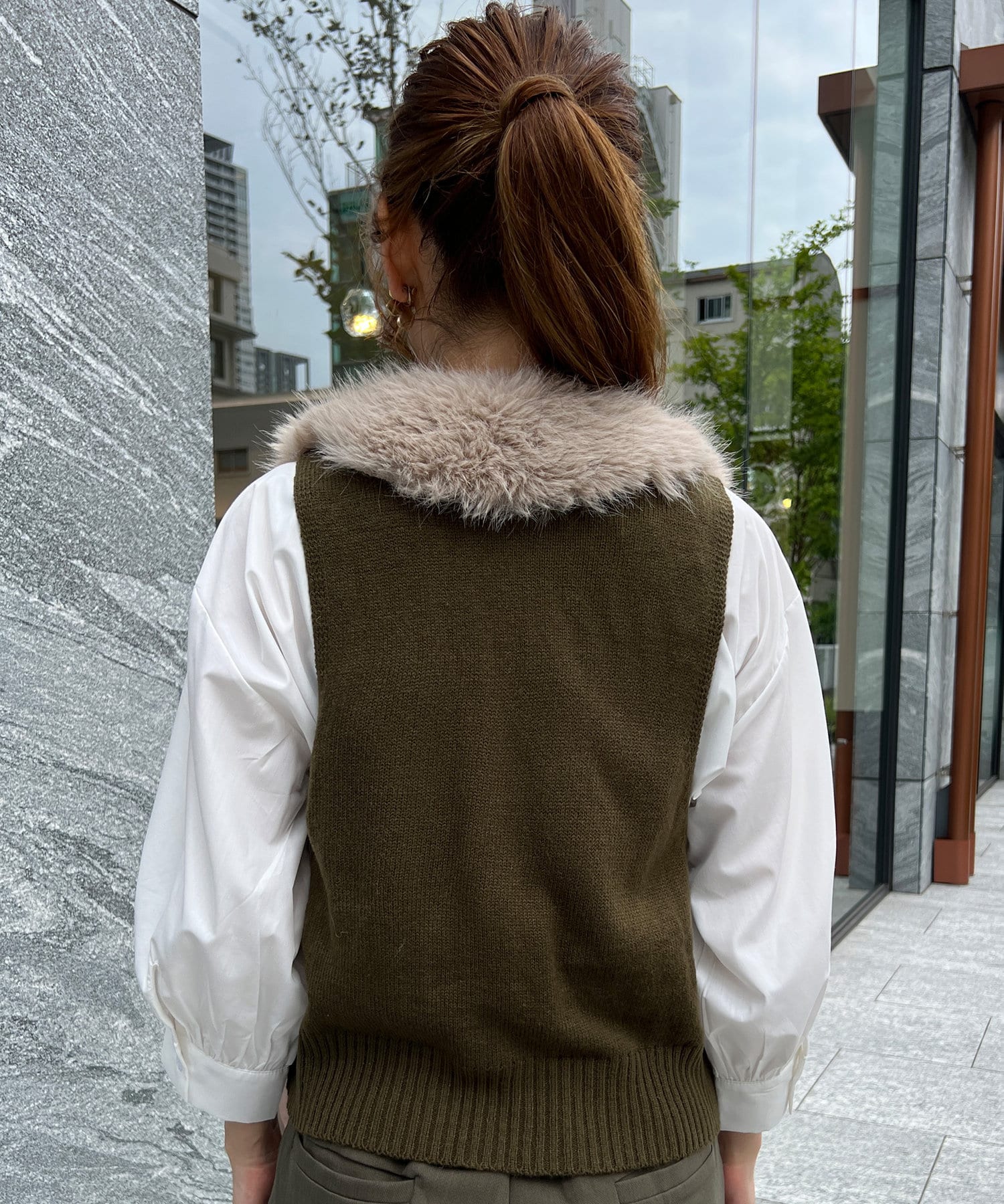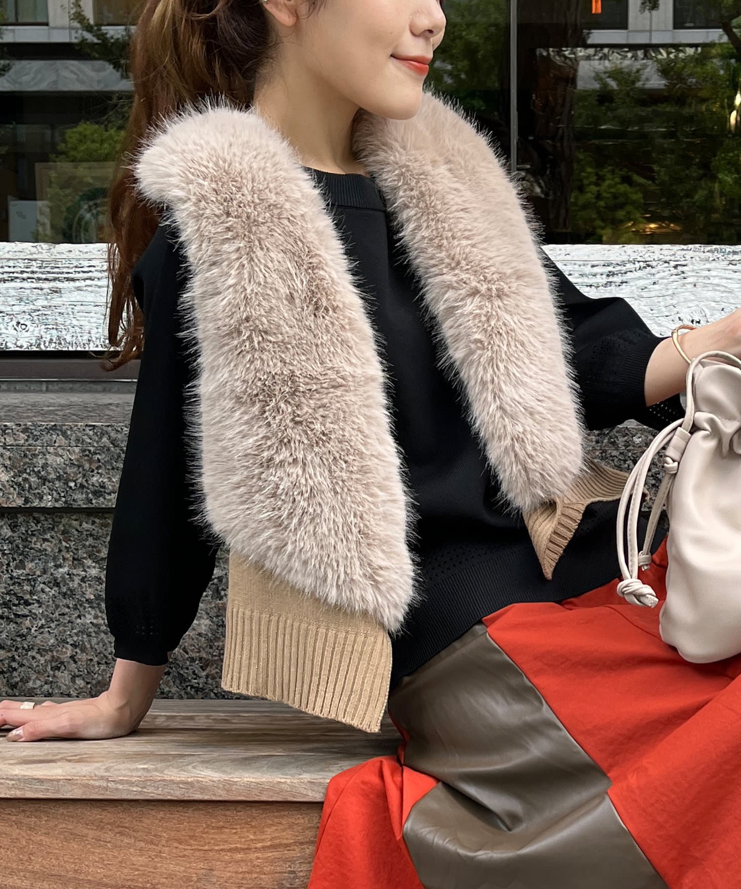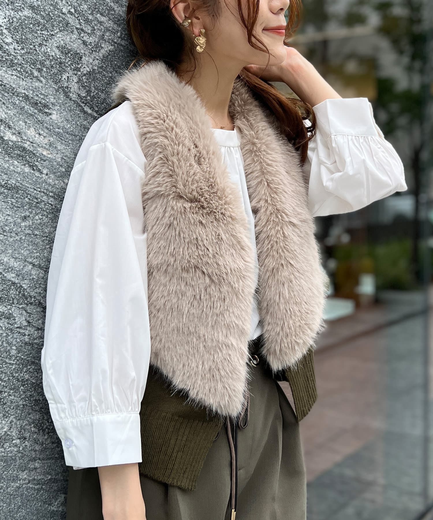 フェイクファー×ニットジレ