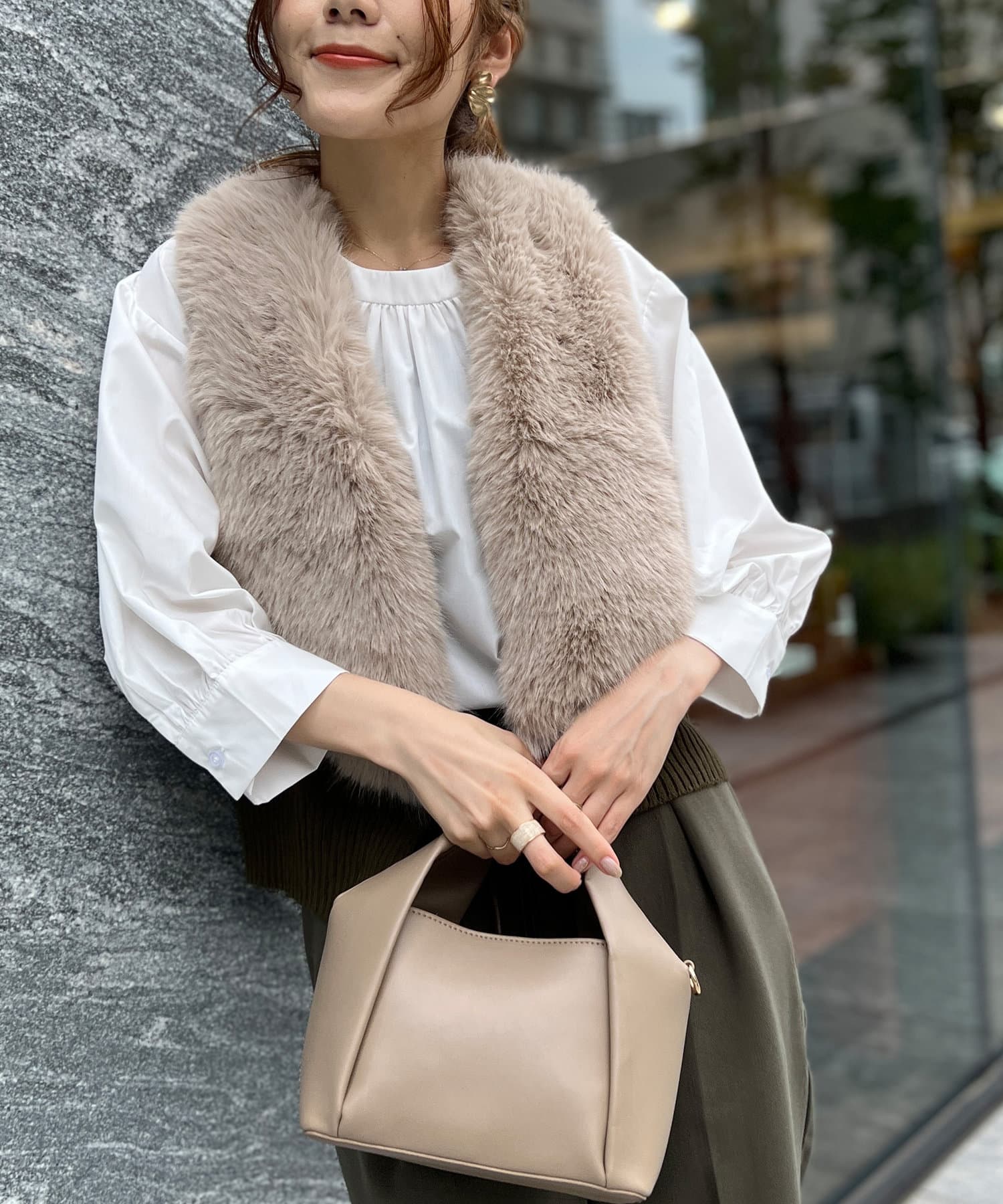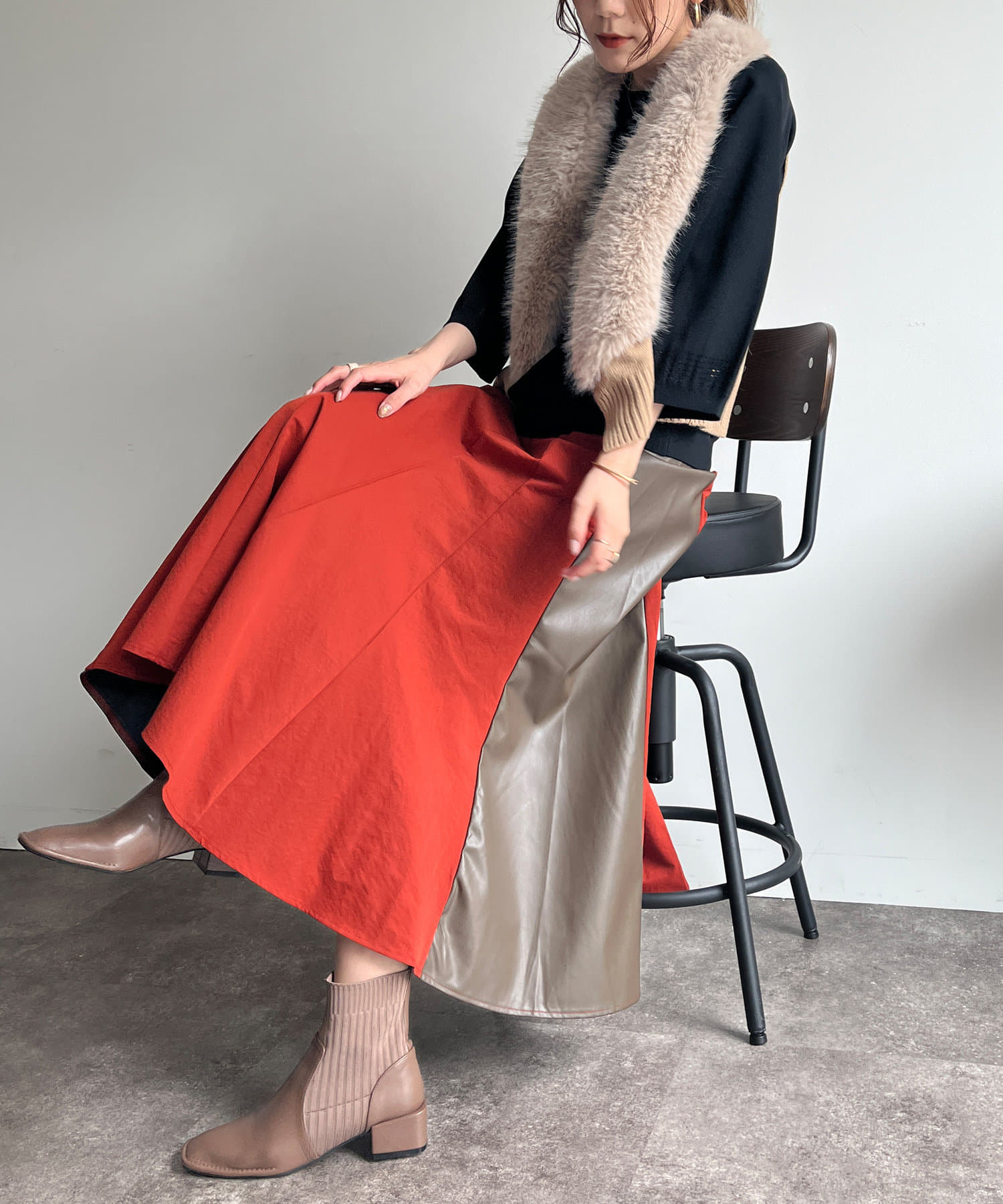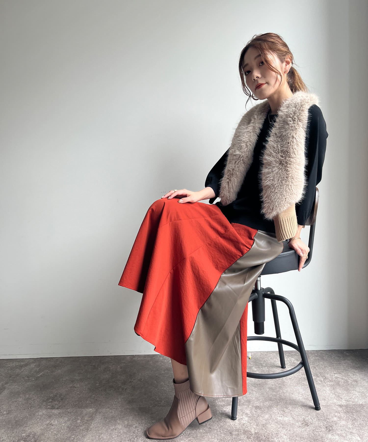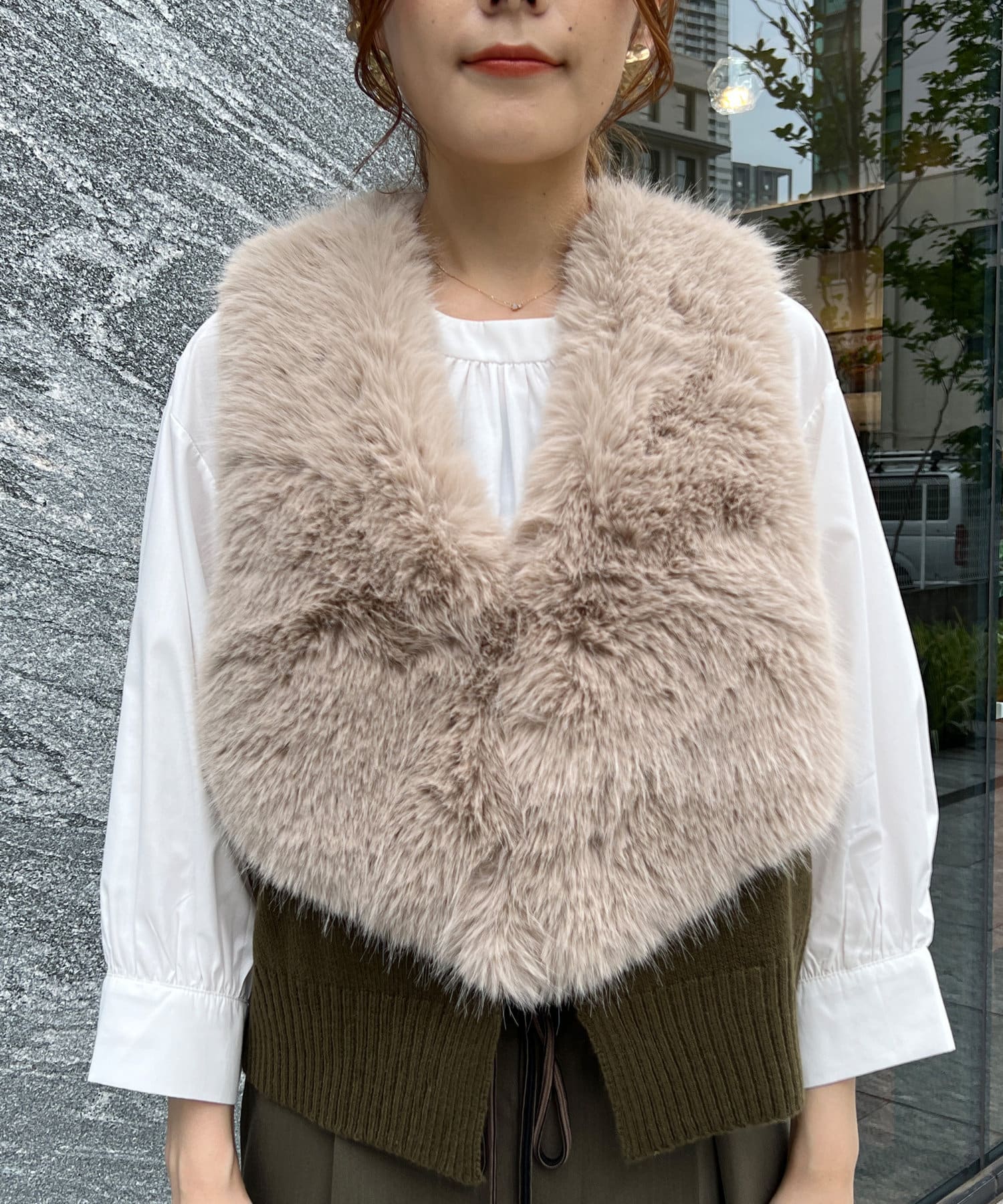 フェイクファー×ニットジレ