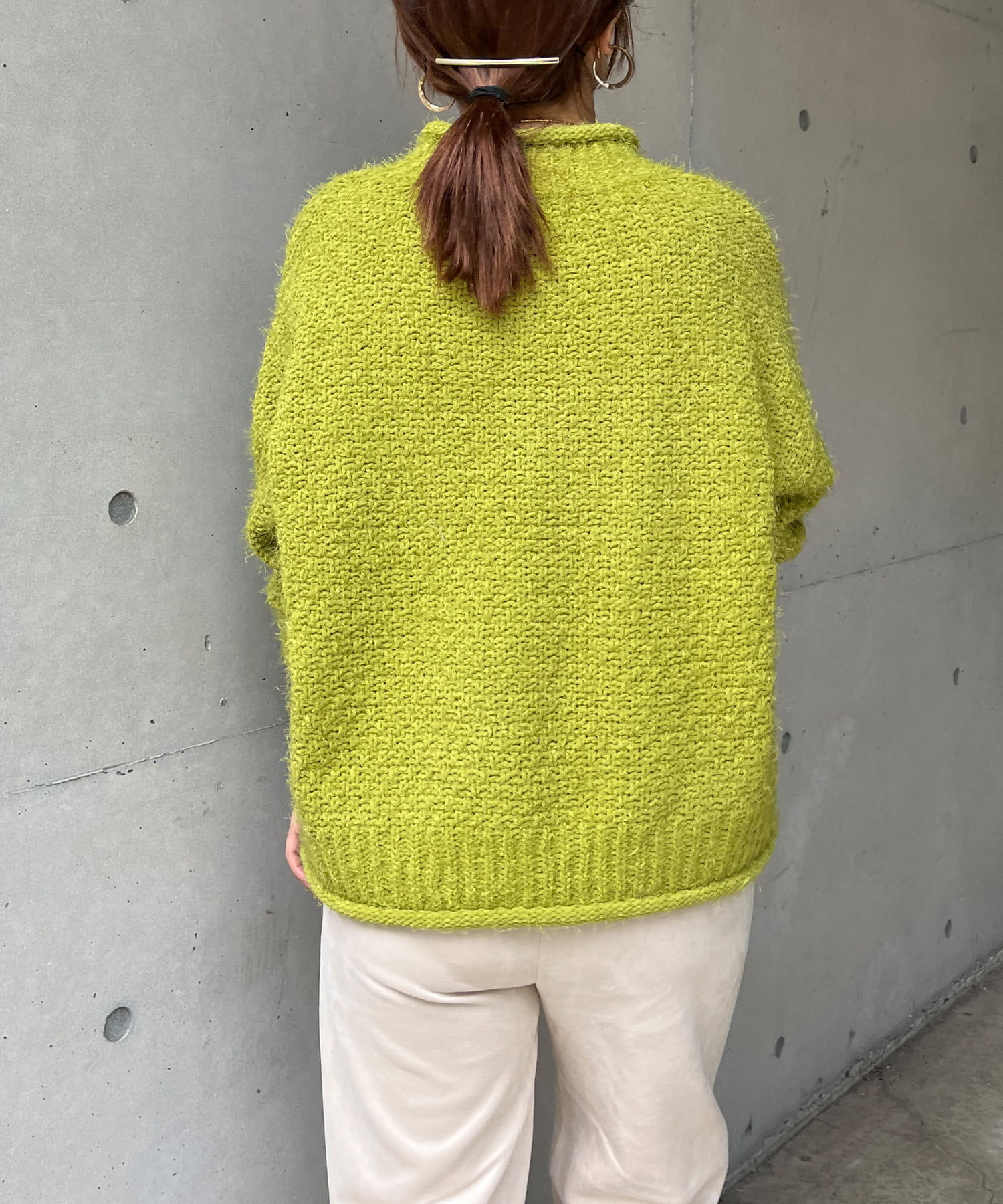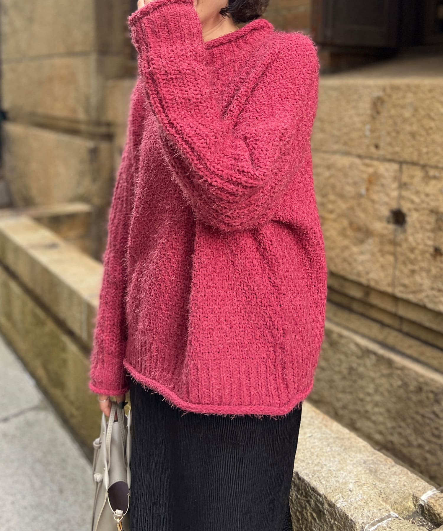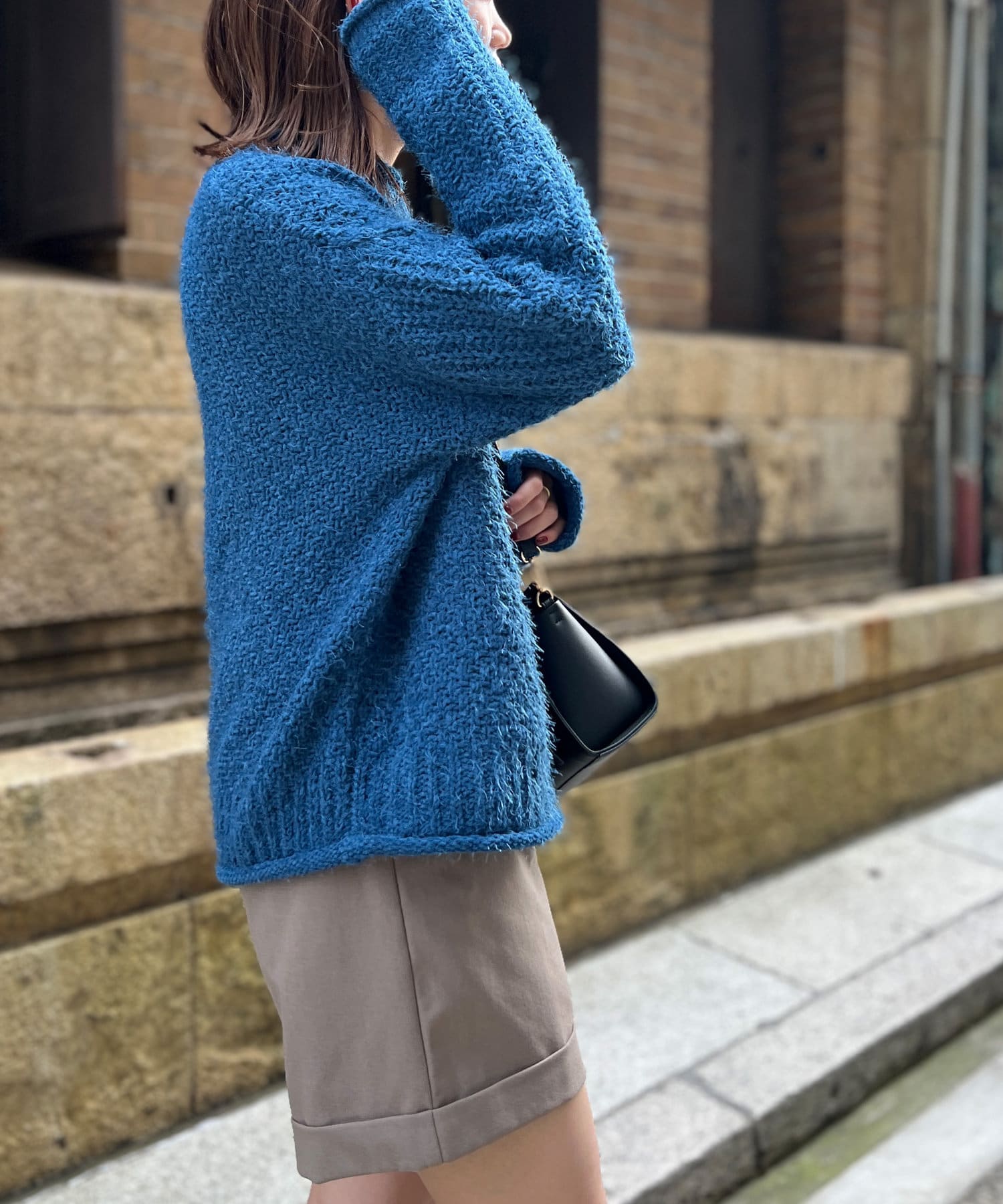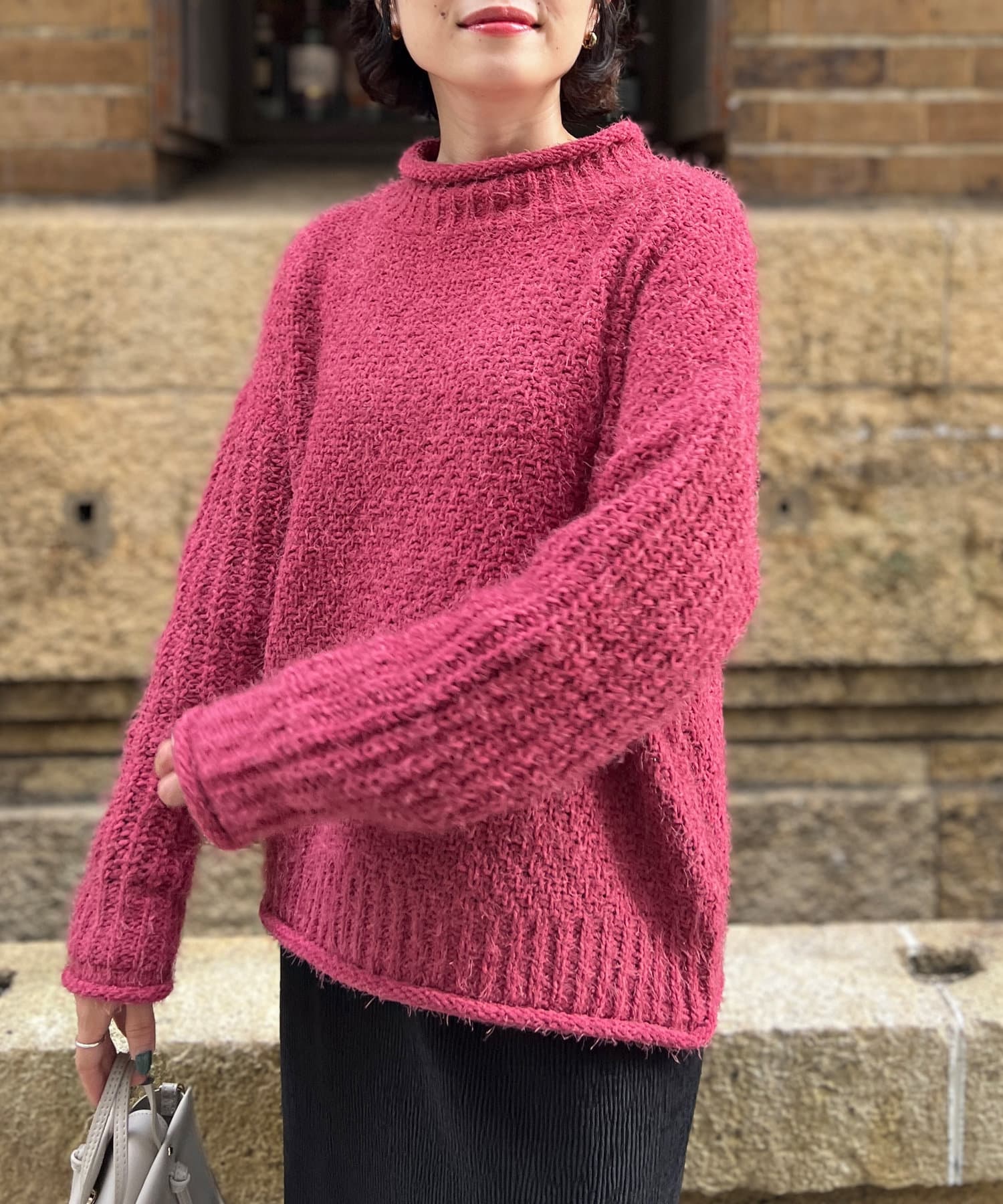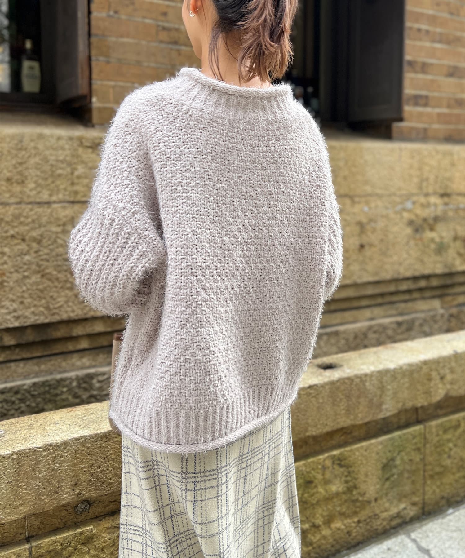 バスケットのような凹凸のある編立てがシンプルなコーディネートにも映える1枚です。