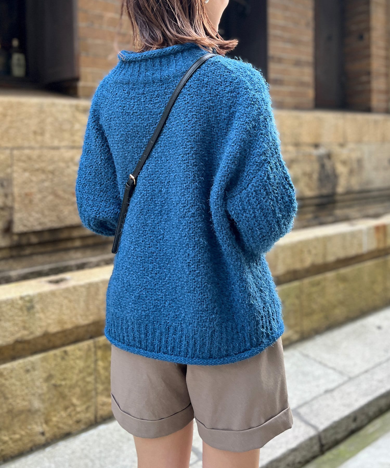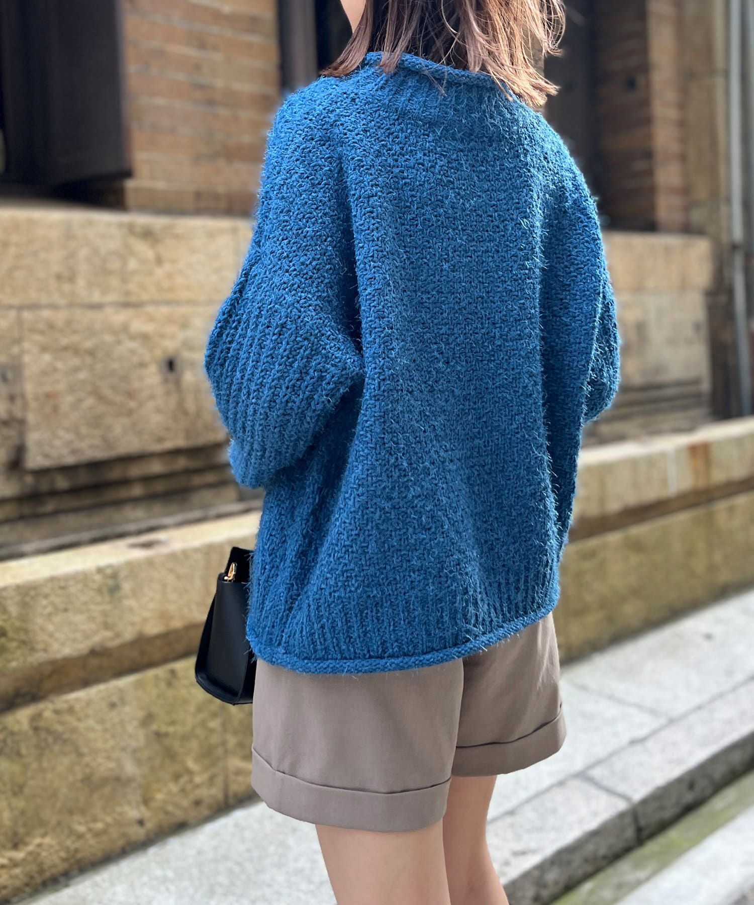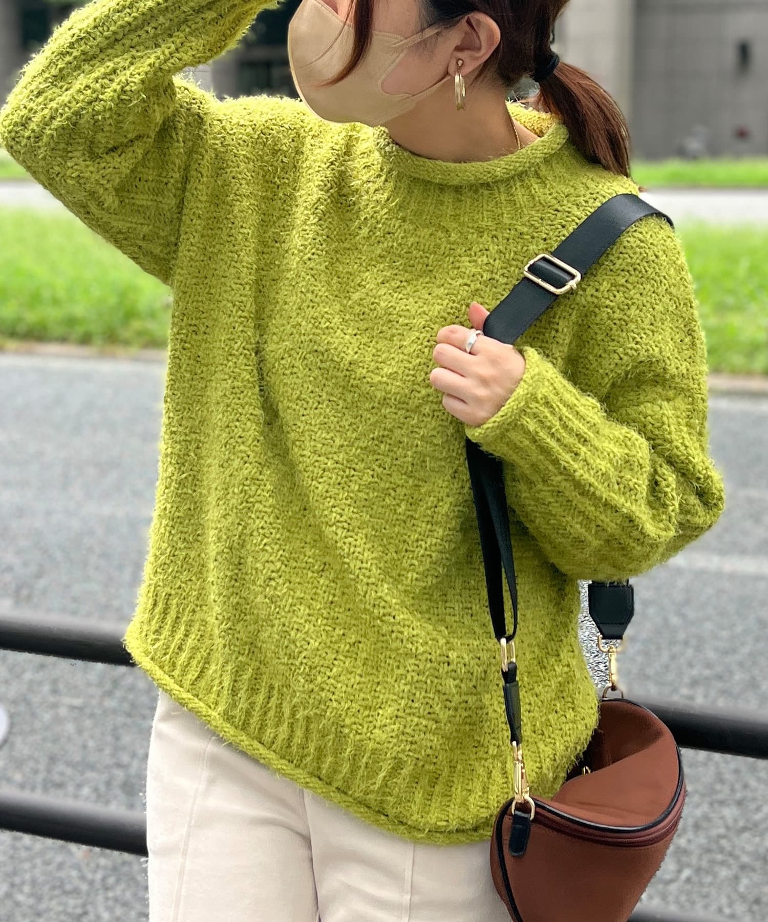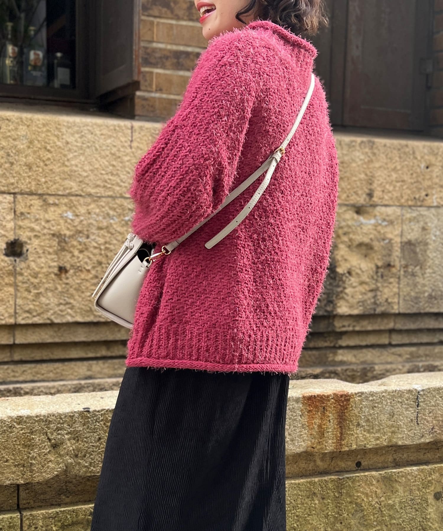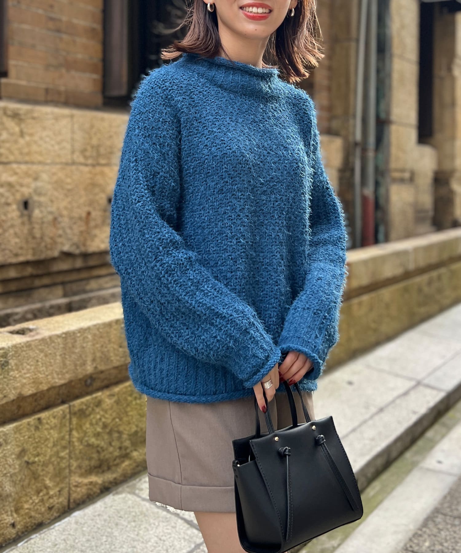 バスケットのような凹凸のある編立てがシンプルなコーディネートにも映える1枚です。