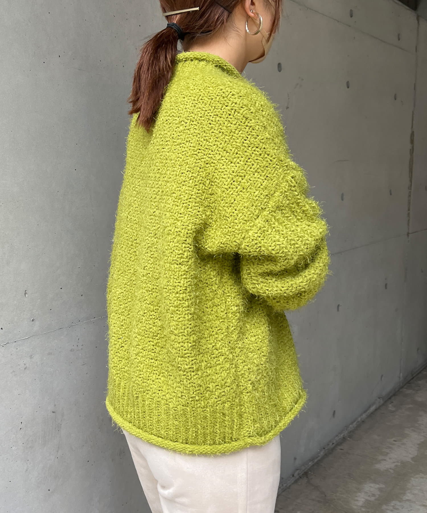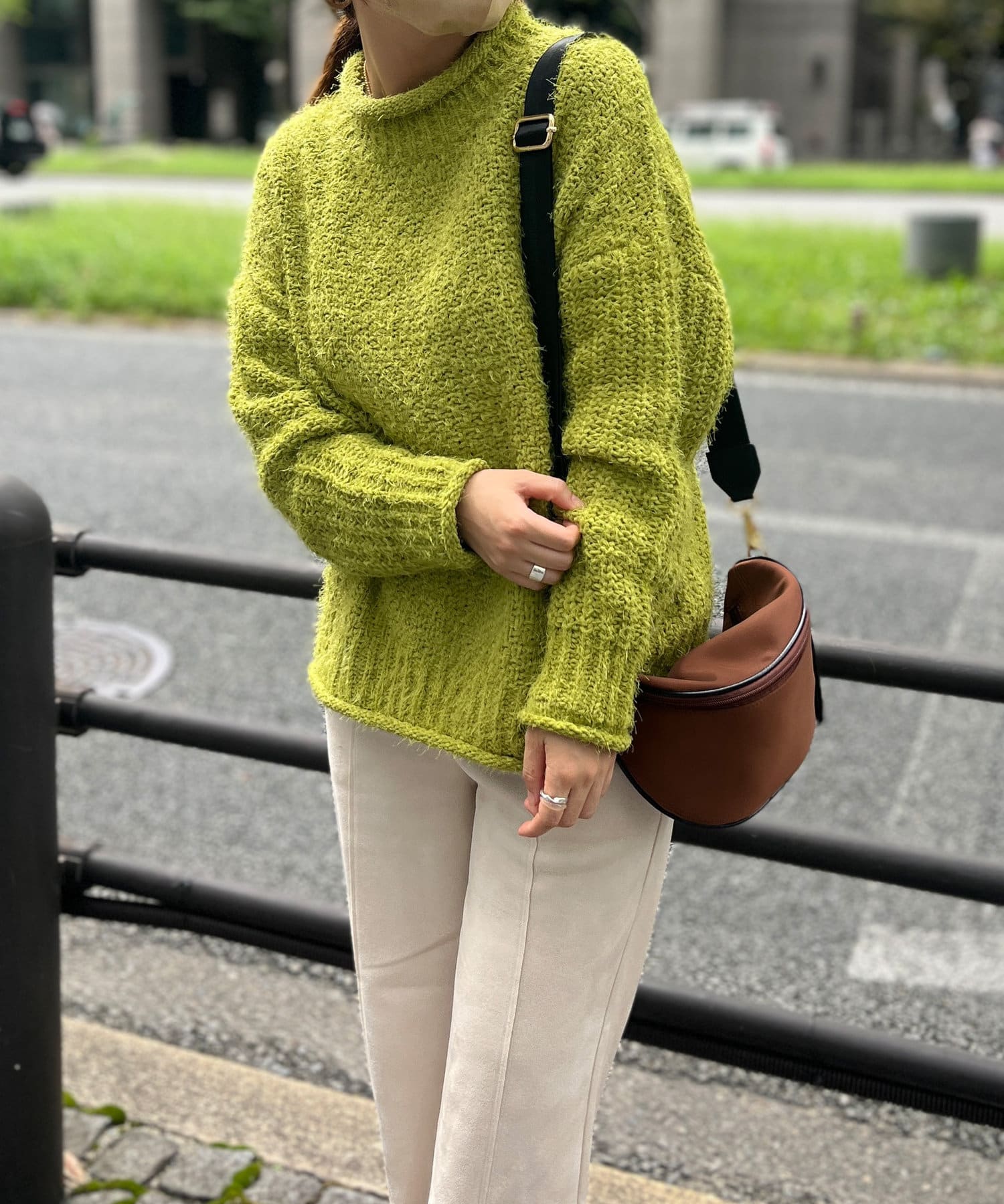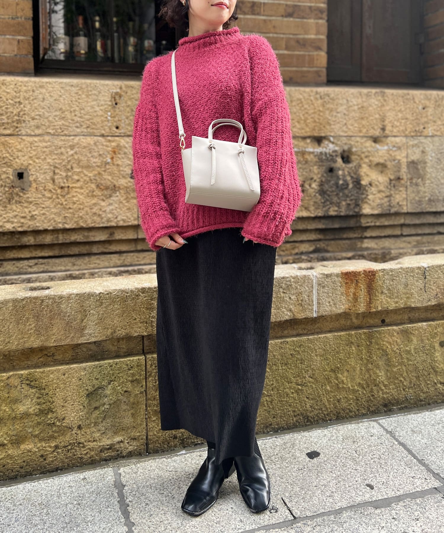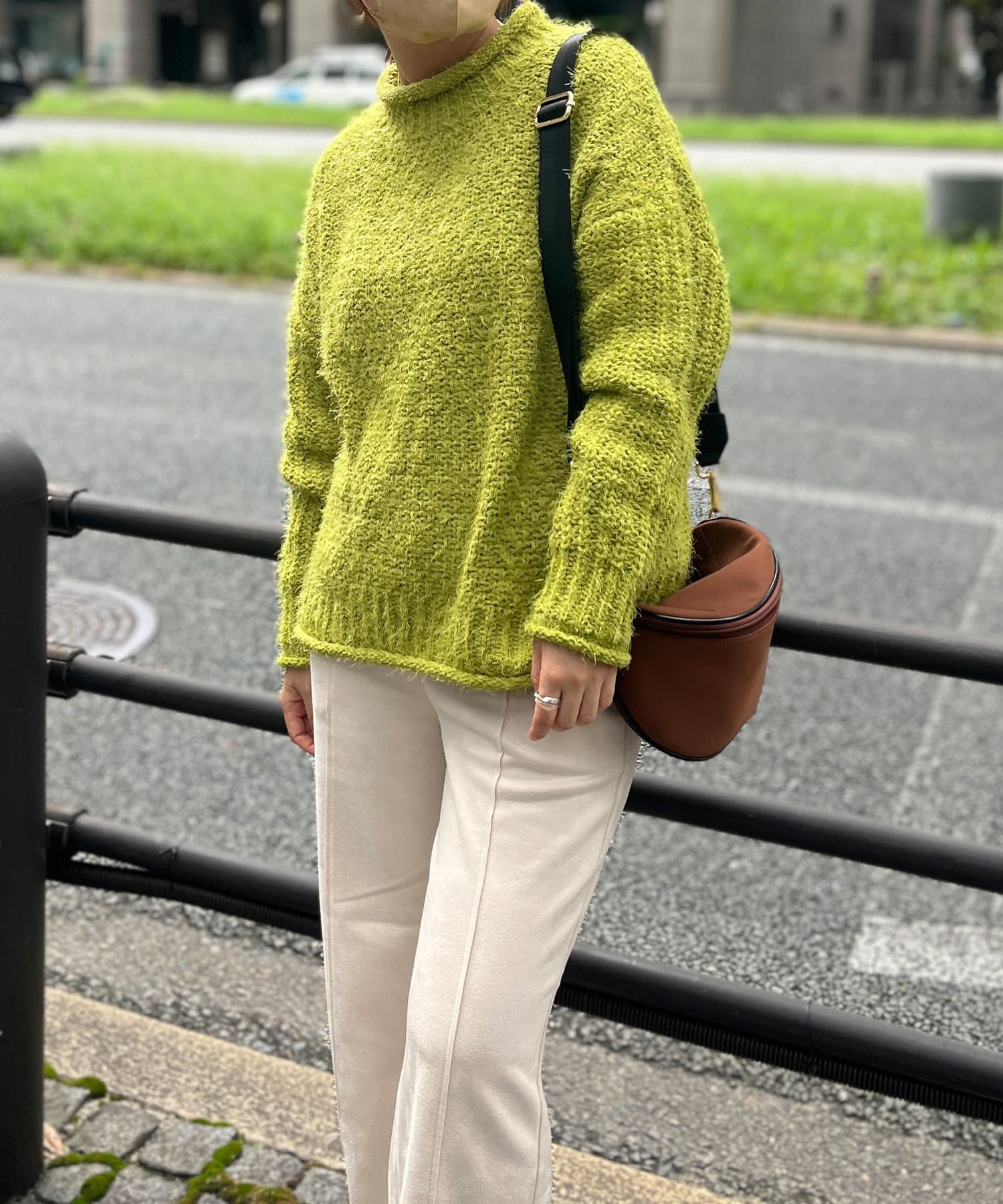 バスケットのような凹凸のある編立てがシンプルなコーディネートにも映える1枚です。