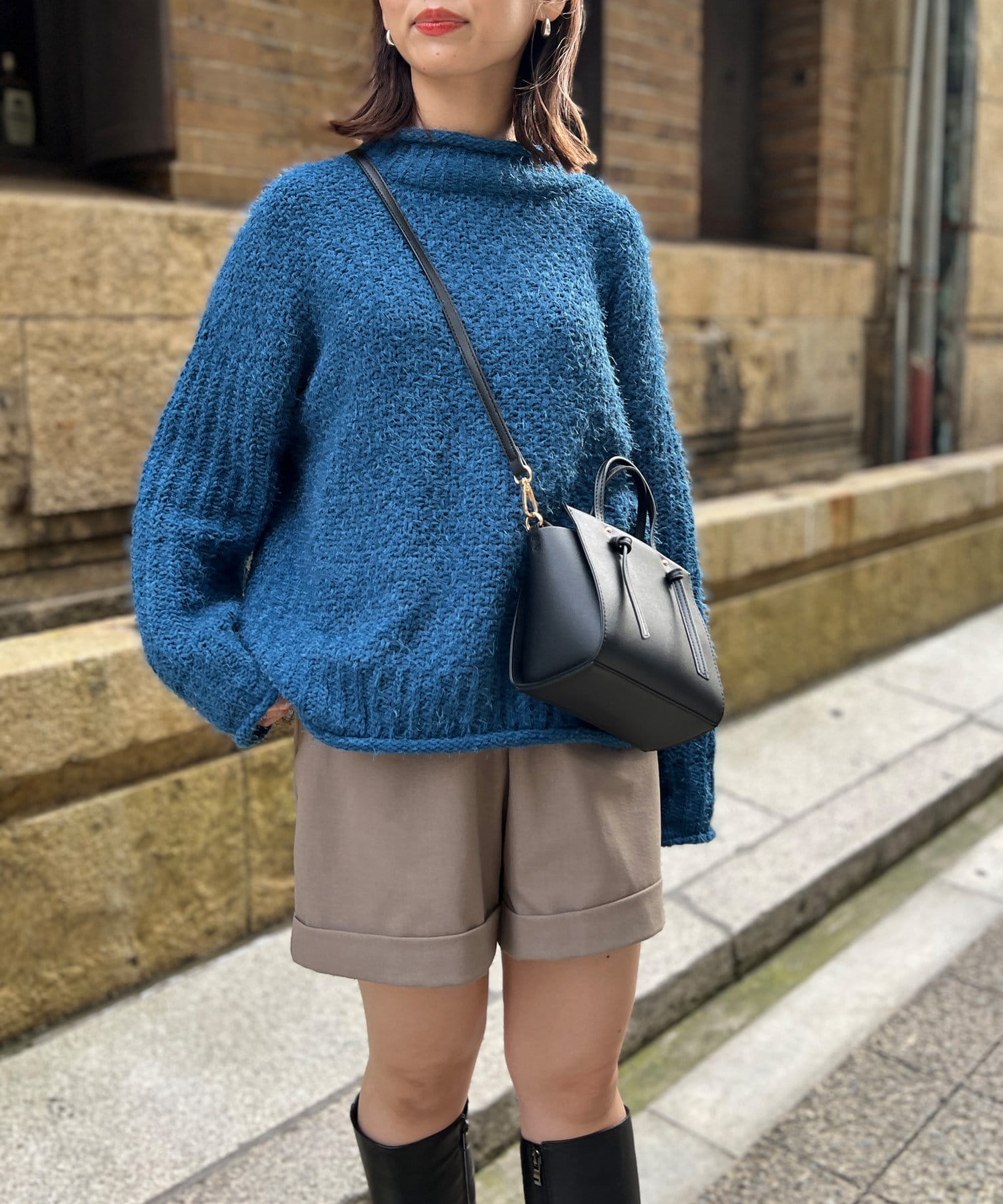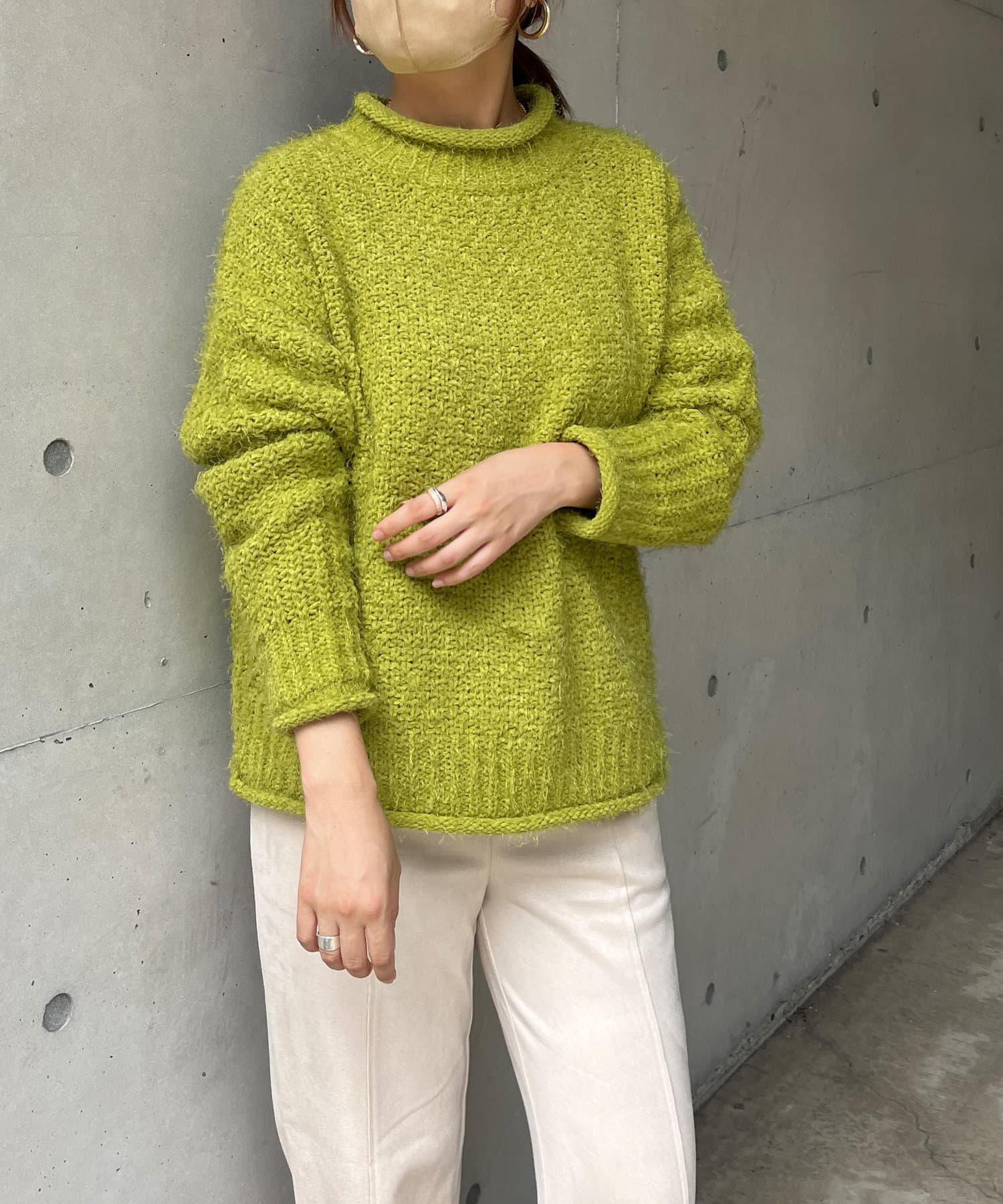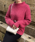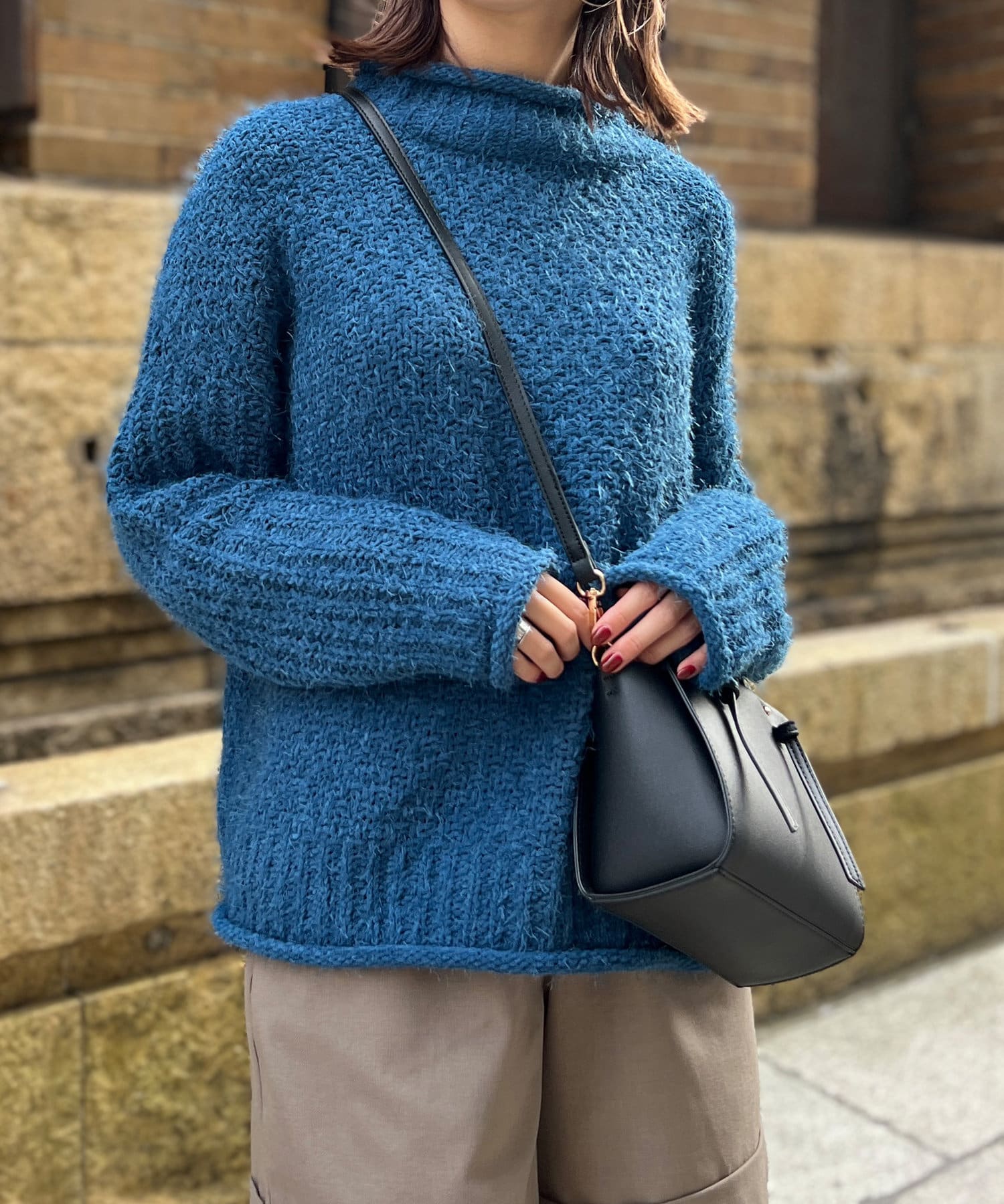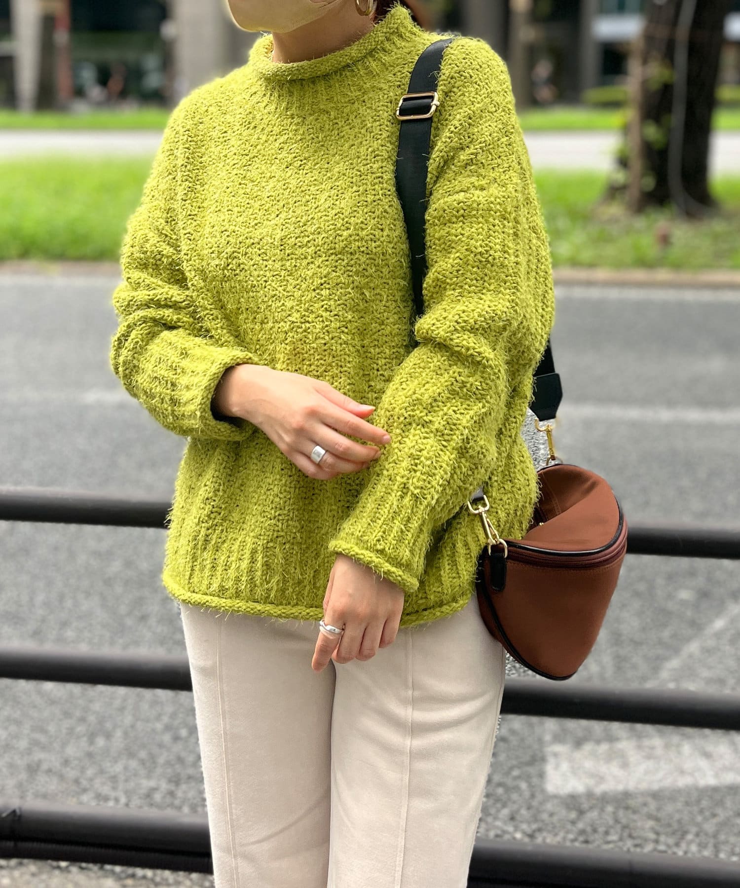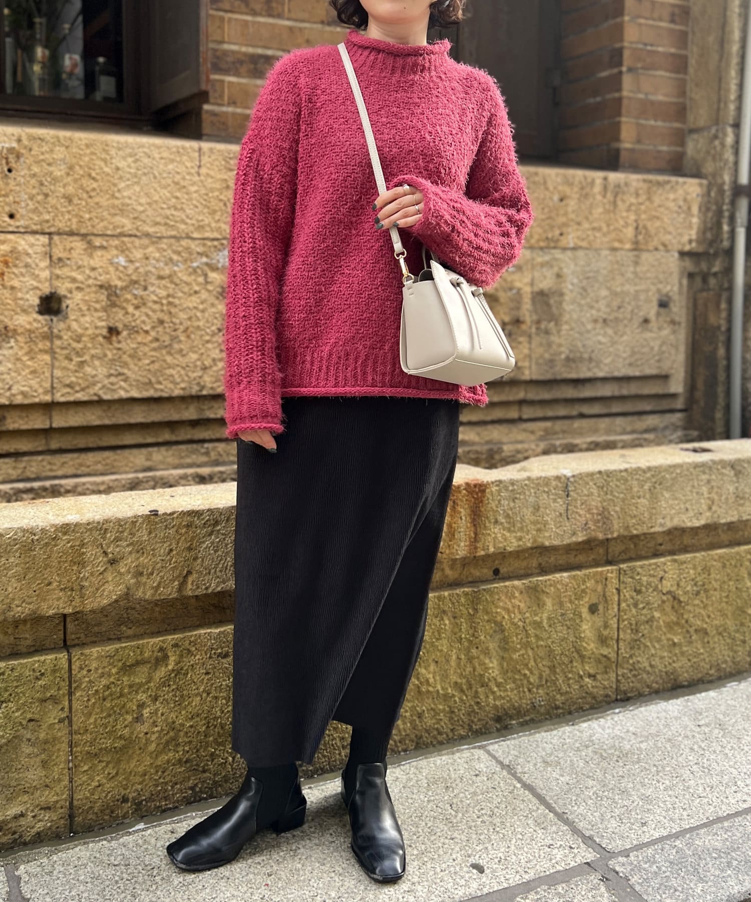バスケットのような凹凸のある編立てがシンプルなコーディネートにも映える1枚です。