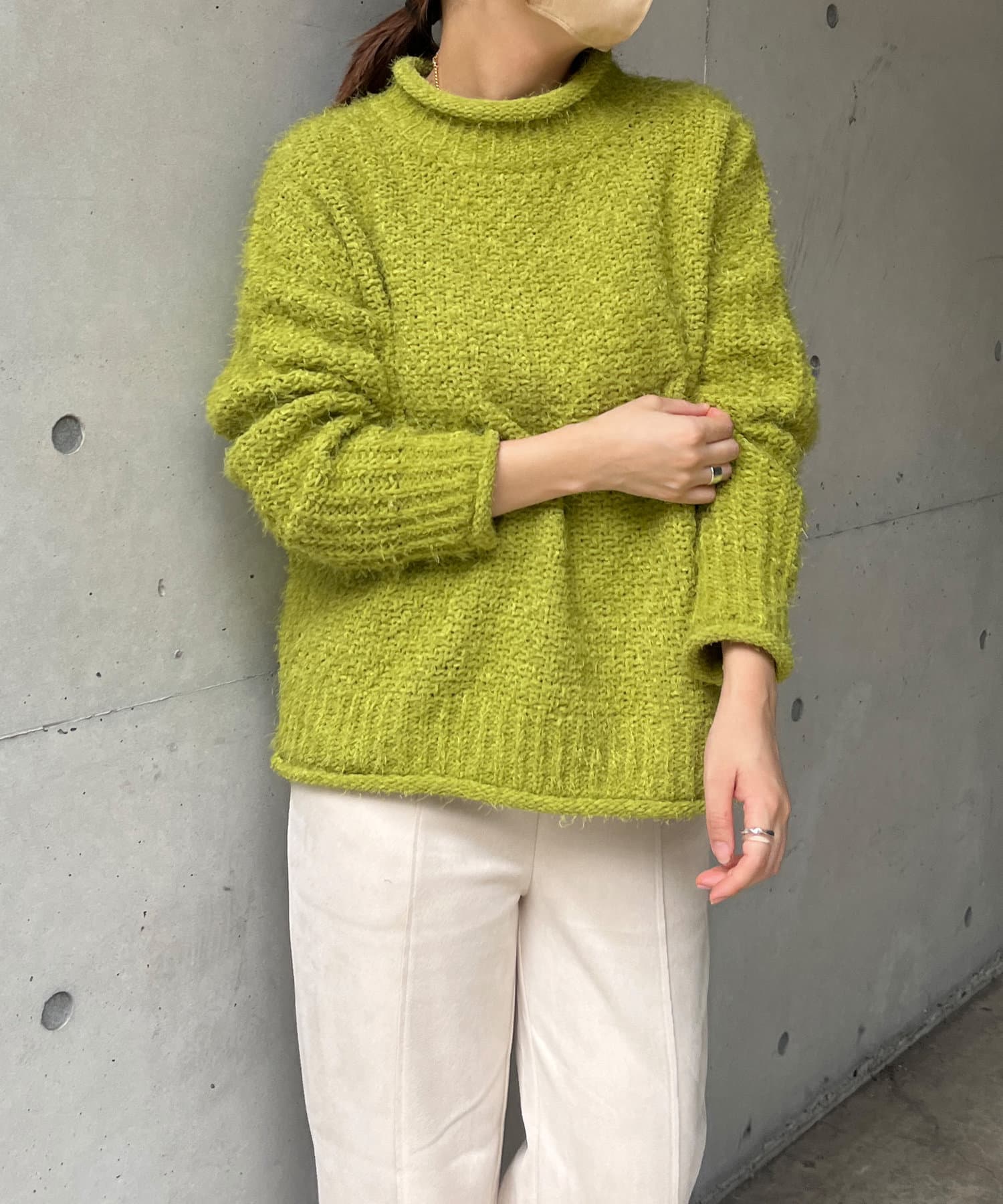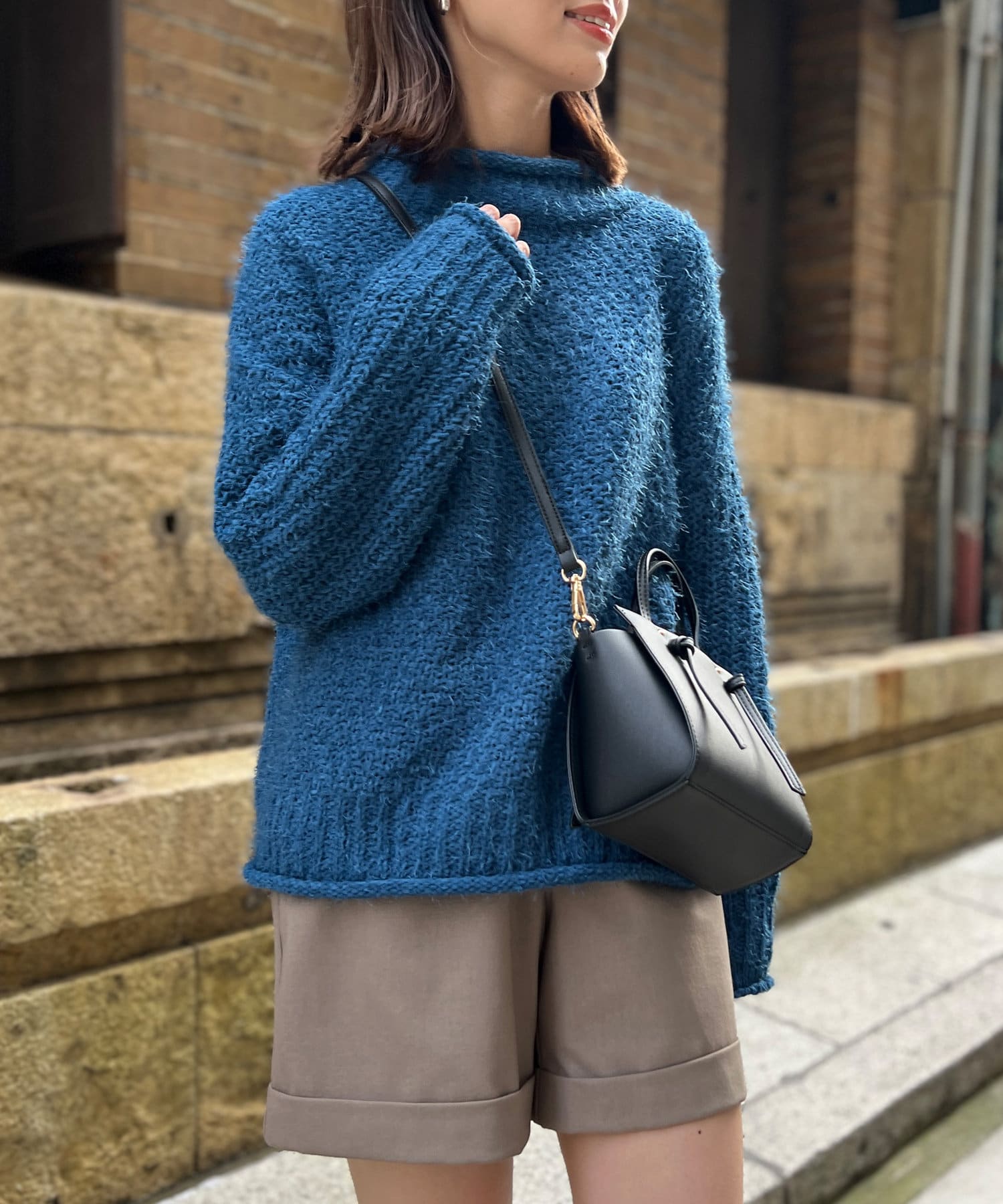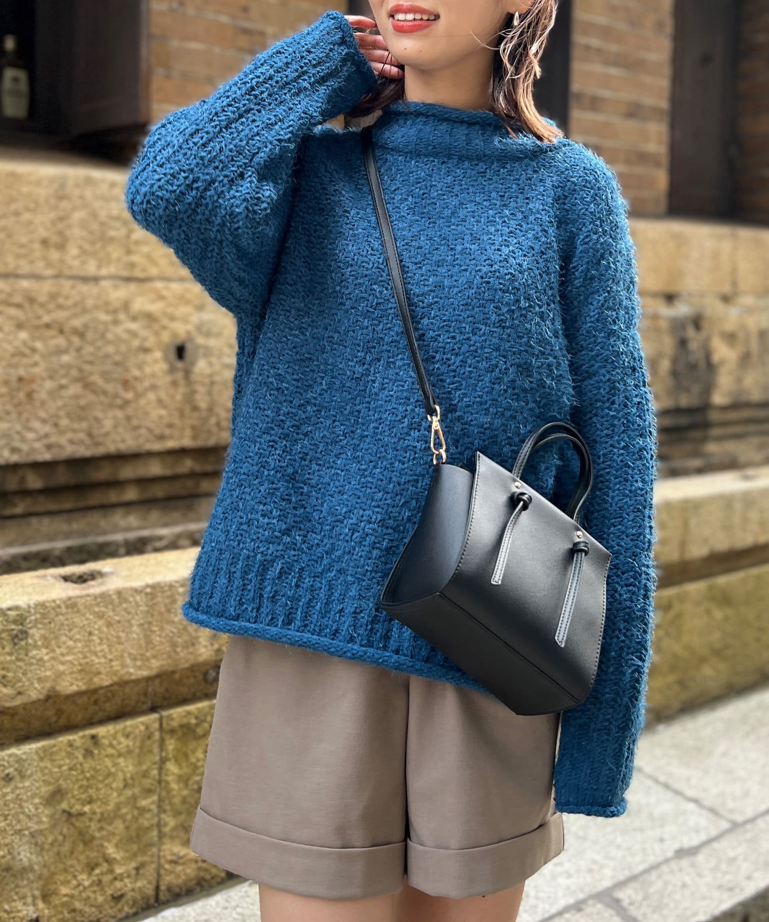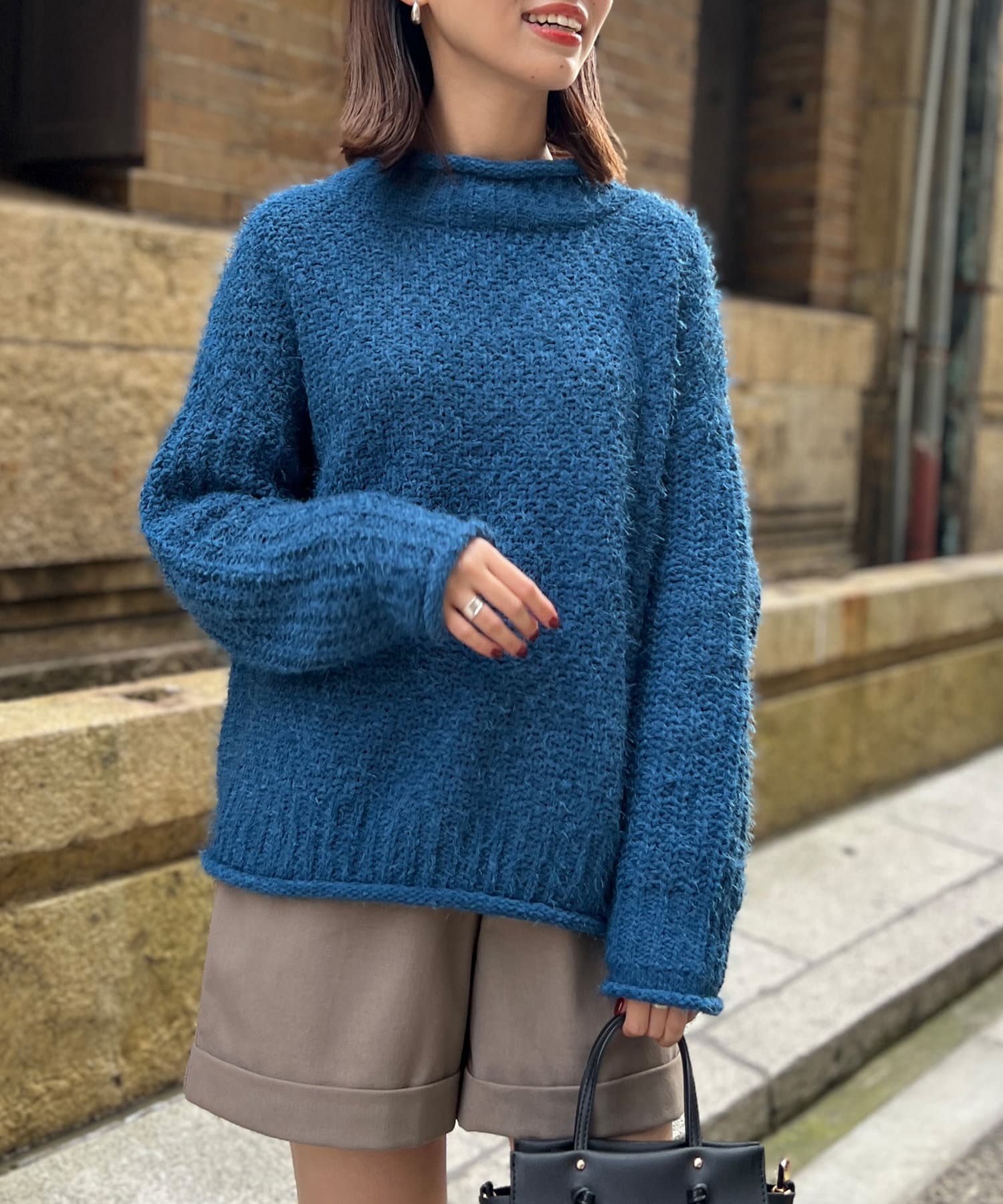 バスケットのような凹凸のある編立てがシンプルなコーディネートにも映える1枚です。