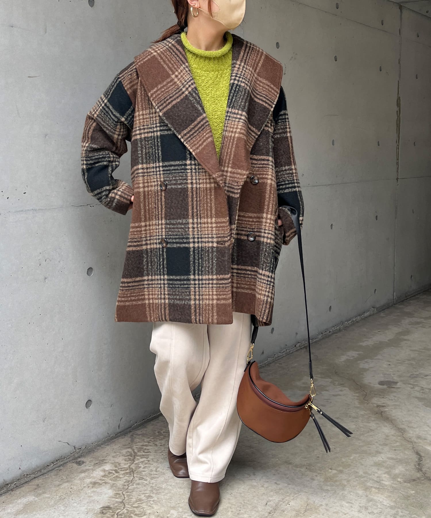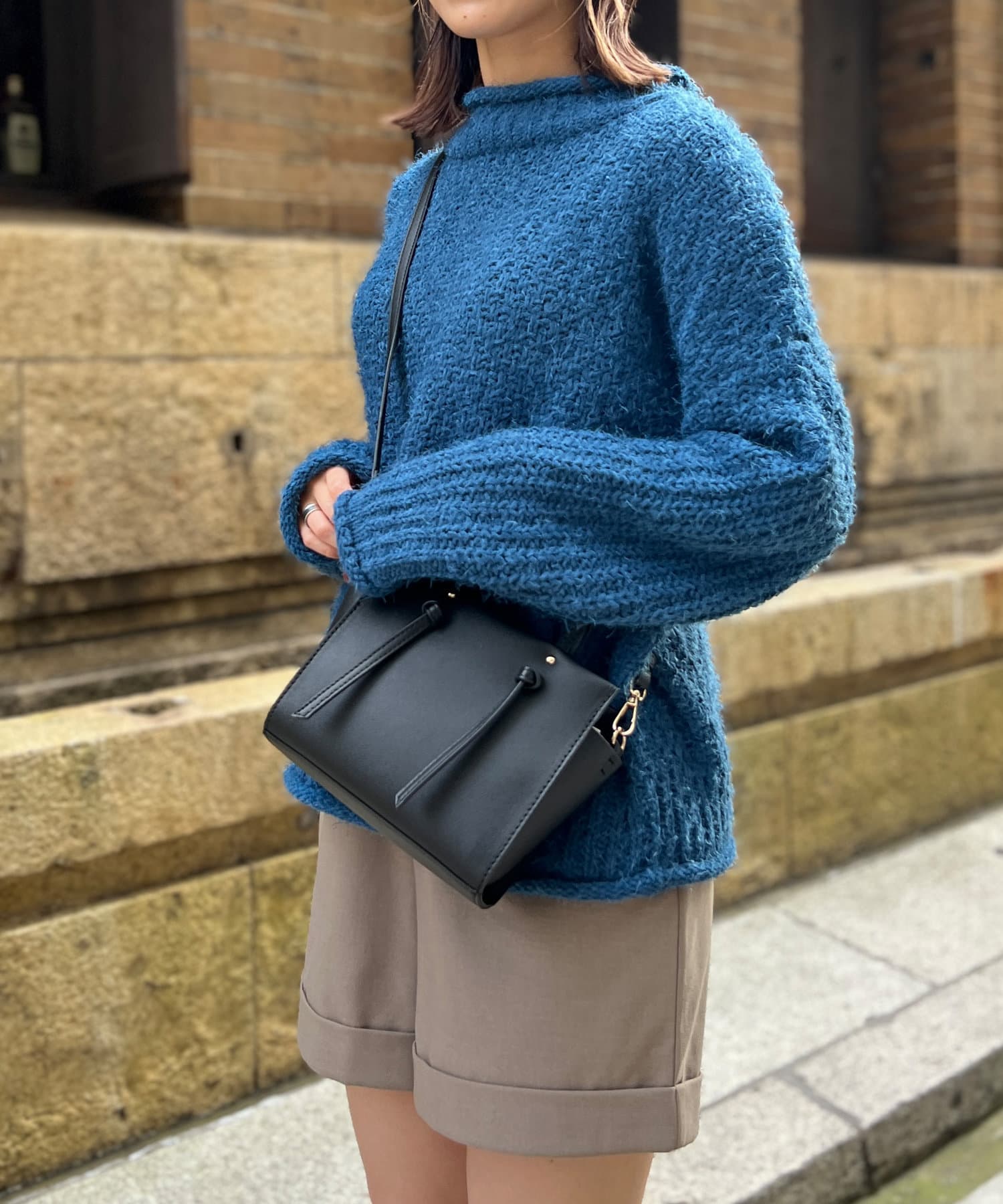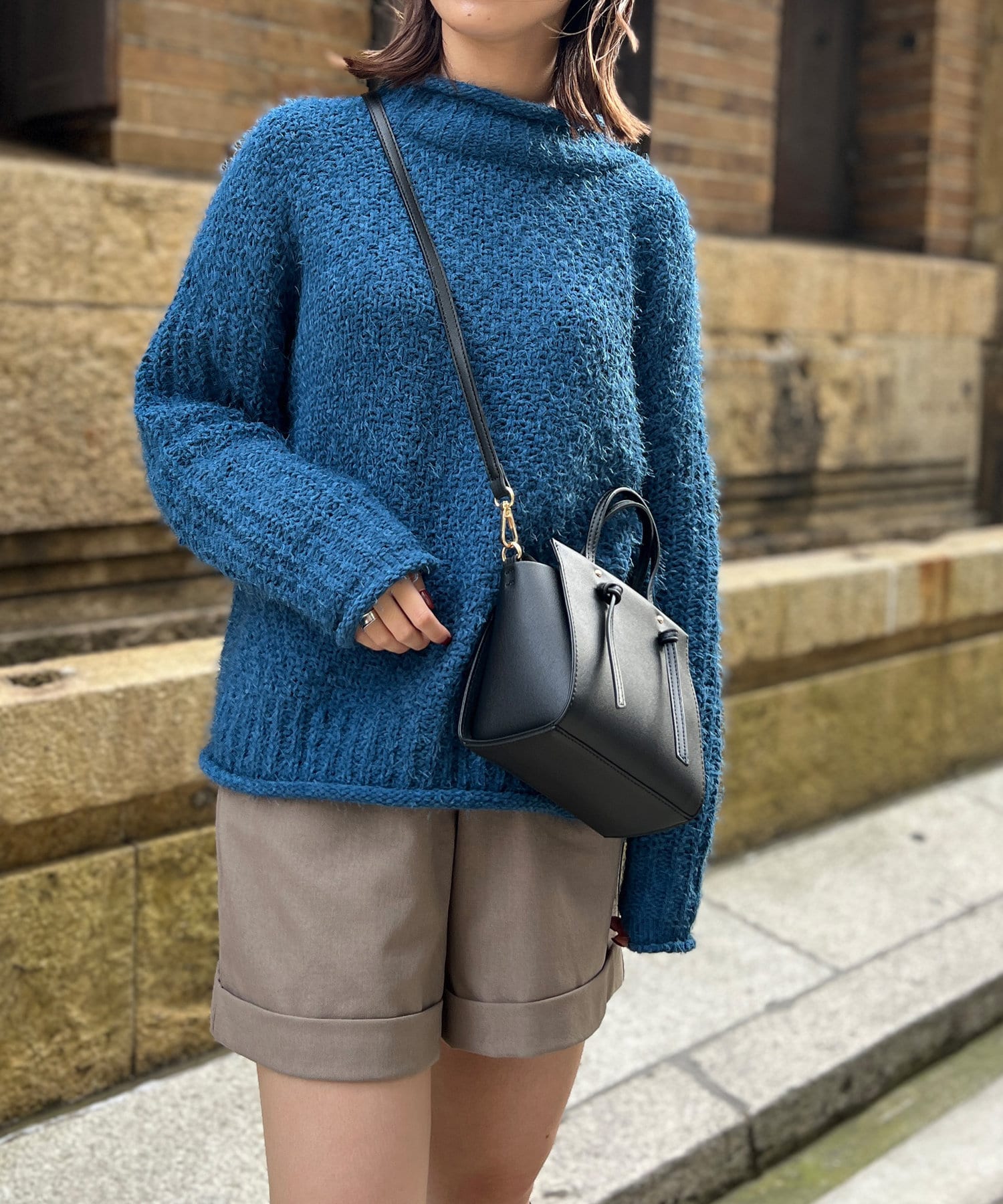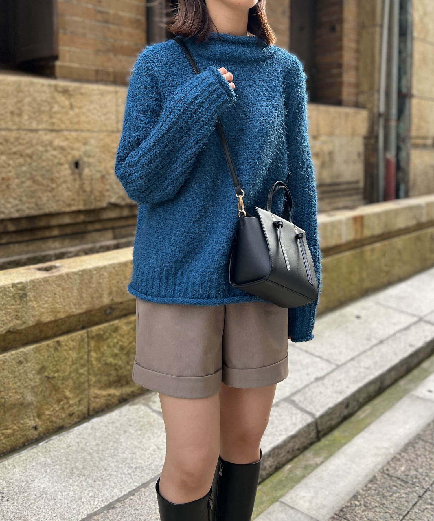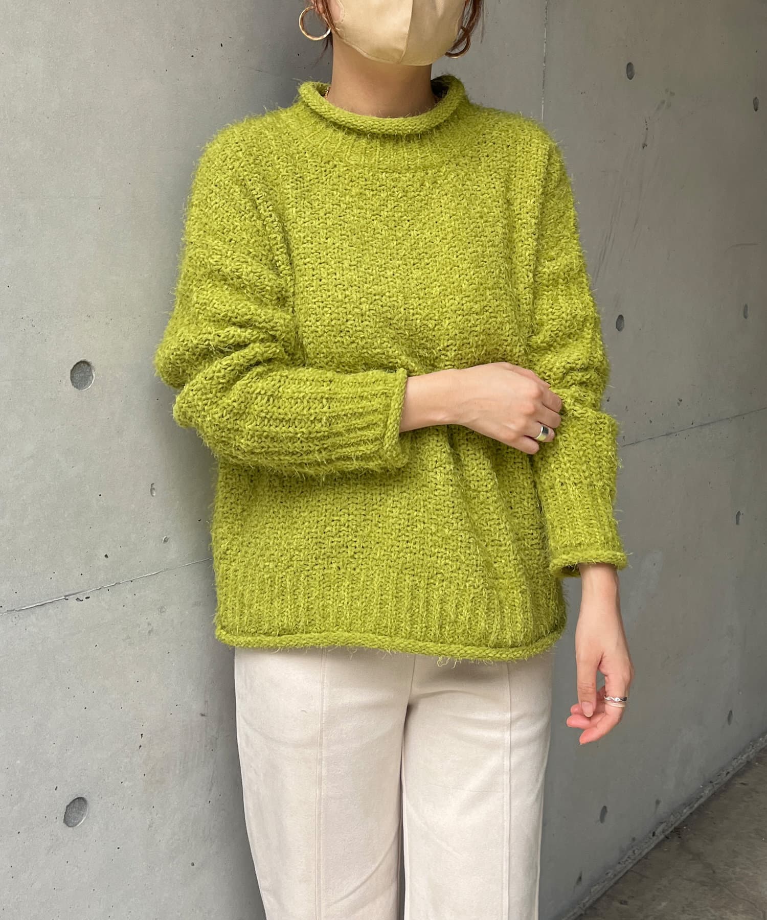 バスケットのような凹凸のある編立てがシンプルなコーディネートにも映える1枚です。