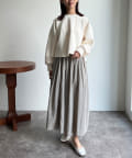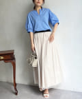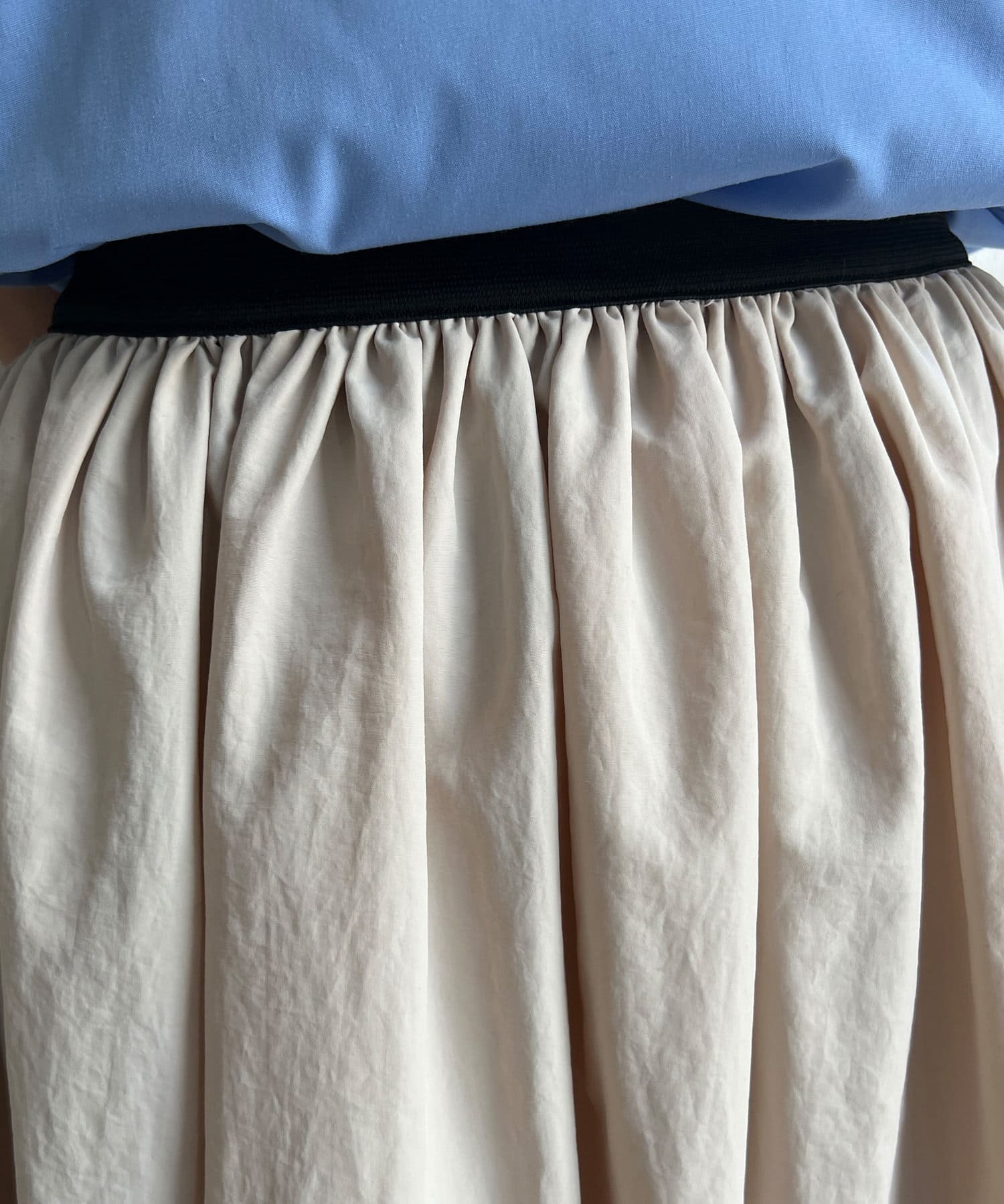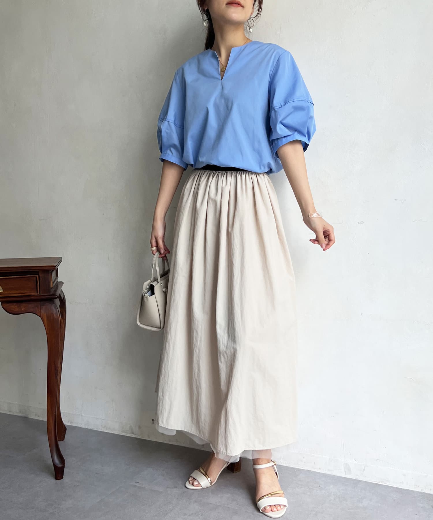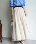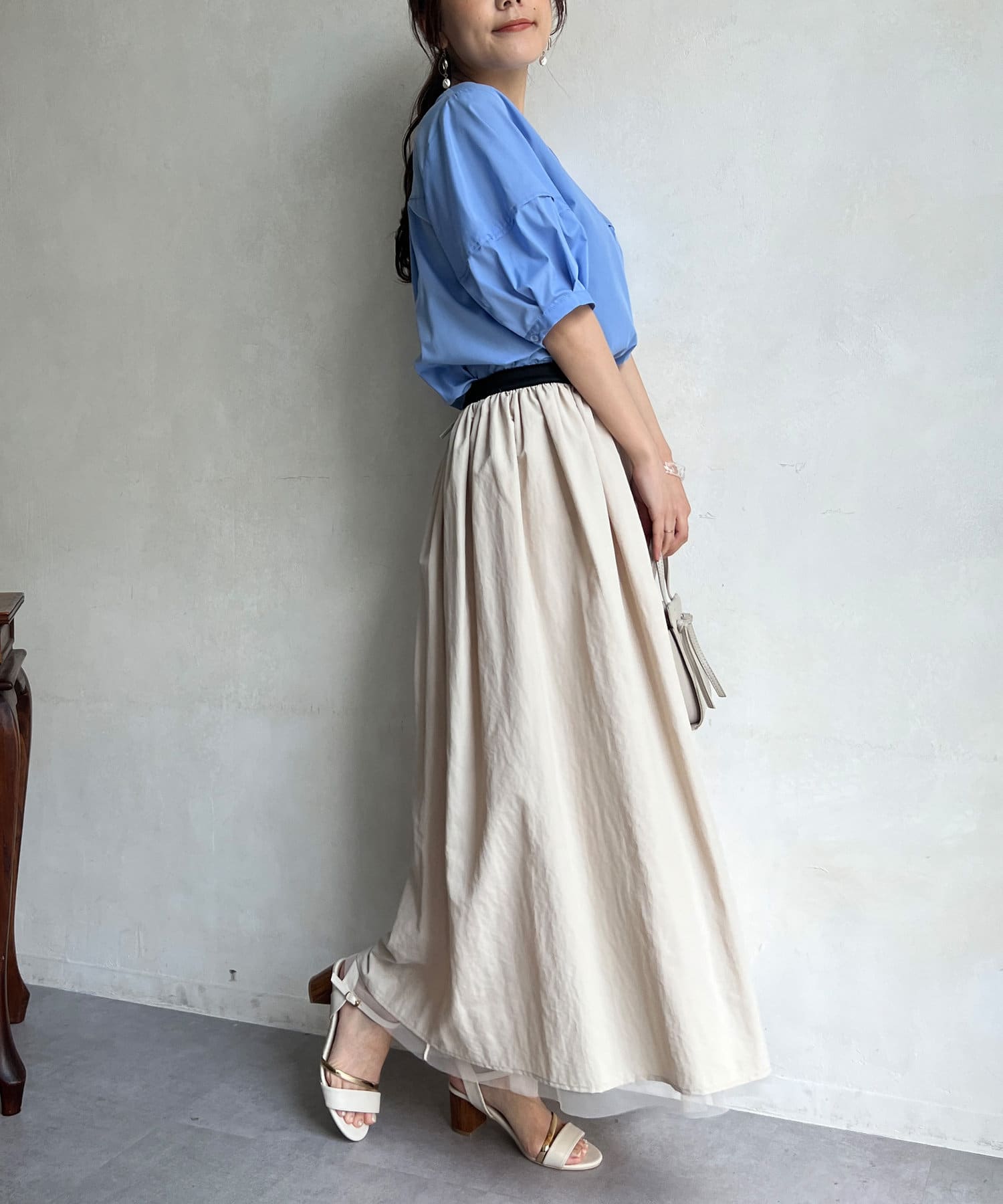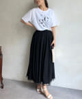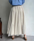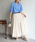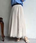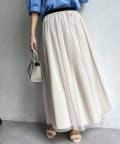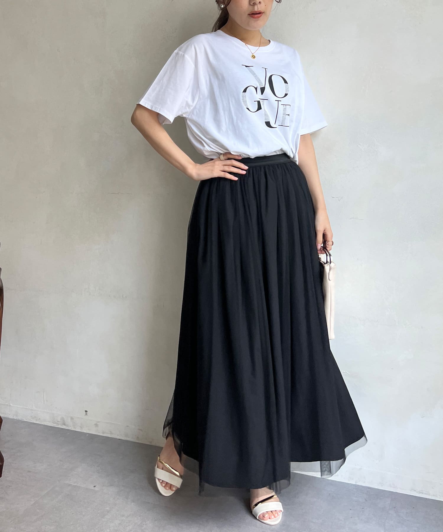 ・ふんわりと広がるチュールがエレガントなフレアロングスカート。