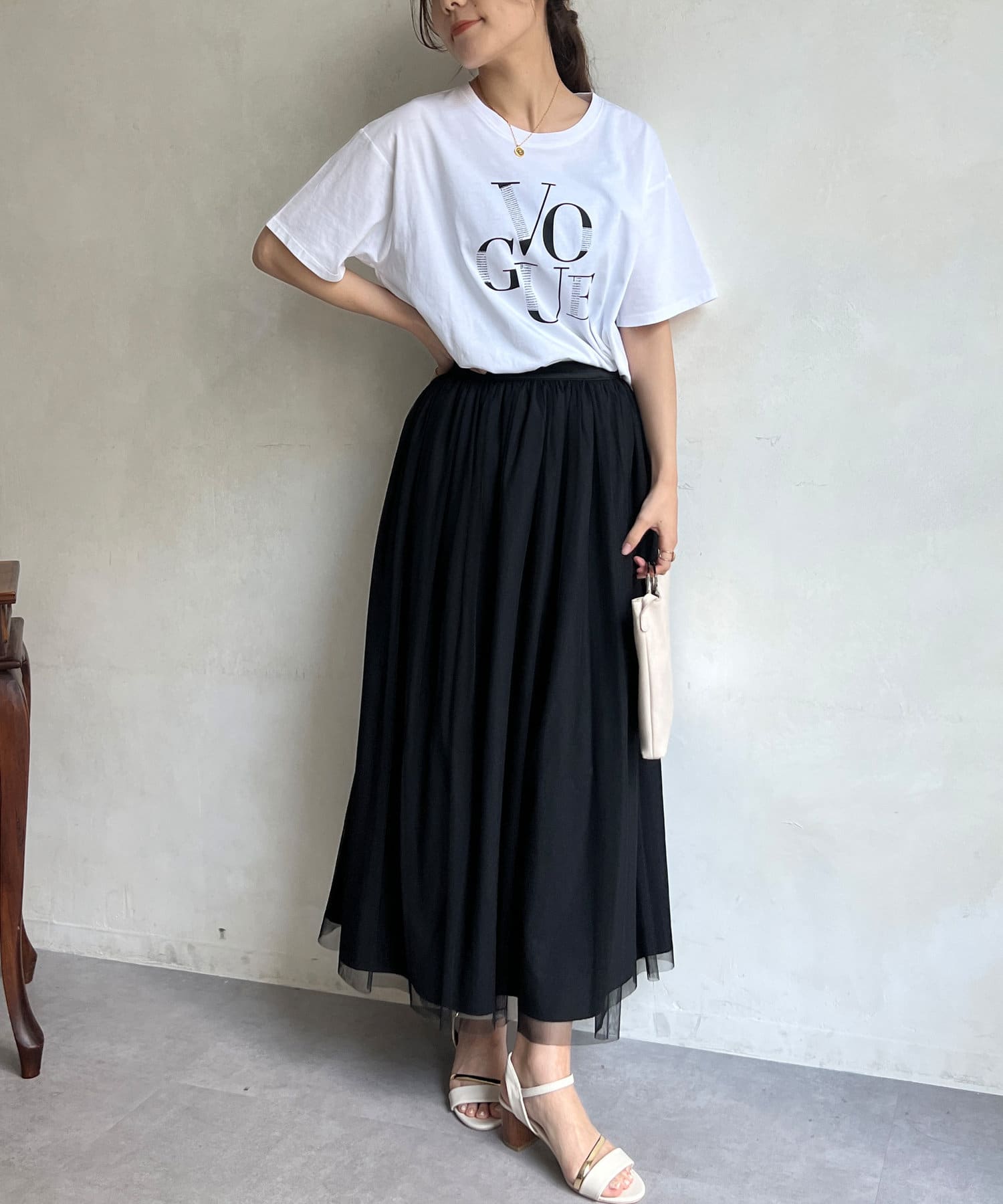 ふんわり大人エレガントなチュール素材がオトナフェミニンな印象に