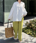 デニムやワイドパンツと合わせてナチュラルなスタイリングがオススメ。