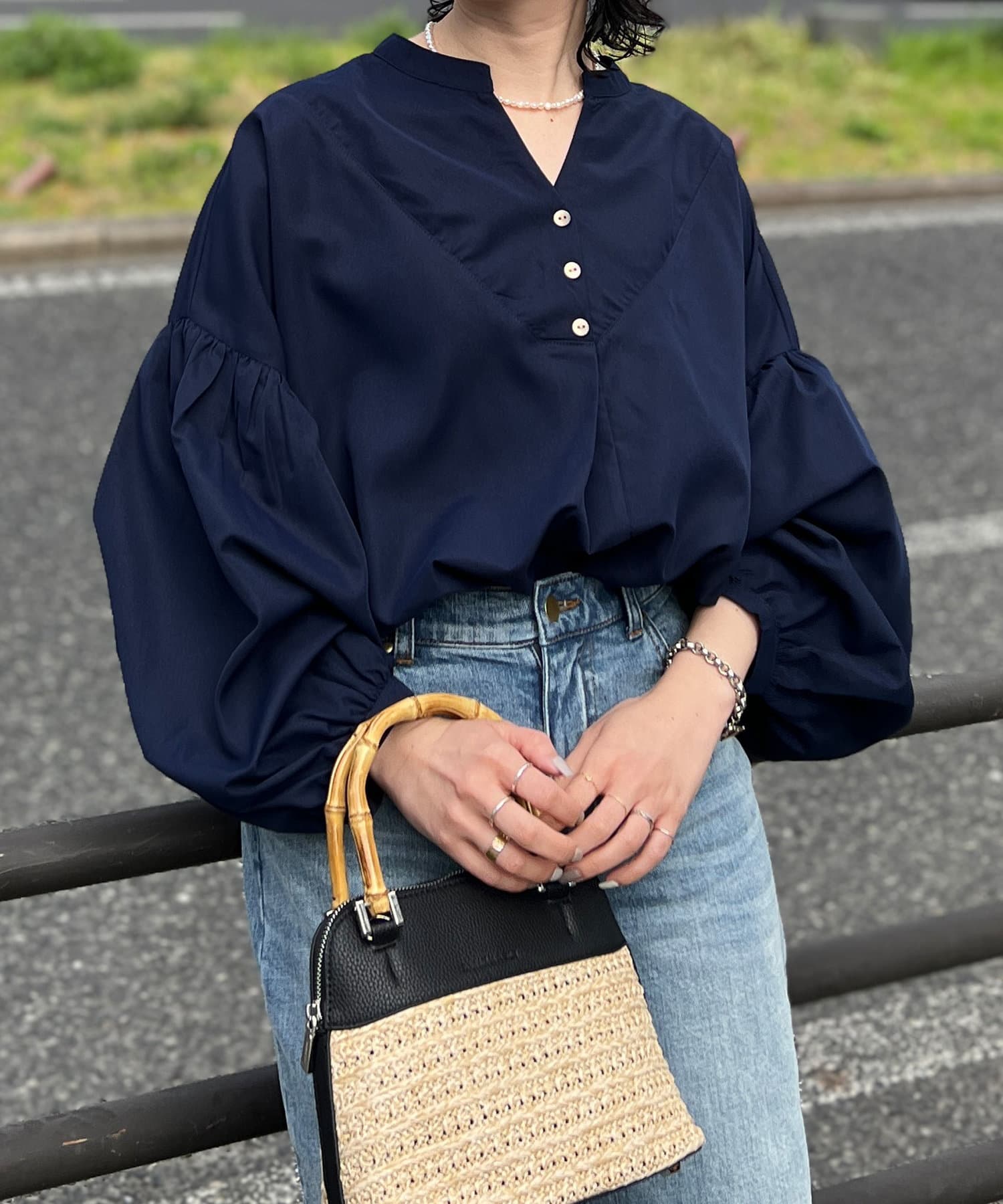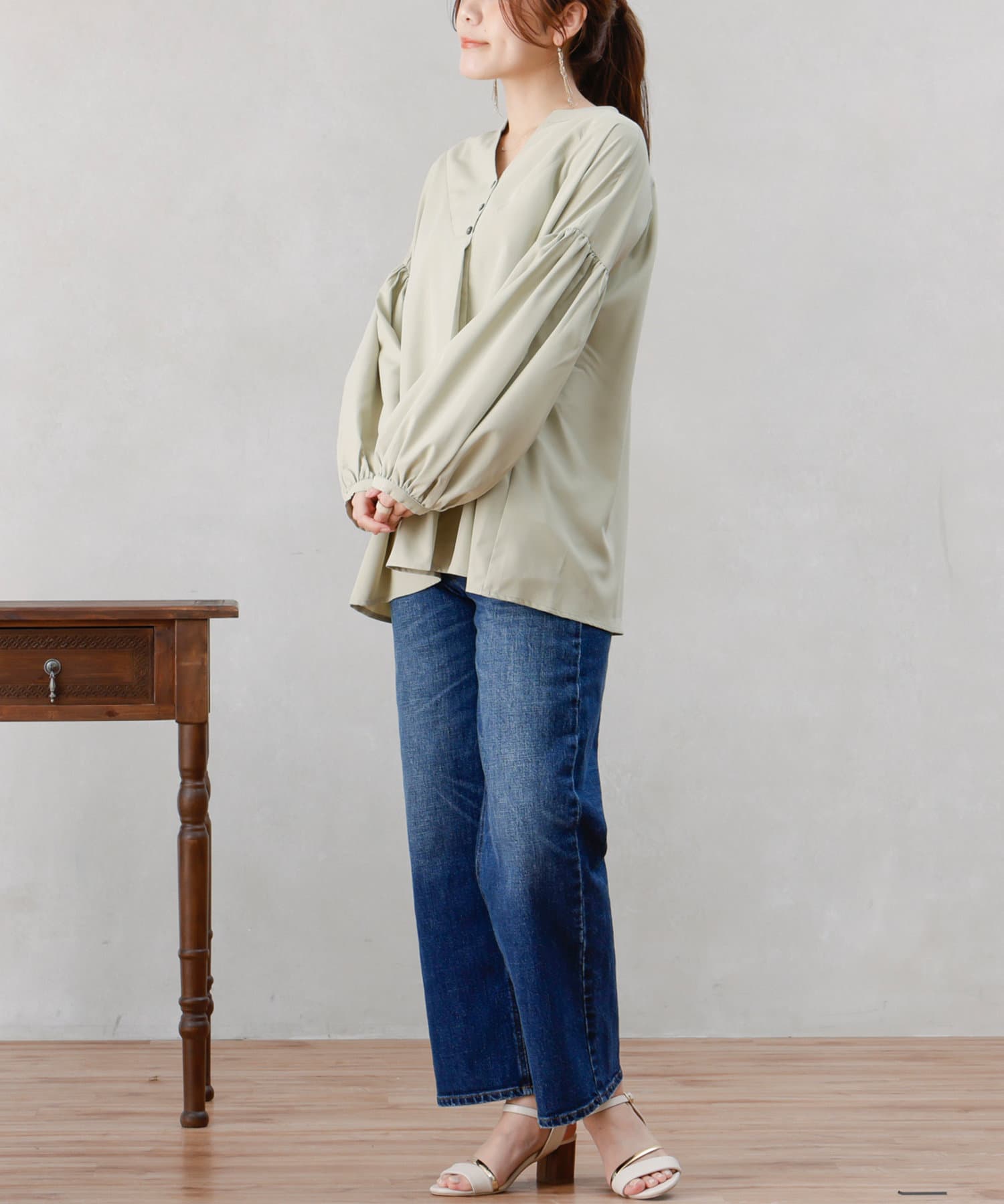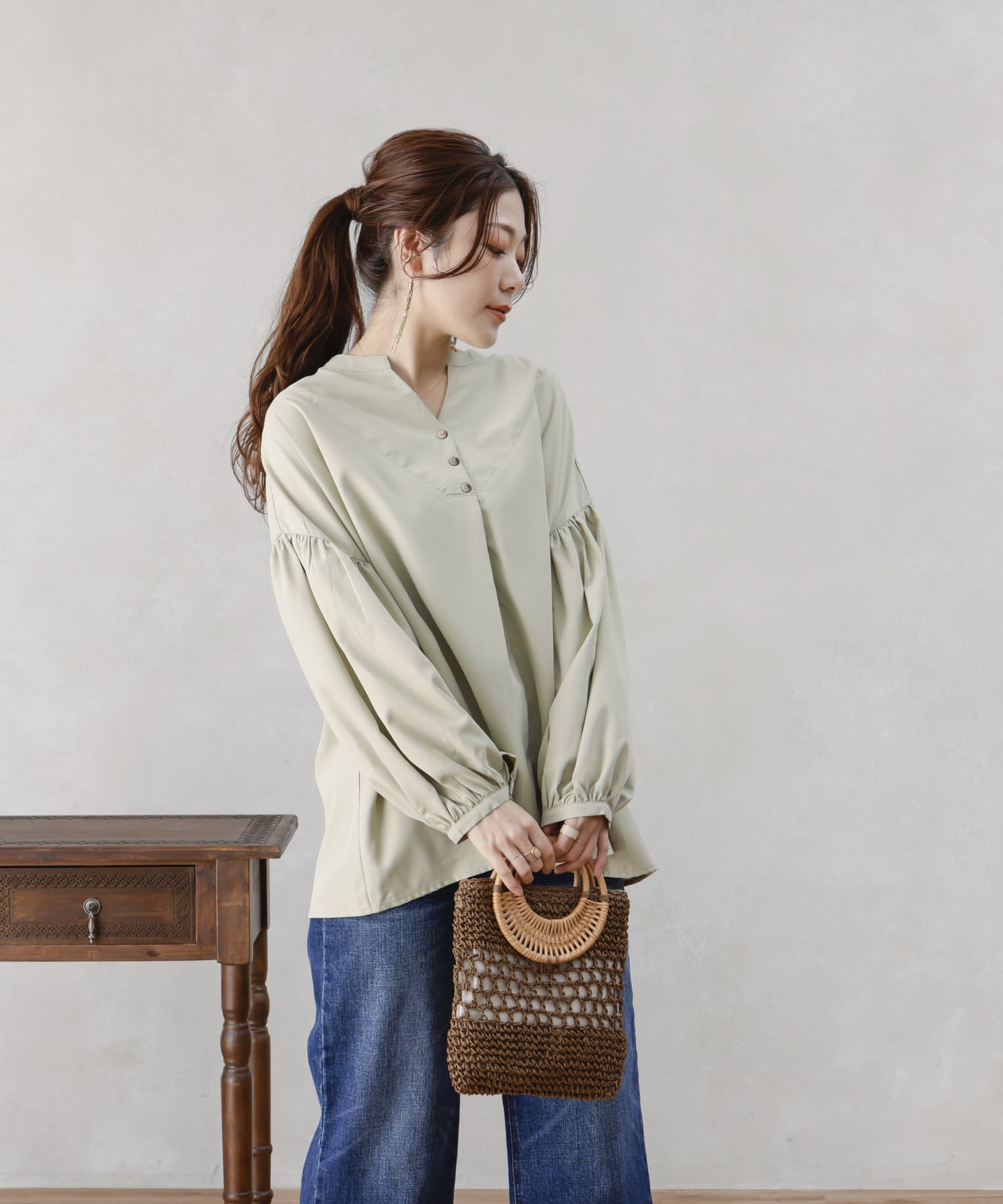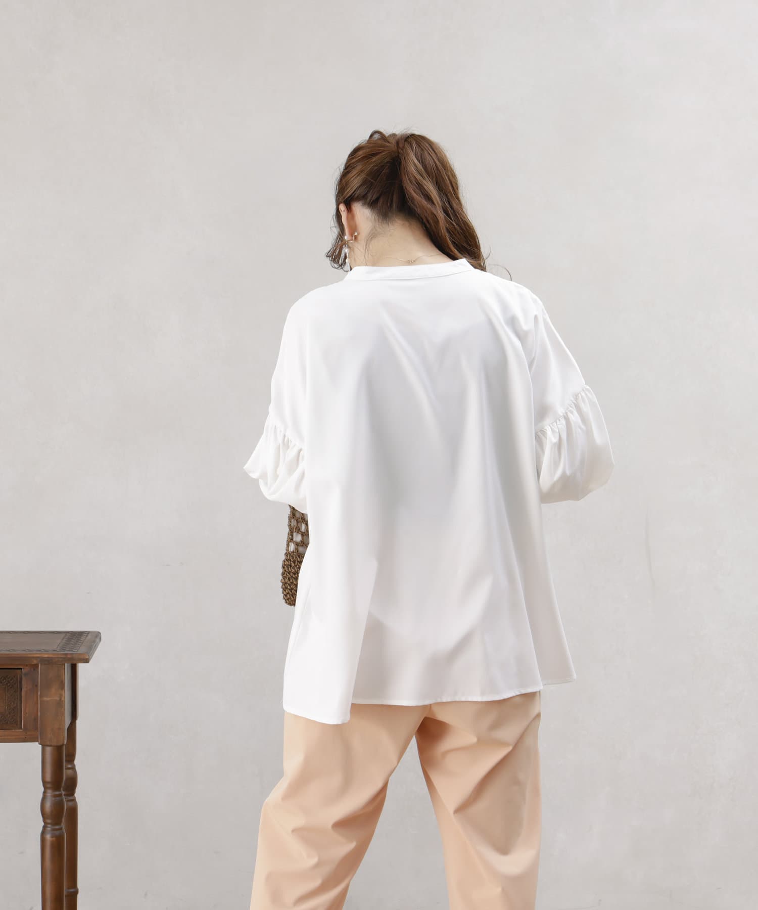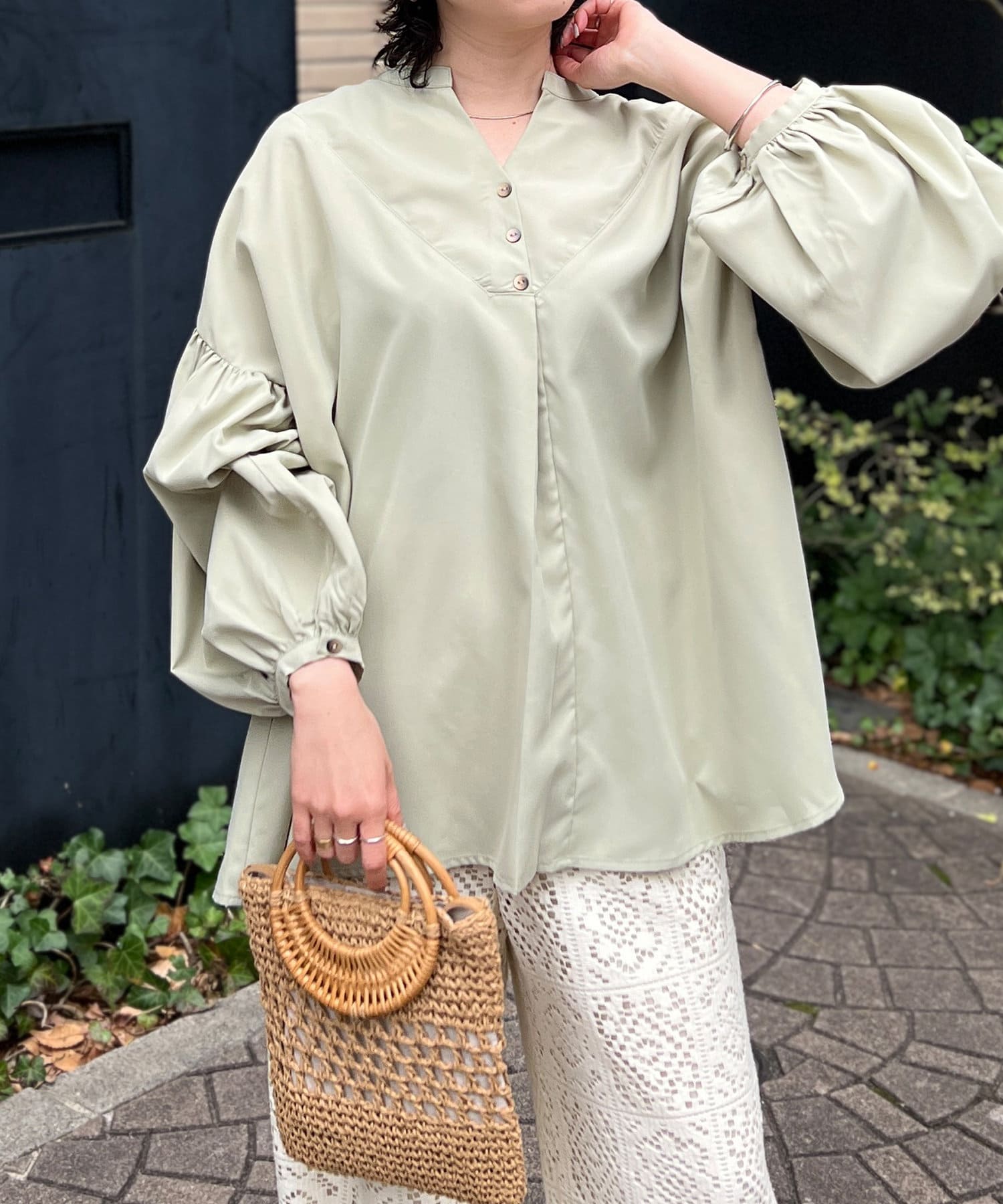 ふんわりと空気を纏った様な袖のボリューム感がポイントの軽やかブラウス。