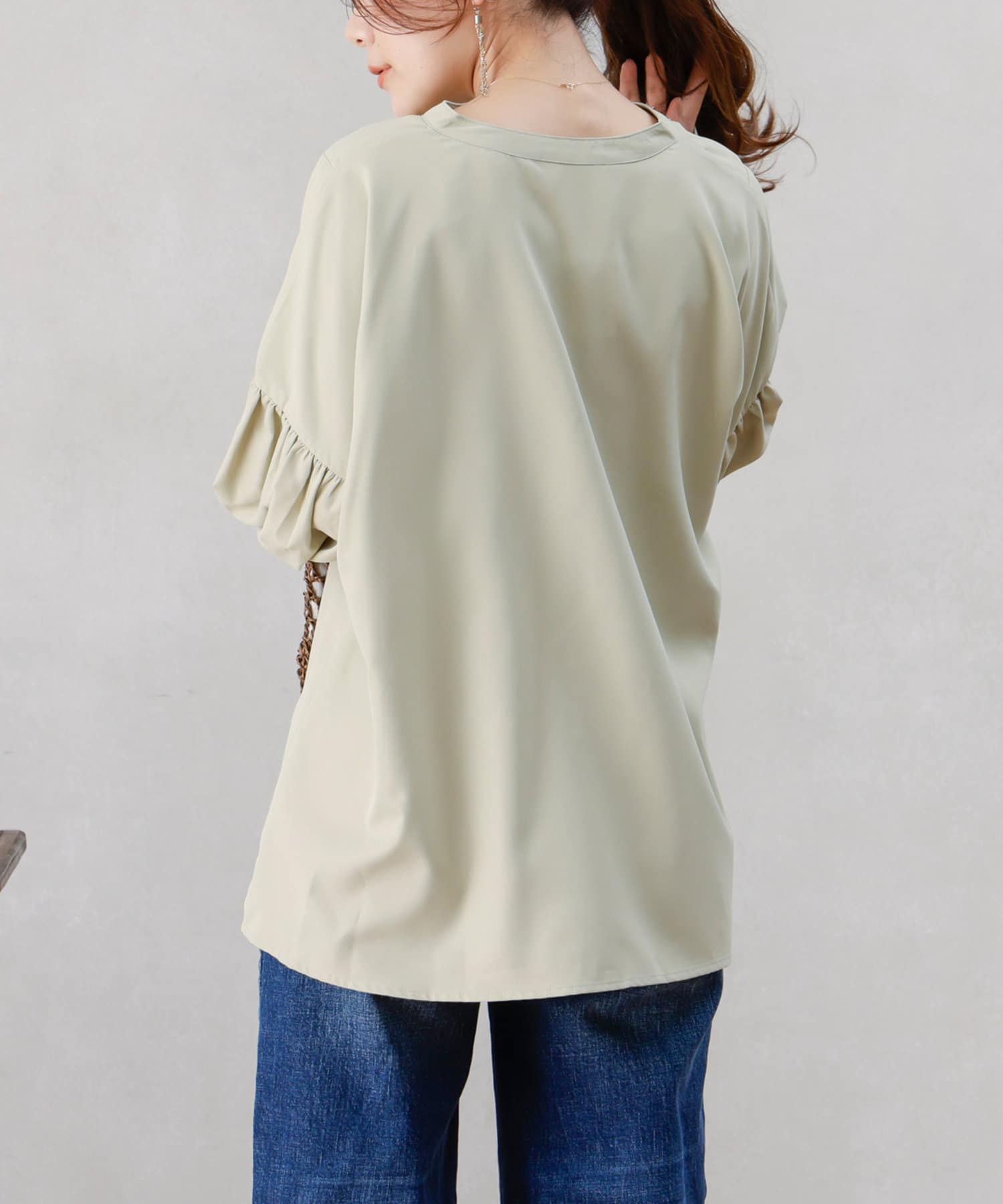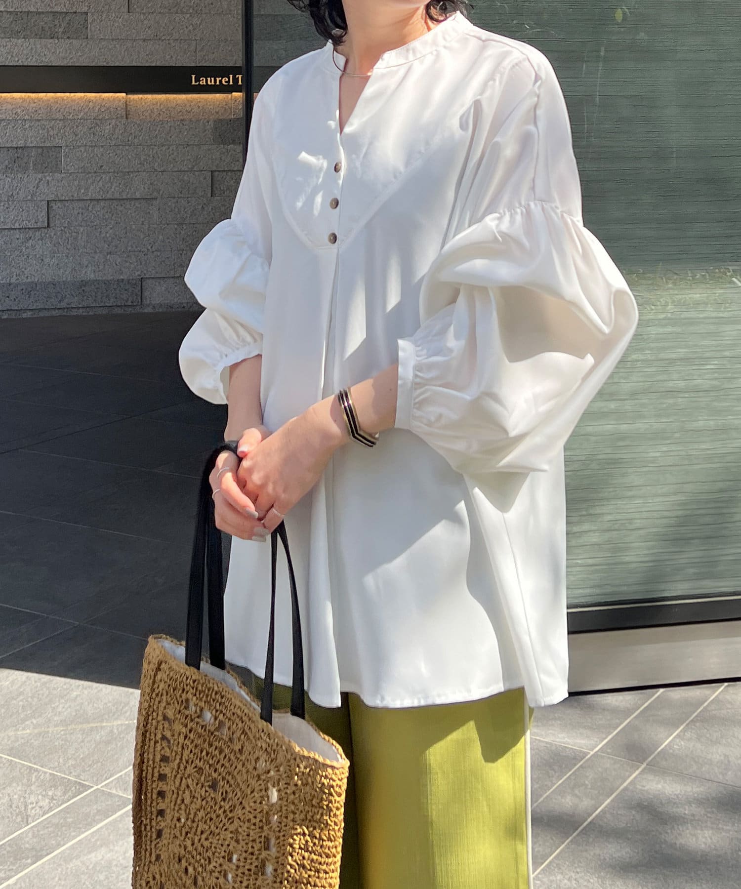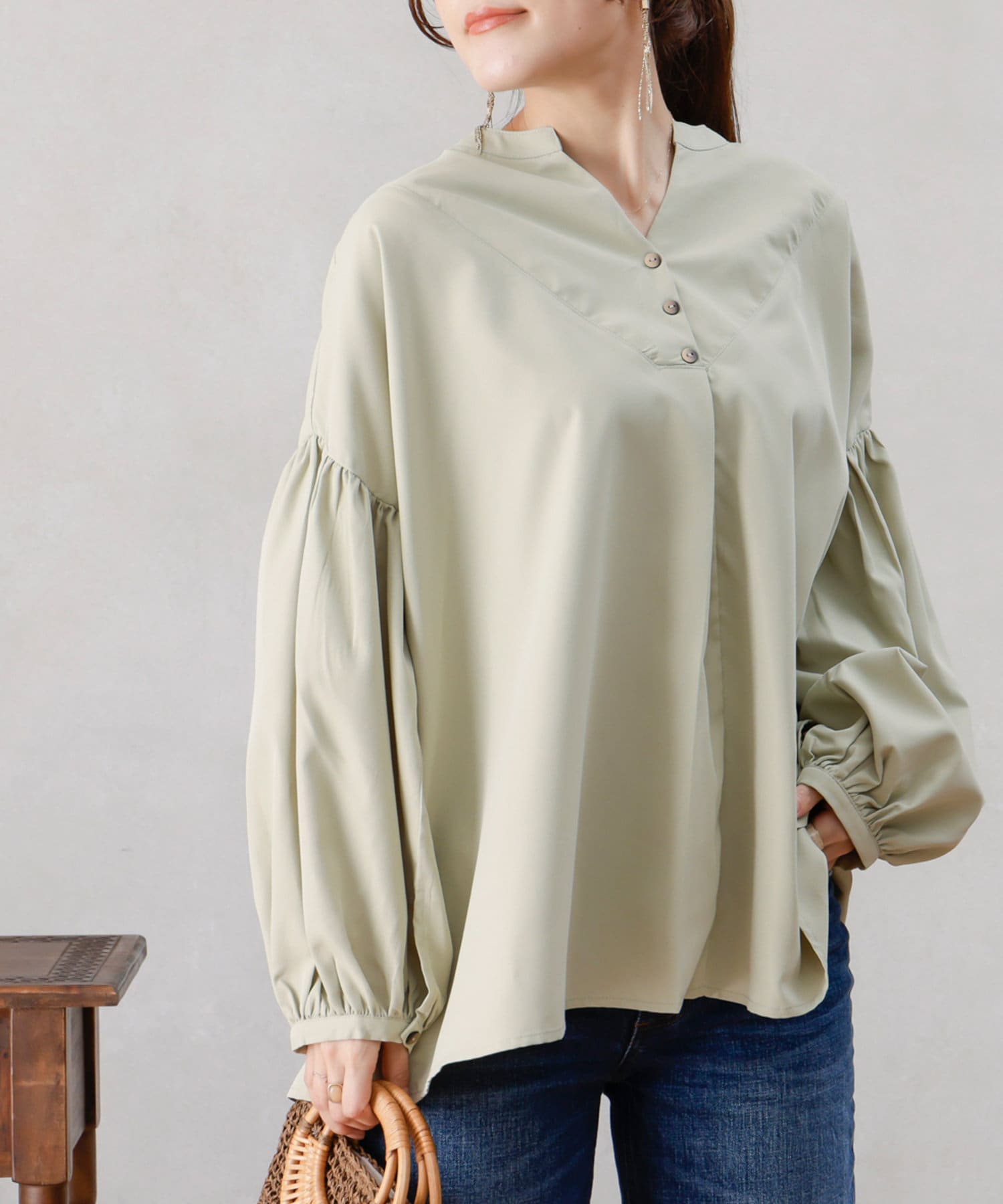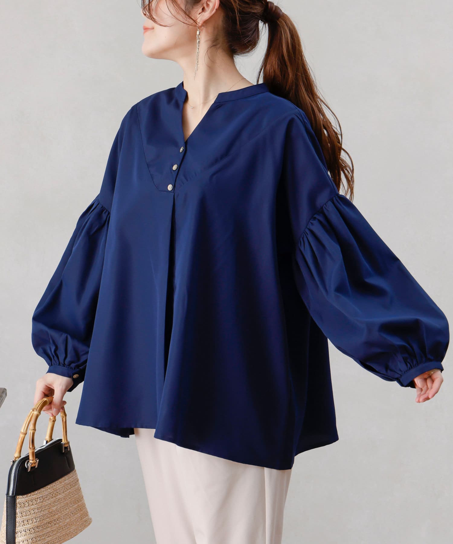 ふんわりと空気を纏った様な袖のボリューム感がポイントの軽やかブラウス。