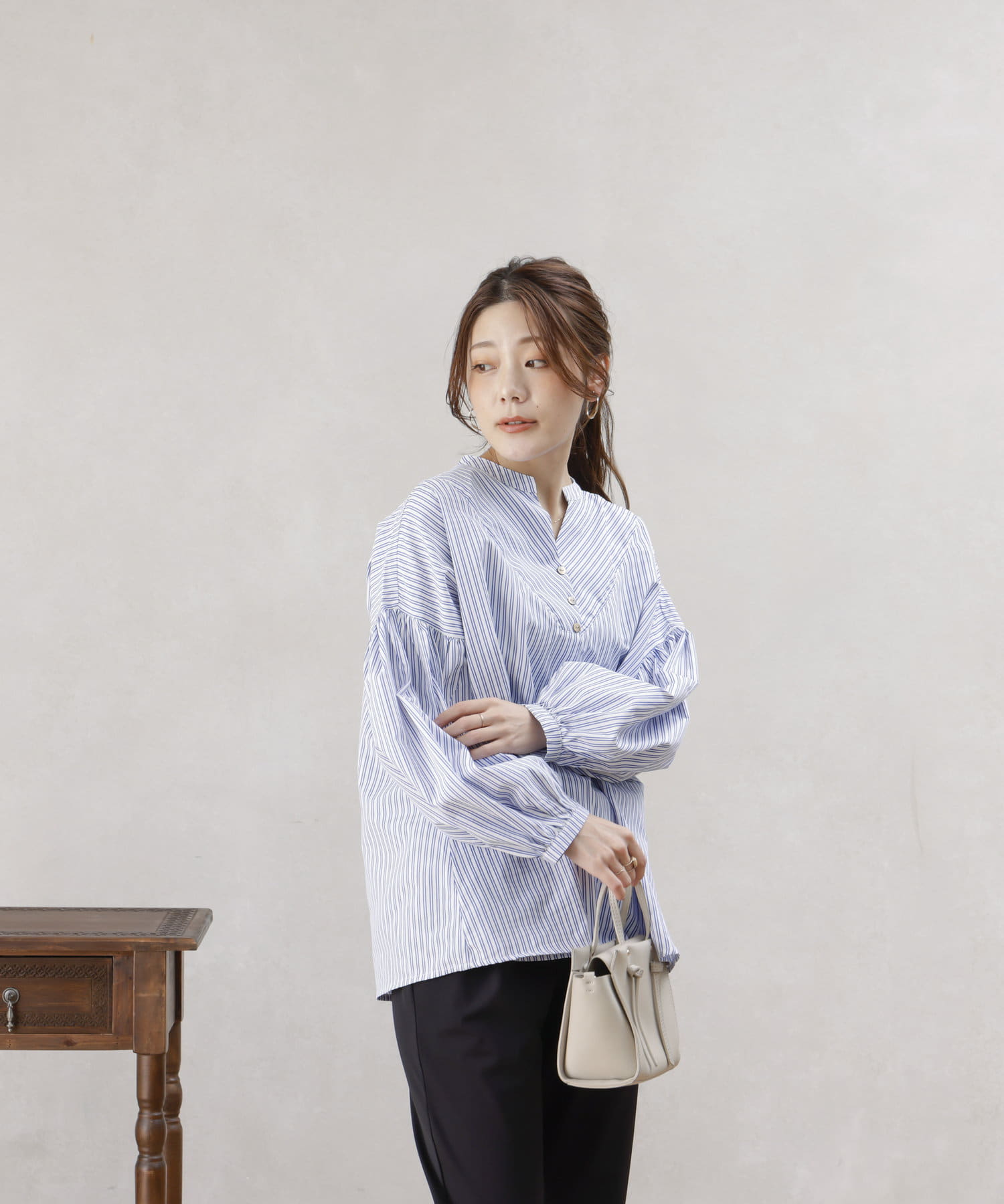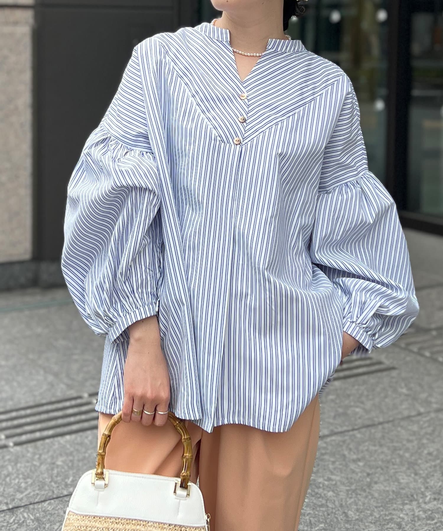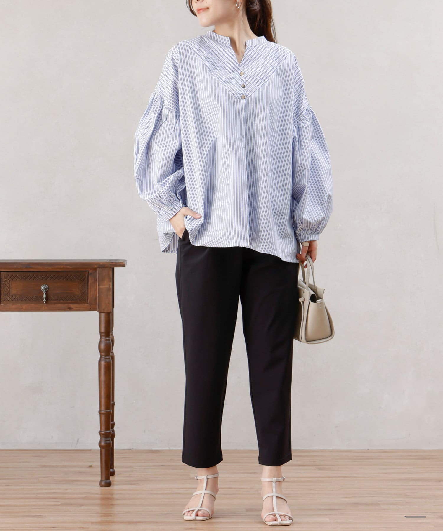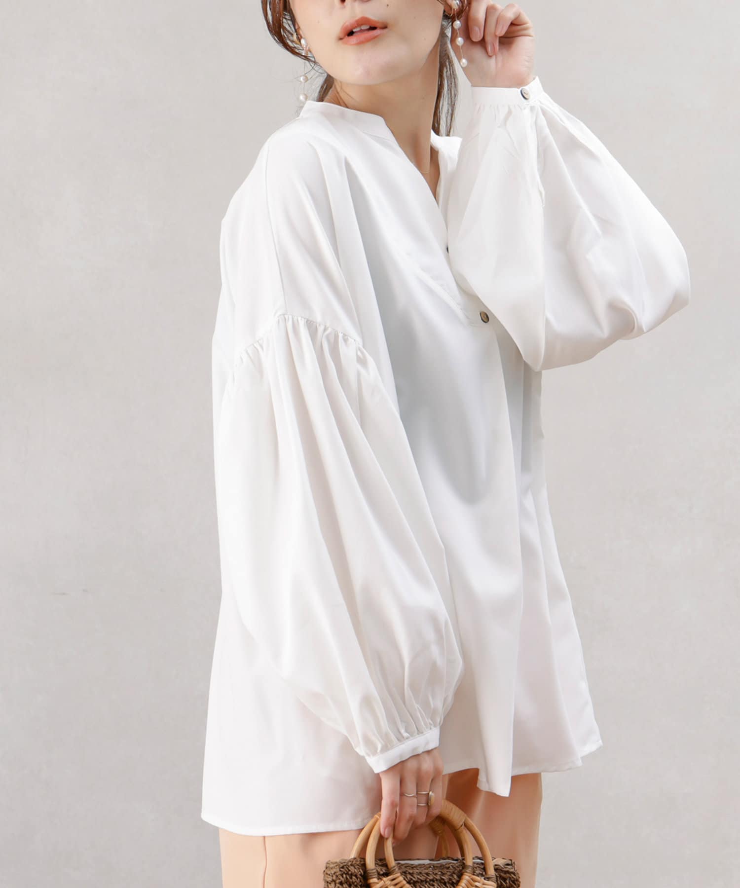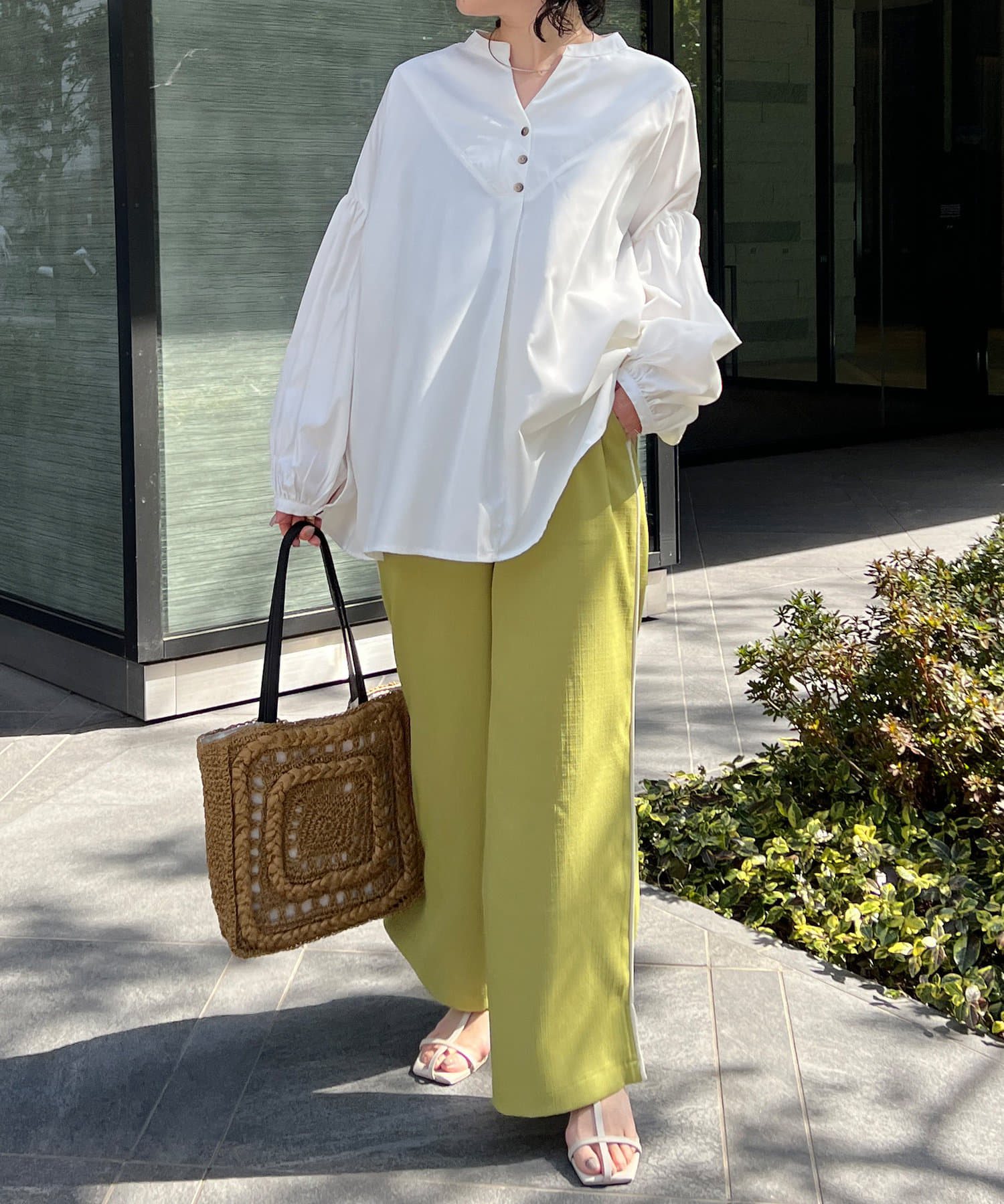 ふんわりと空気を纏った様な袖のボリューム感がポイントの軽やかブラウス。