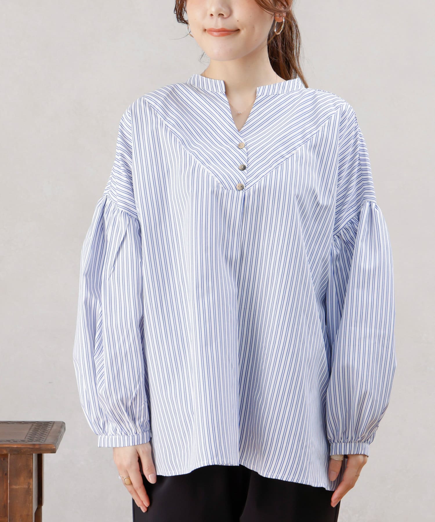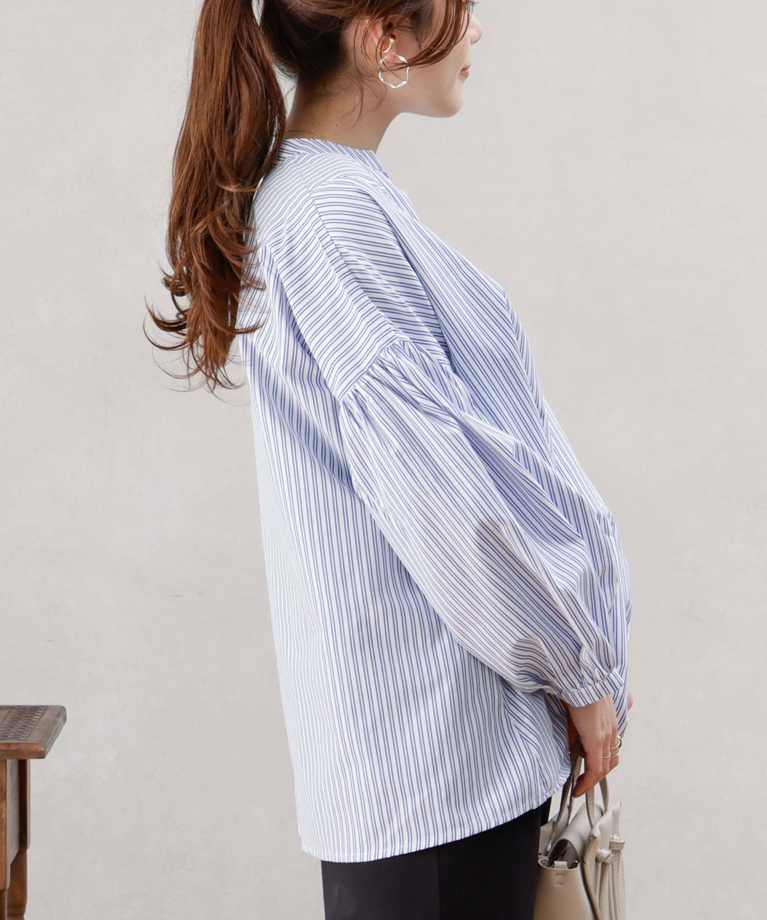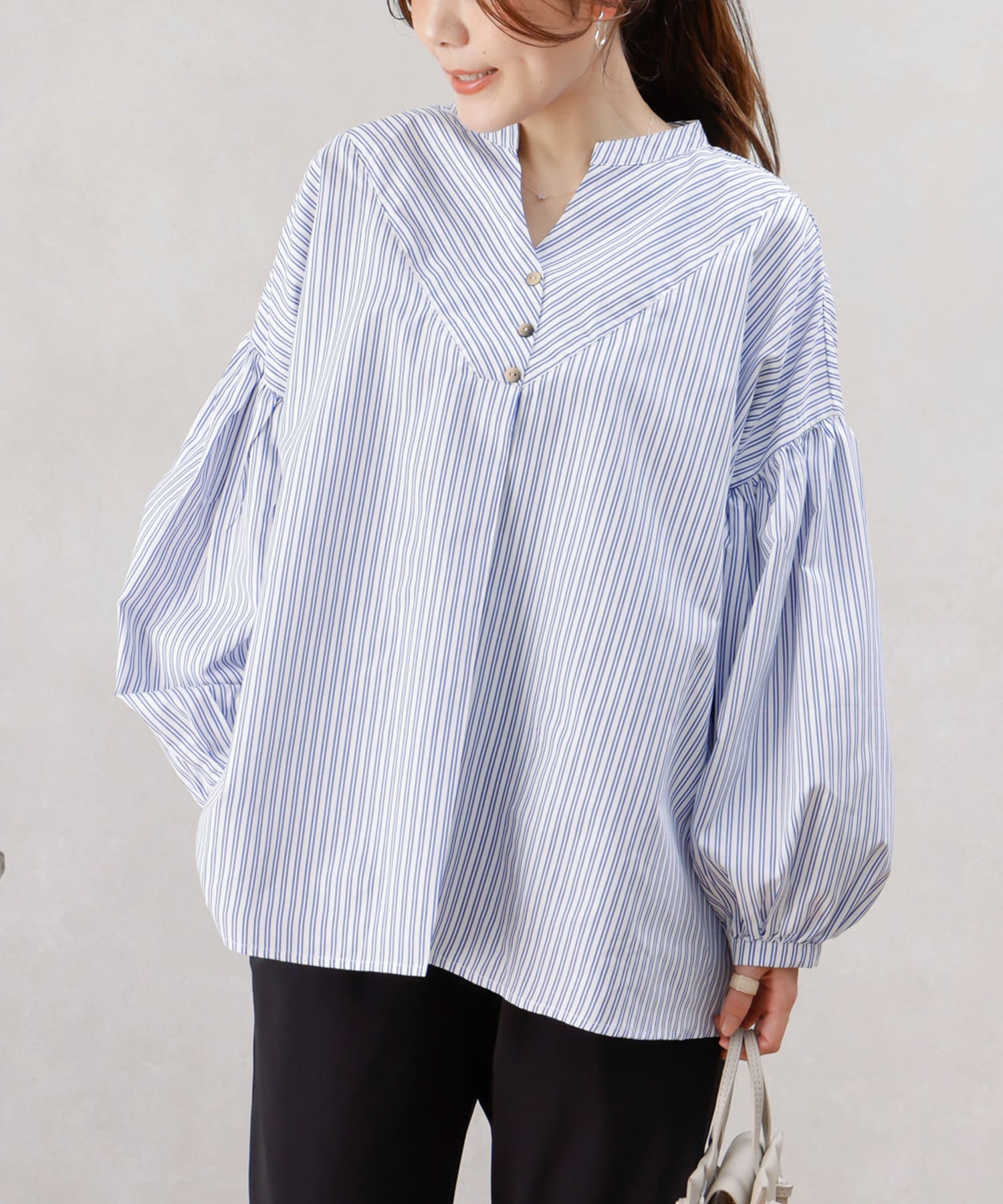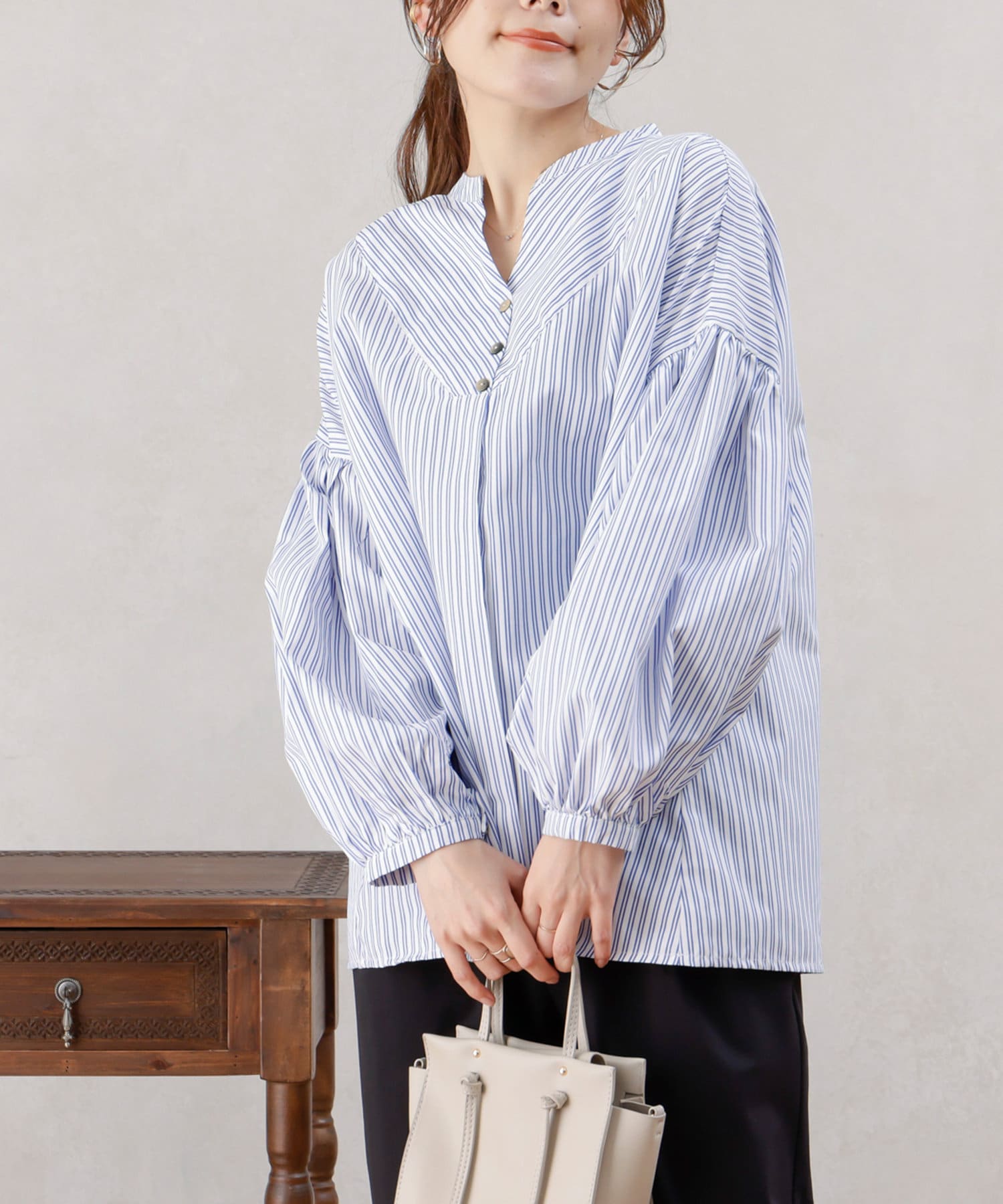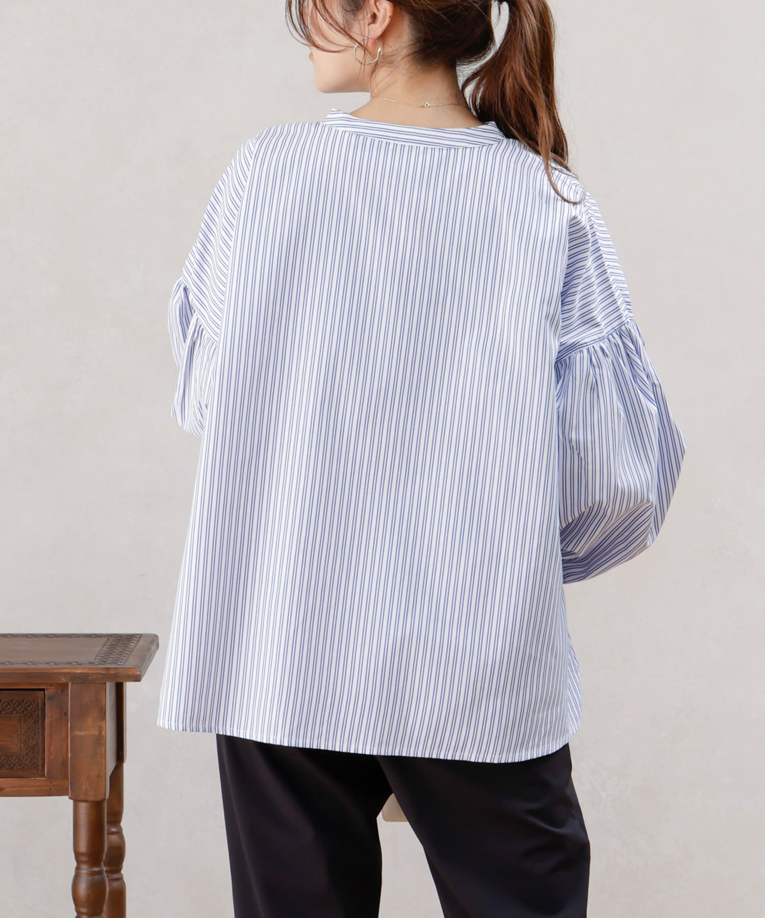 ふんわりと空気を纏った様な袖のボリューム感がポイントの軽やかブラウス。