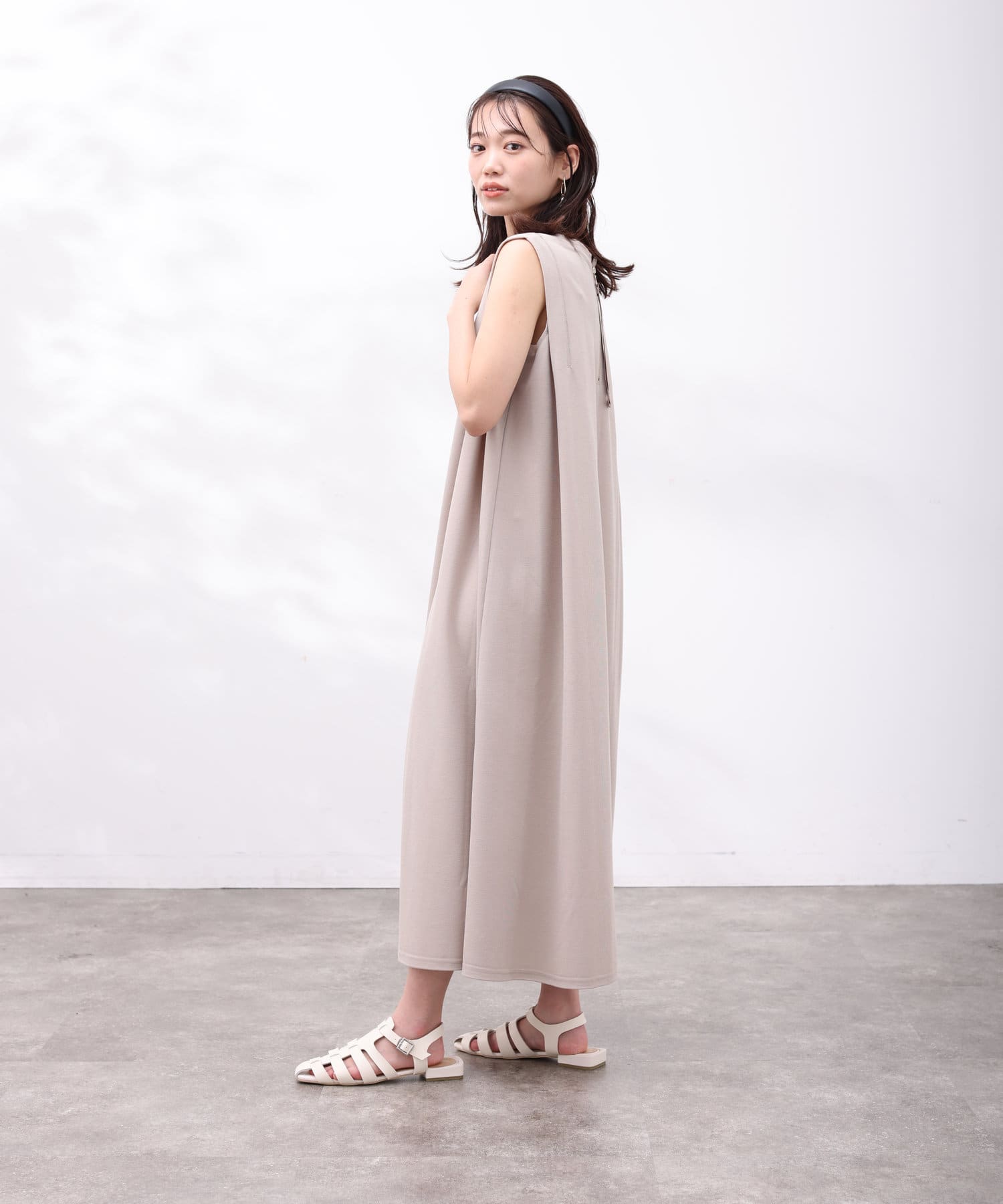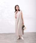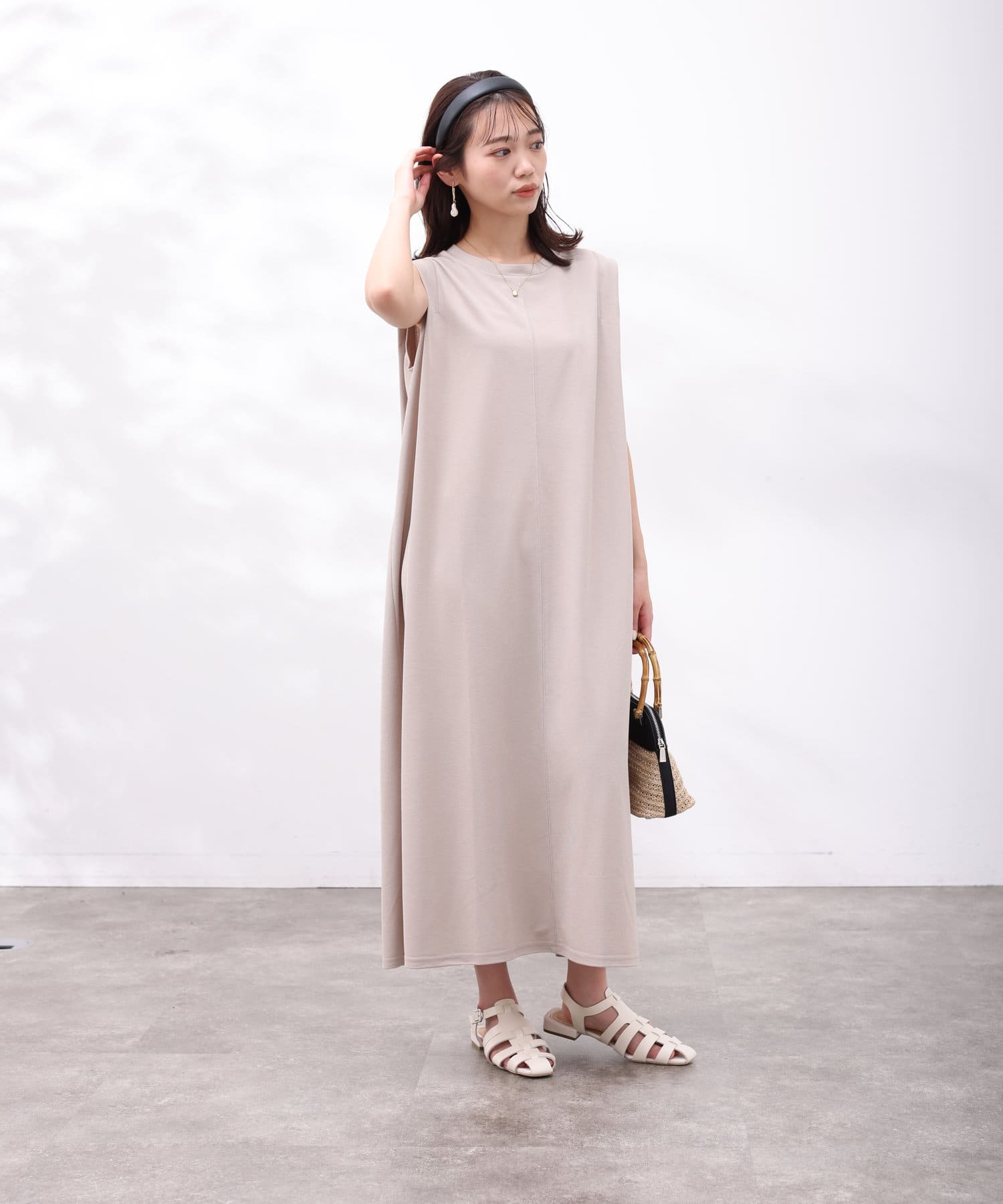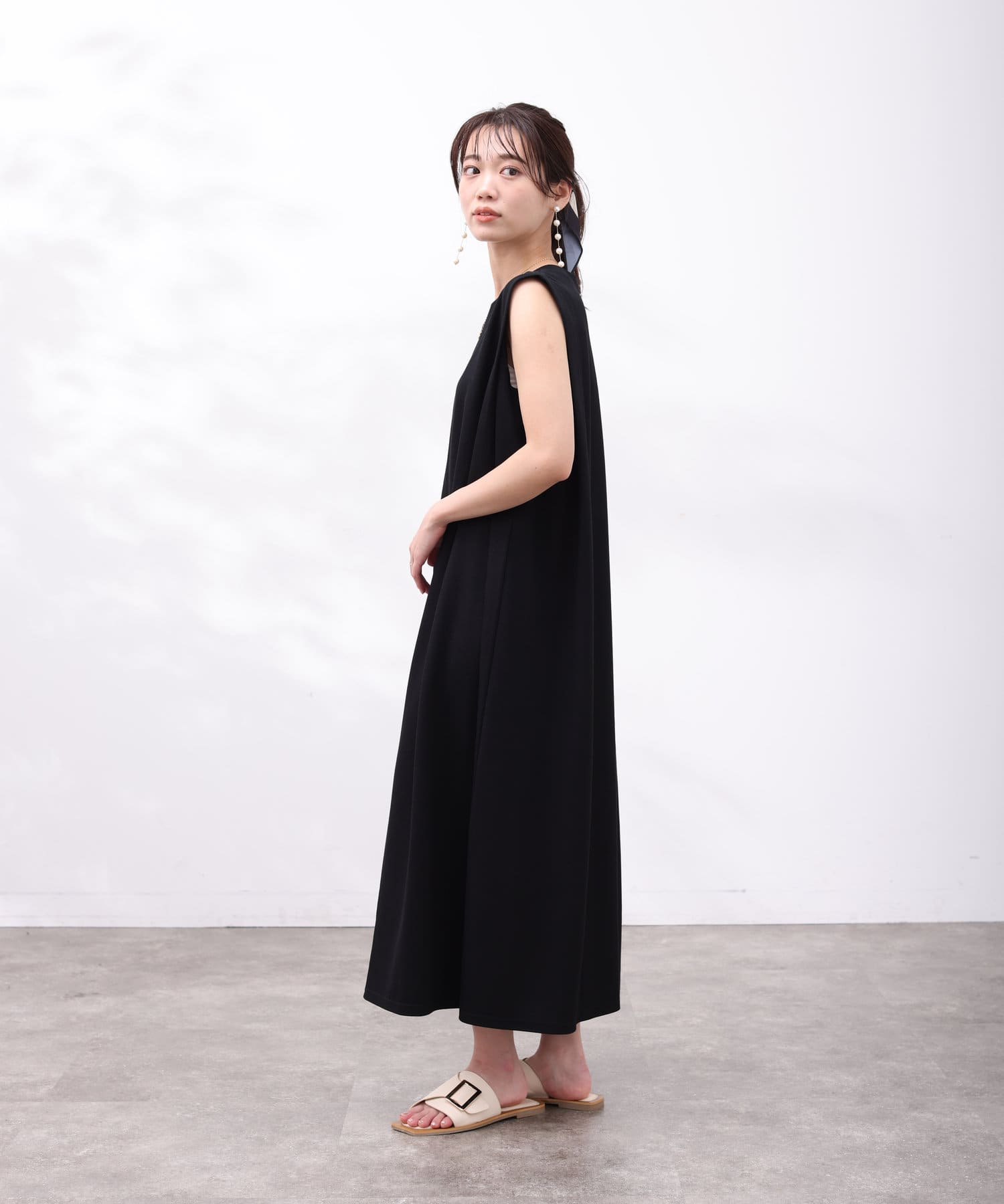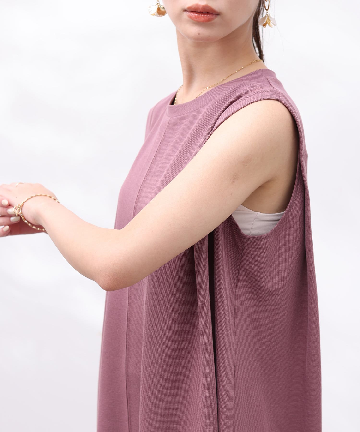 アーム部分はタックの仕様になっていることで、ノースリーブでも程よく肩と腕周りをカバーできる様に。