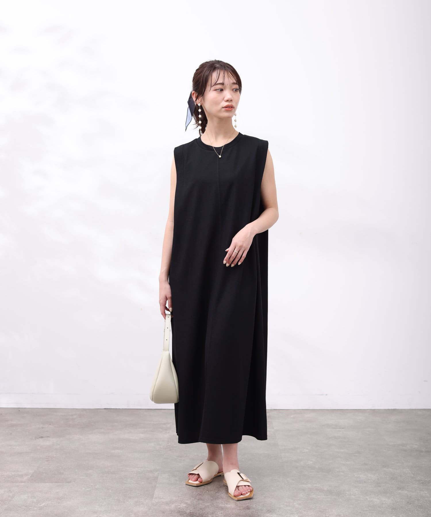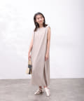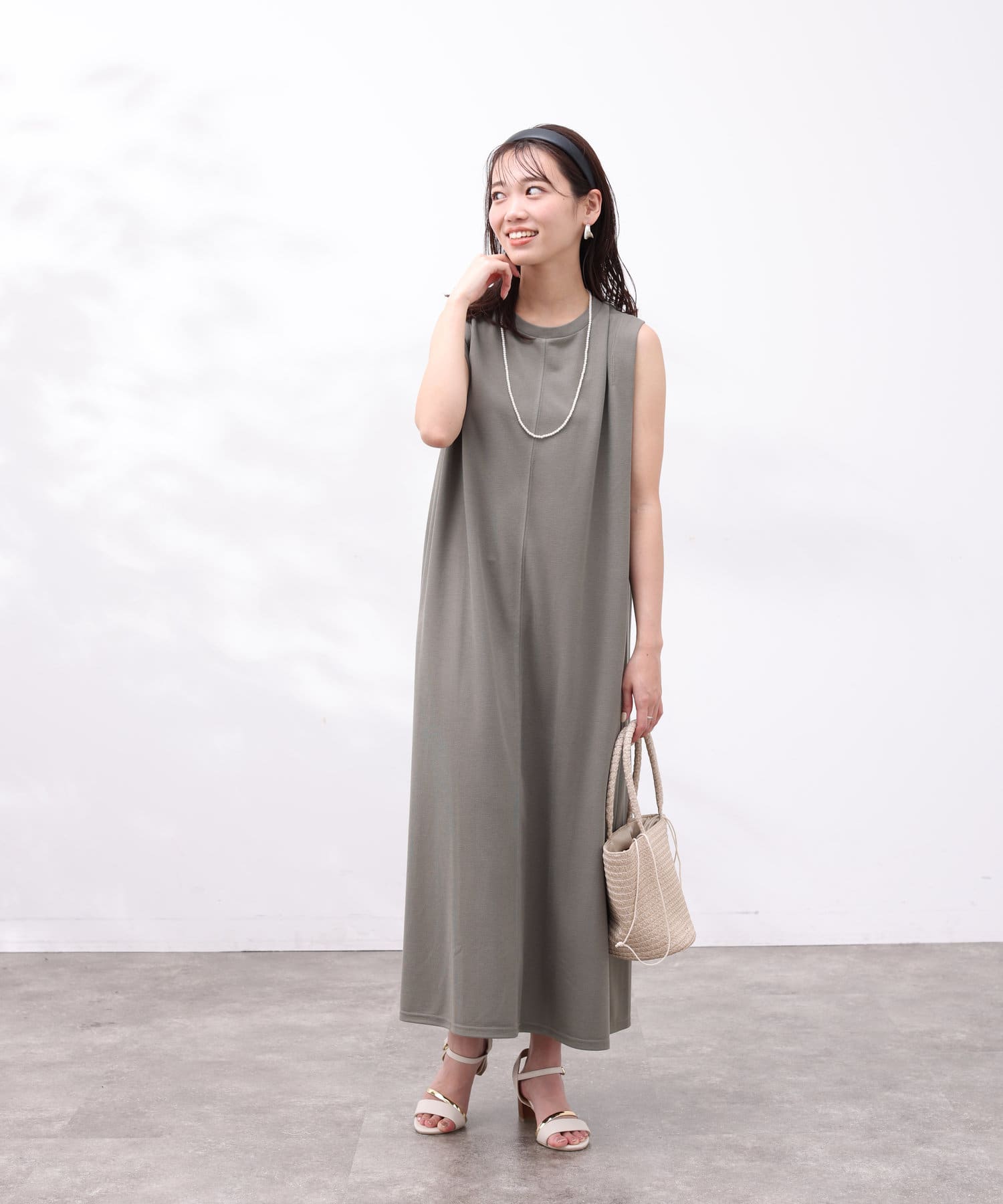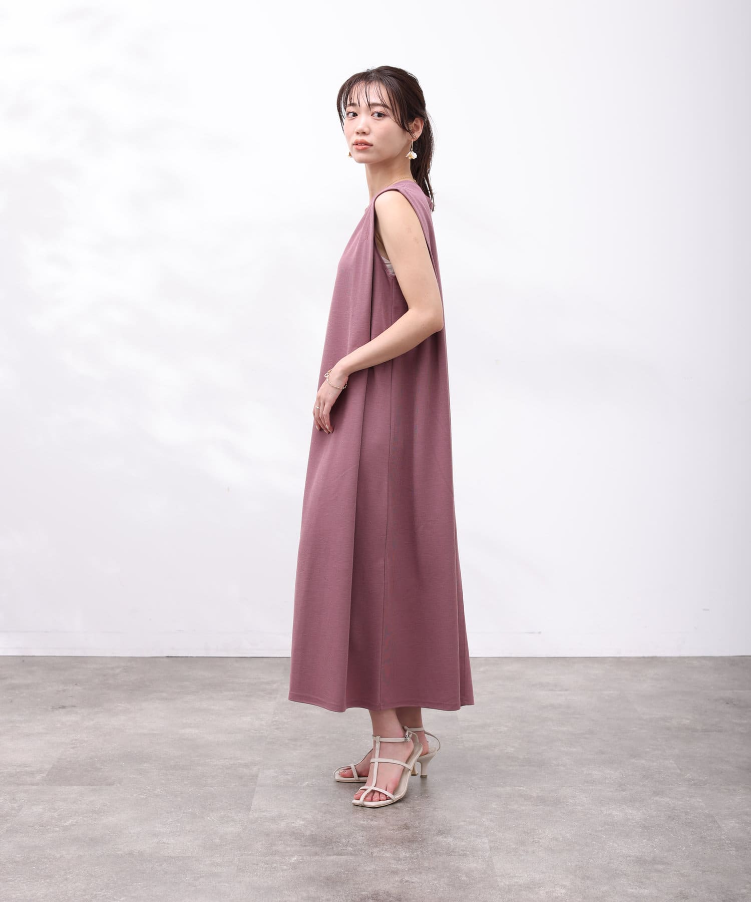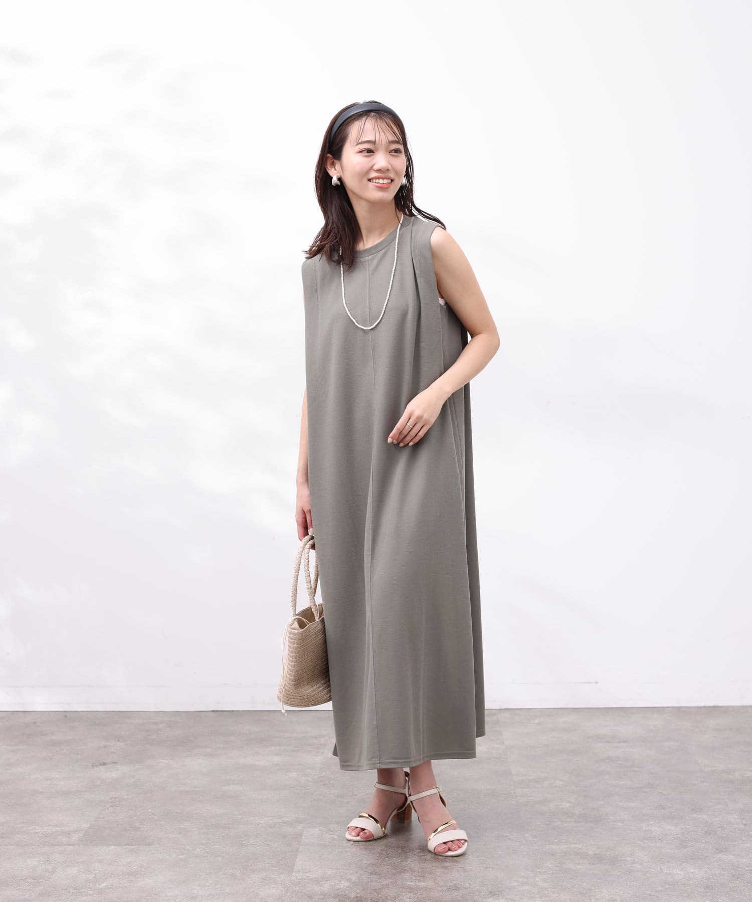 アーム部分はタックの仕様になっていることで、ノースリーブでも程よく肩と腕周りをカバーできる様に。