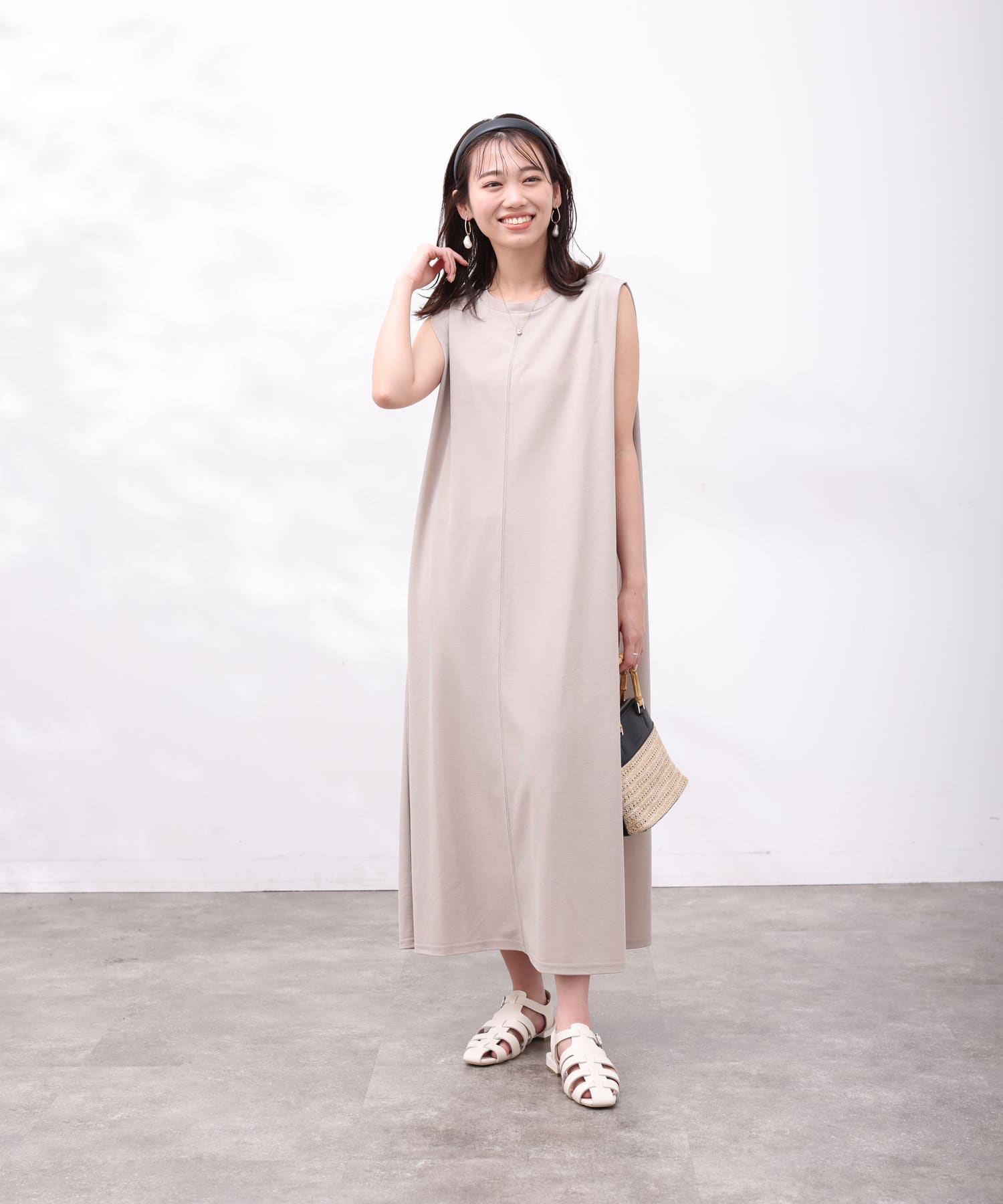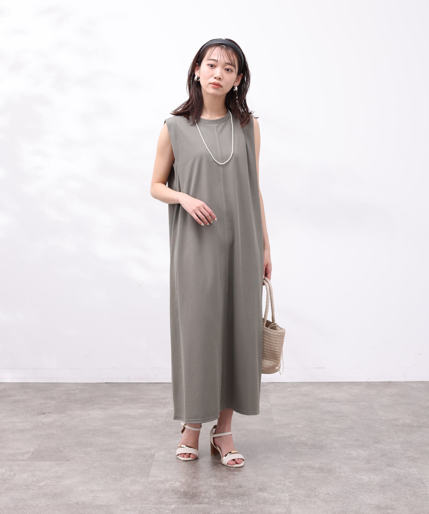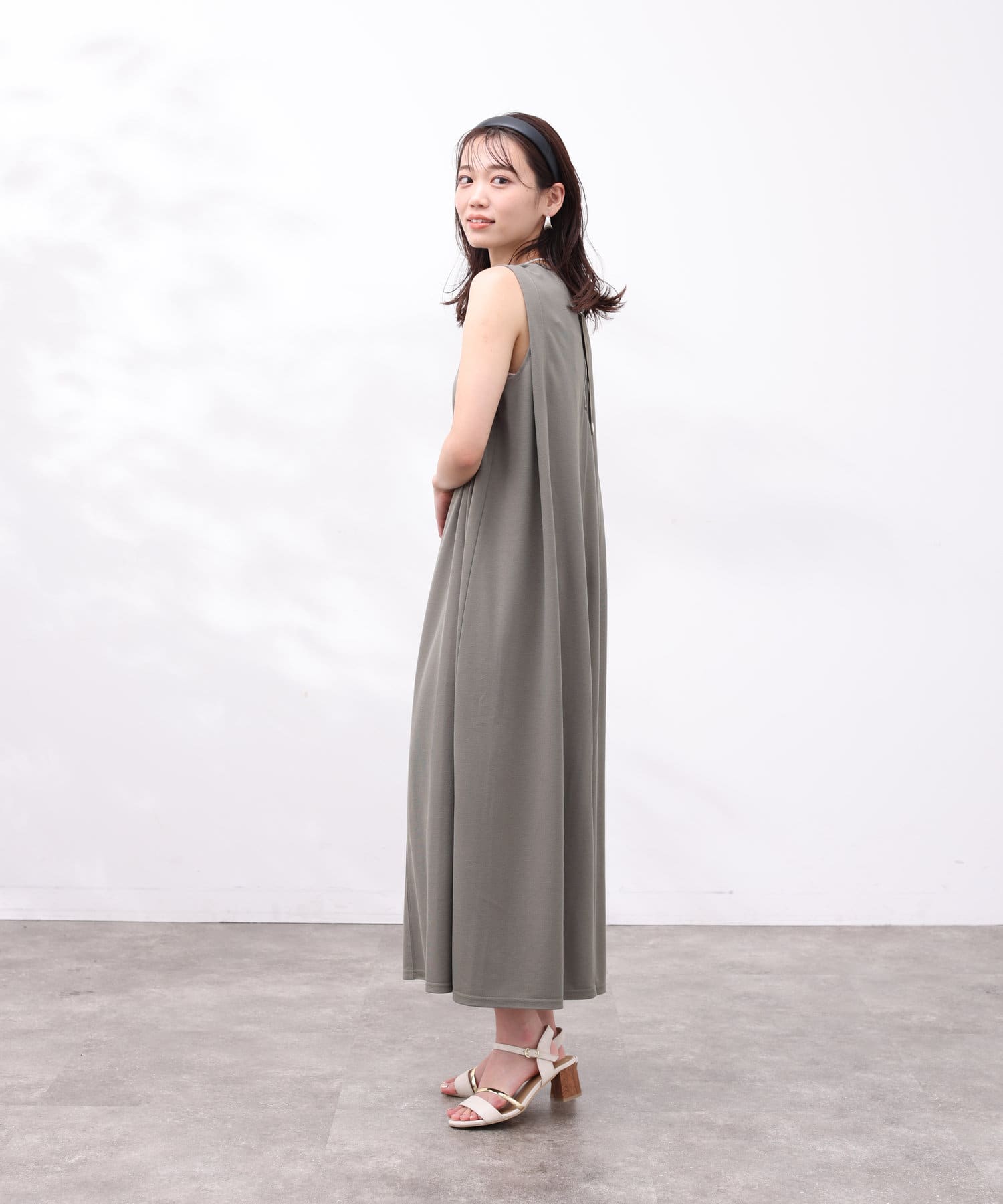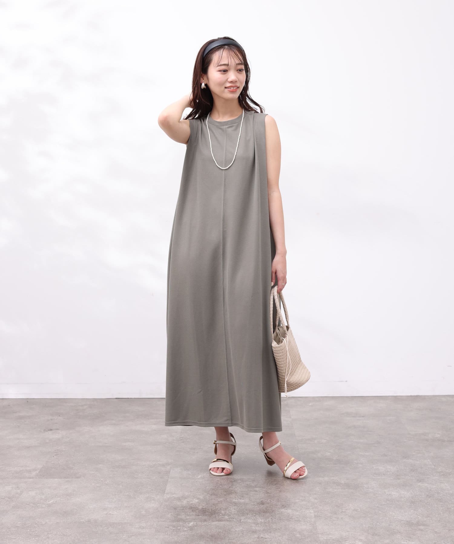 アーム部分はタックの仕様になっていることで、ノースリーブでも程よく肩と腕周りをカバーできる様に。