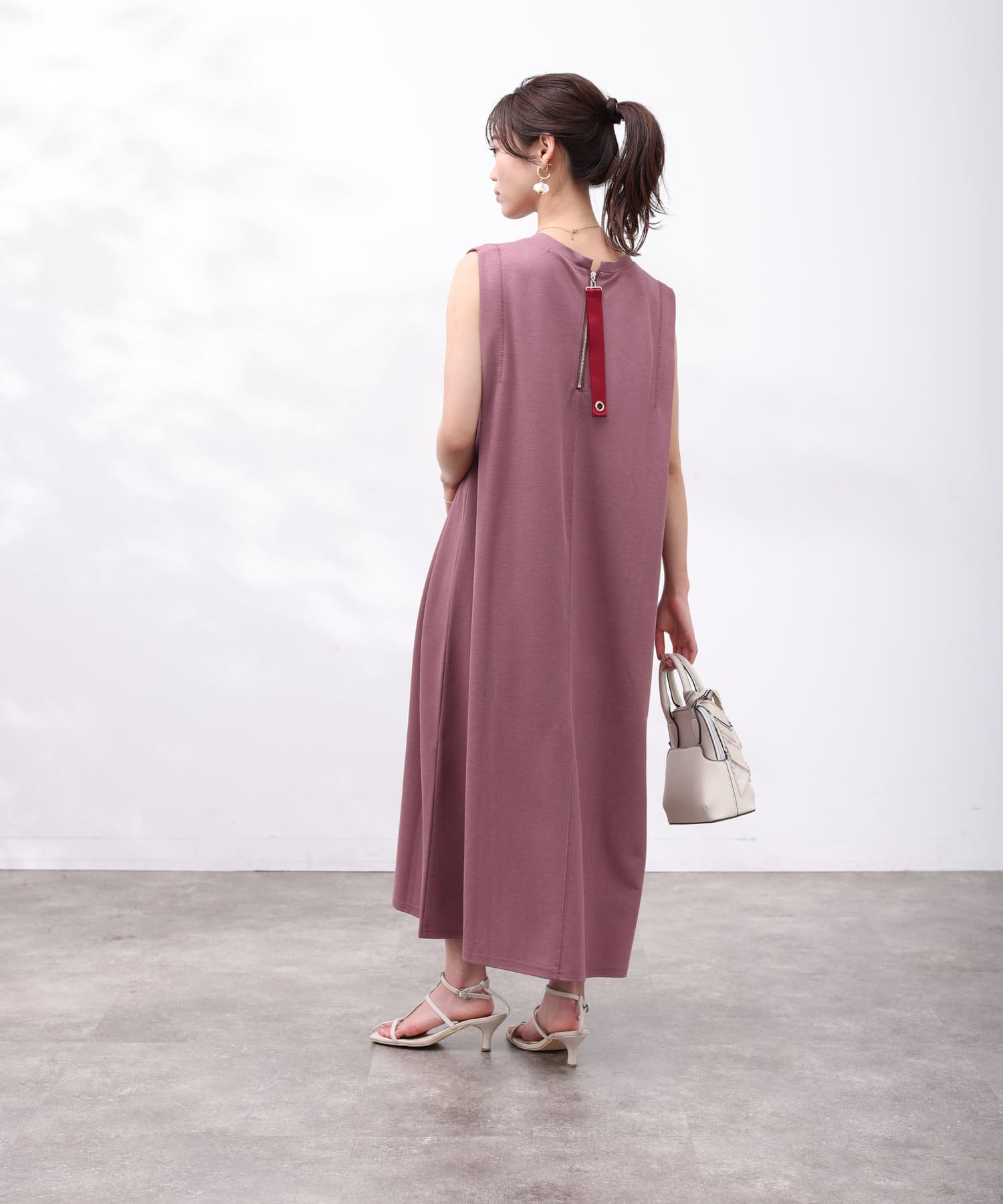 後あき部分はファスナー付き。さらに、ファスナートップにグログランテープを付けた飾りがついているので1枚でもサマ見えするデザインです。