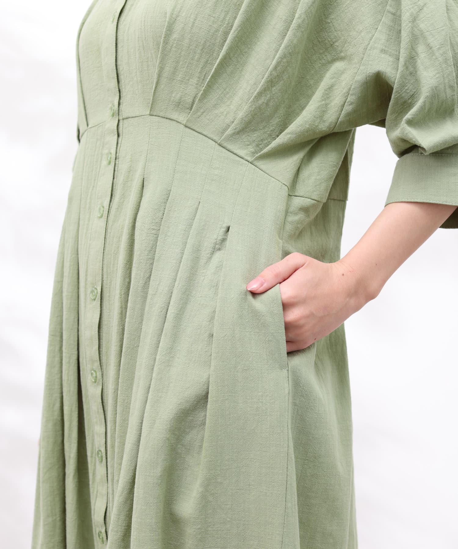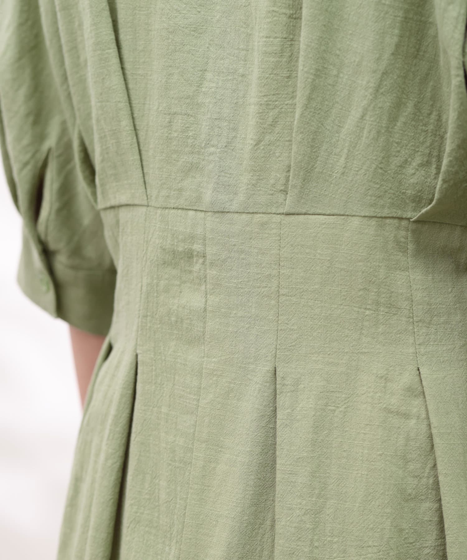 ・ウエストのタックでメリハリがでるのでベルトをしなくても着痩せ効果◎