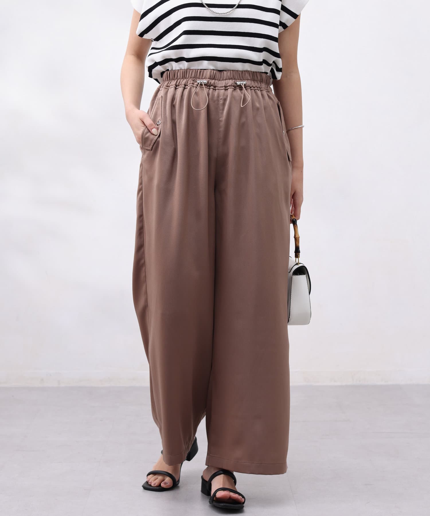 • Chez toi(シェトワ) ウエストドロストサテンイージーパンツ