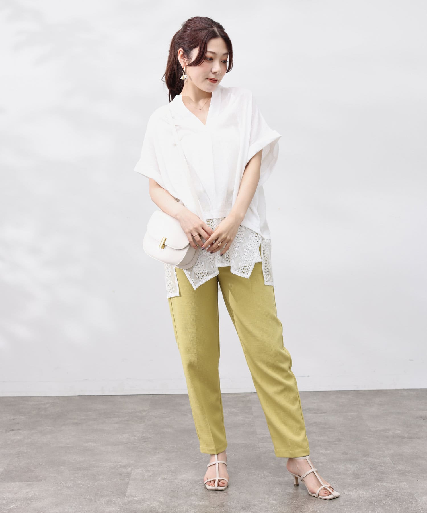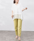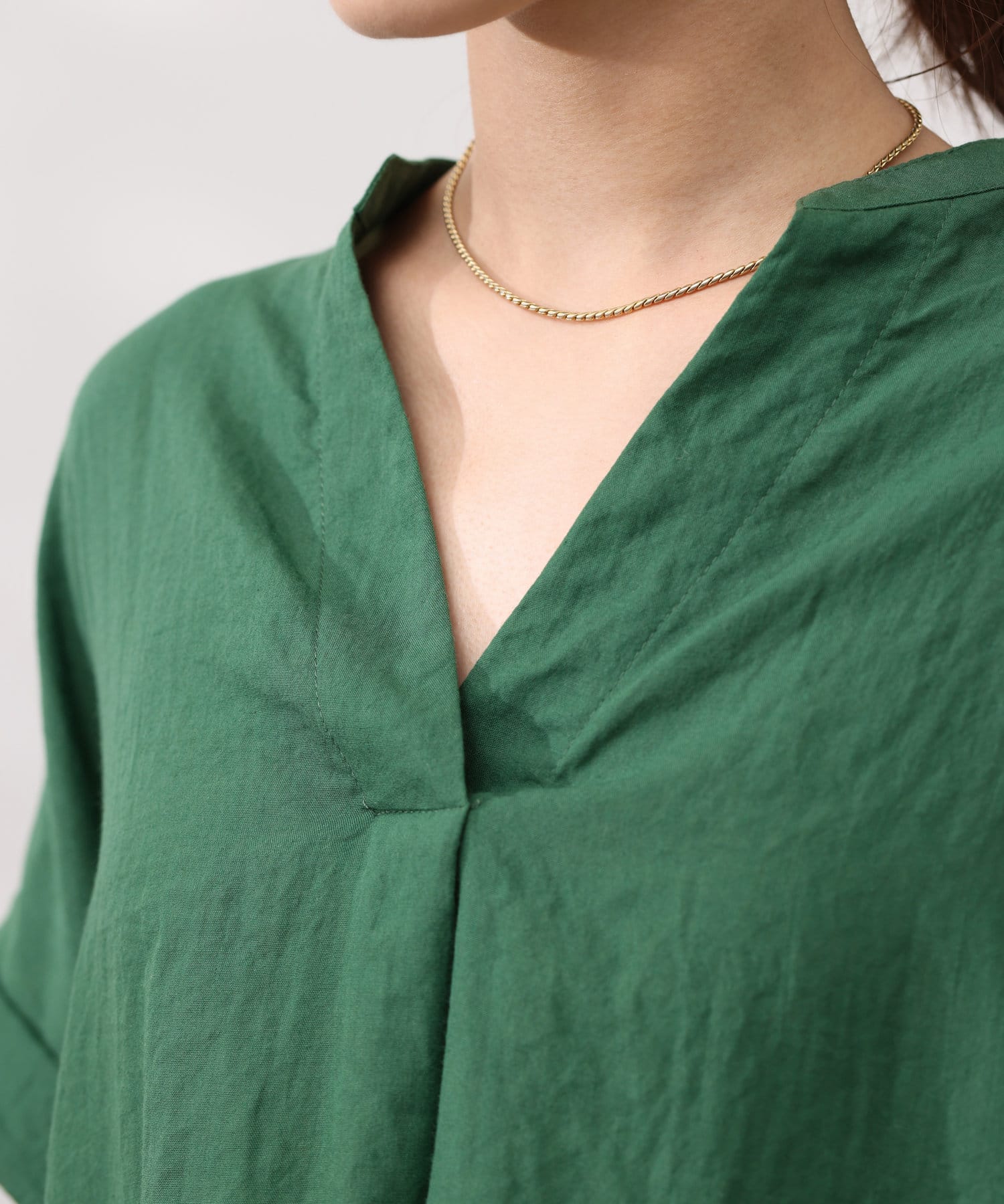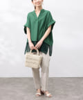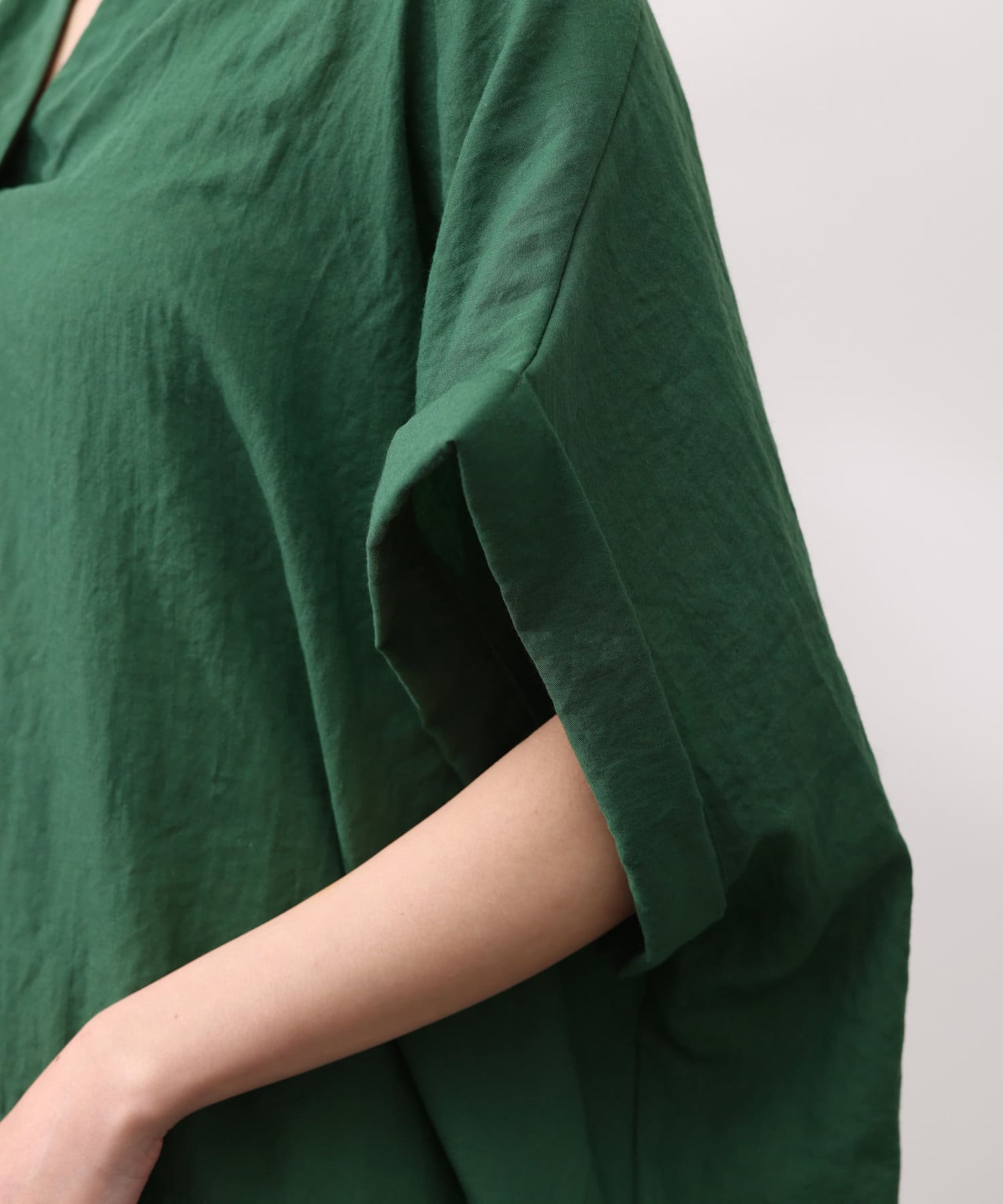 緩やかなドルマンスリーブに柔らかい生地感が着心地良く、夏でも爽やかに着られるのが嬉しい!