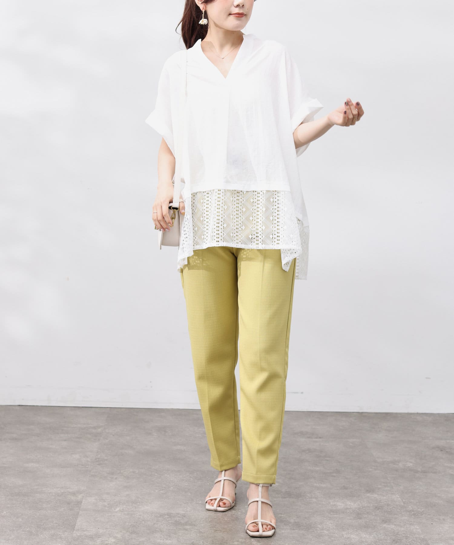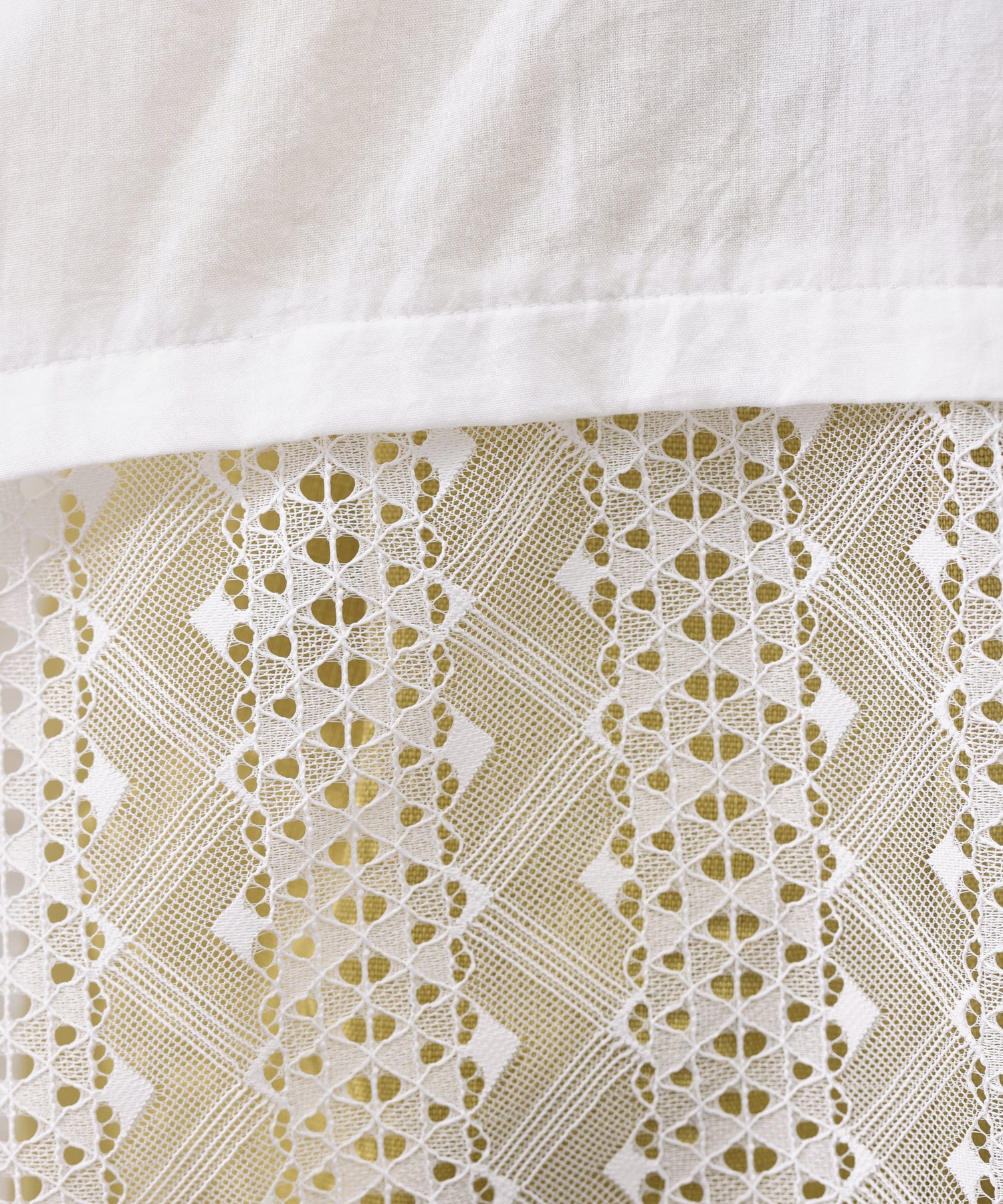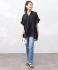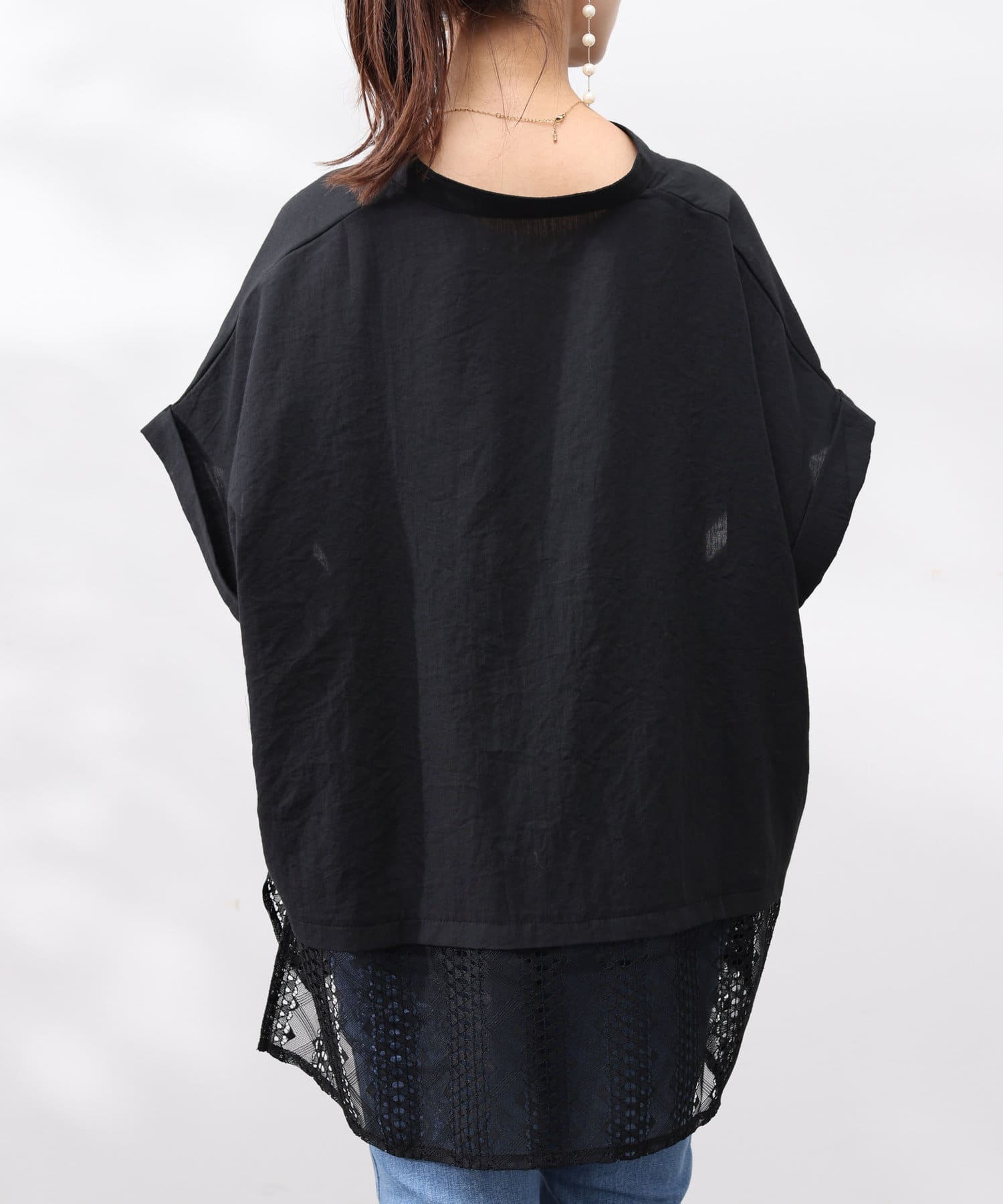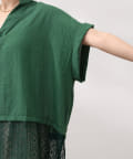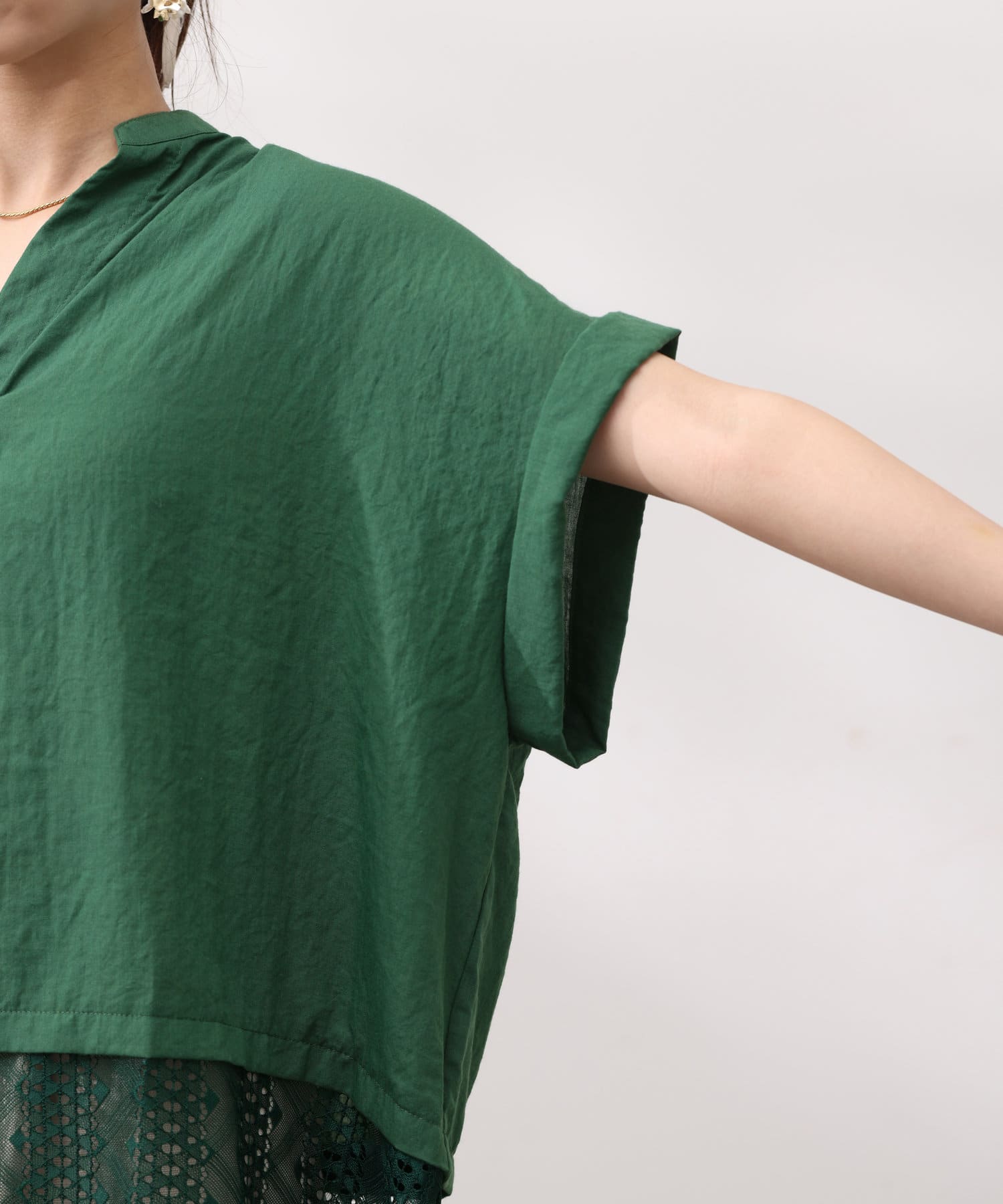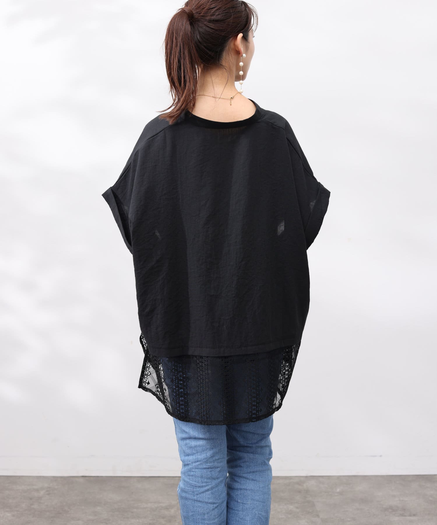 ゆったりとしたサイズ感に、裾のレース切替がポイントのスキッパーシャツです。
