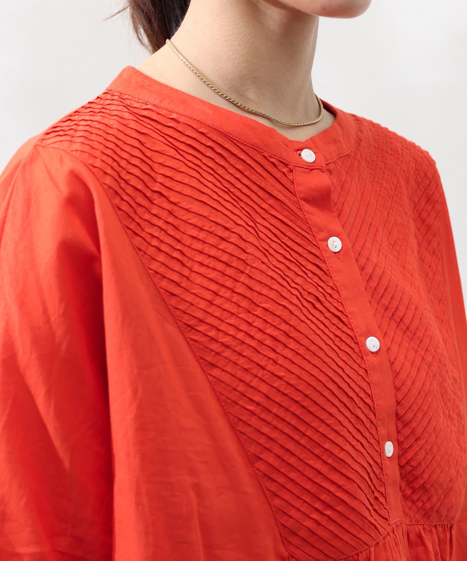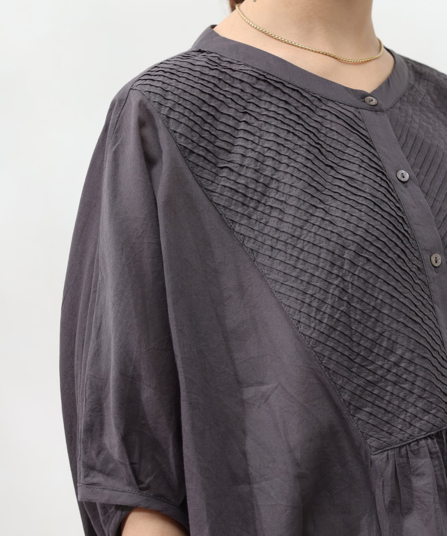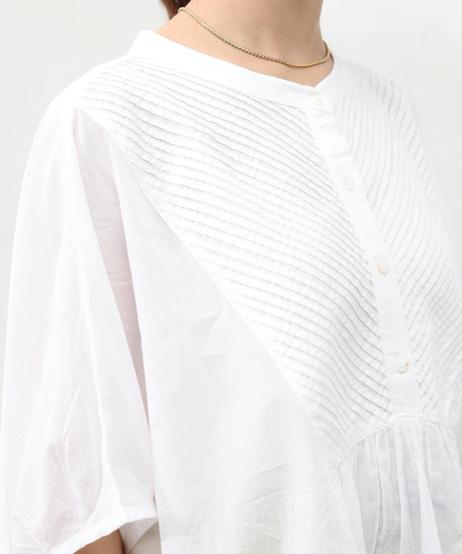 前身頃に細かなピンタックを入れたコットンブラウス。