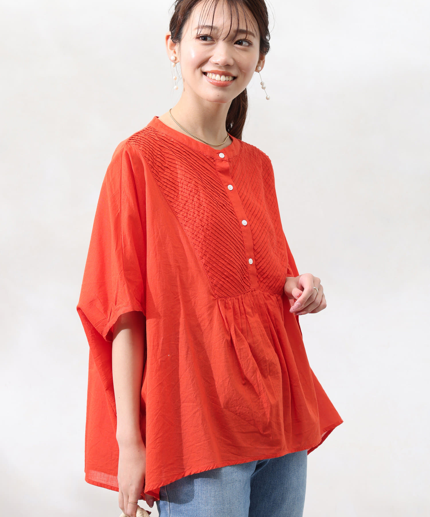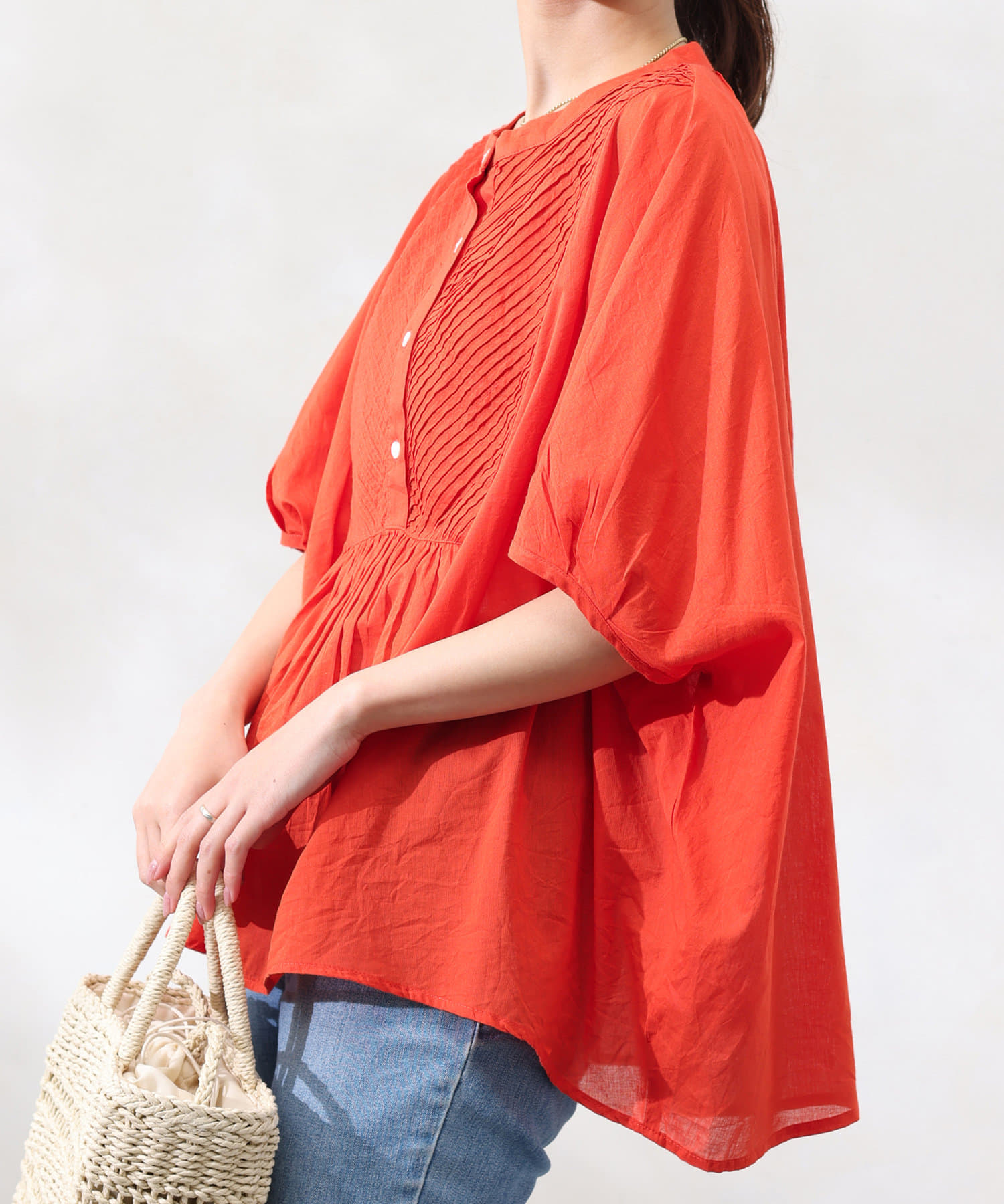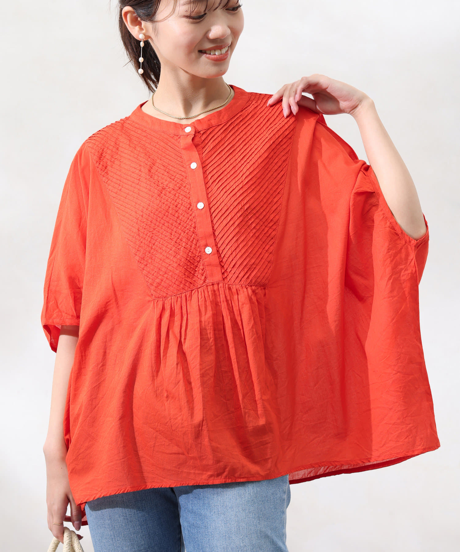 インド綿を使用したナチュラルな風合いの涼し気ブラウス
