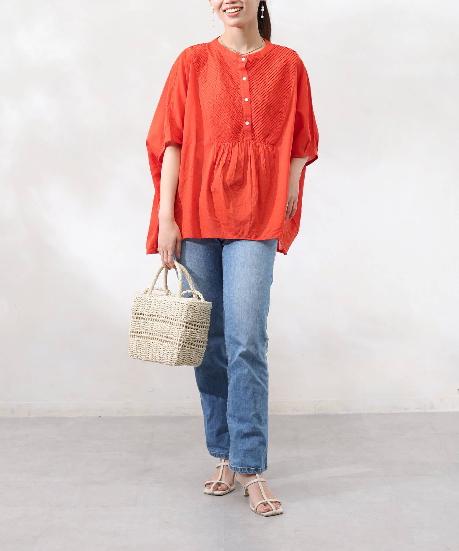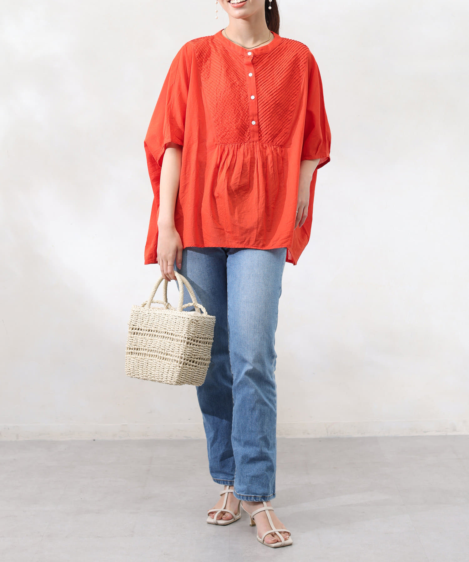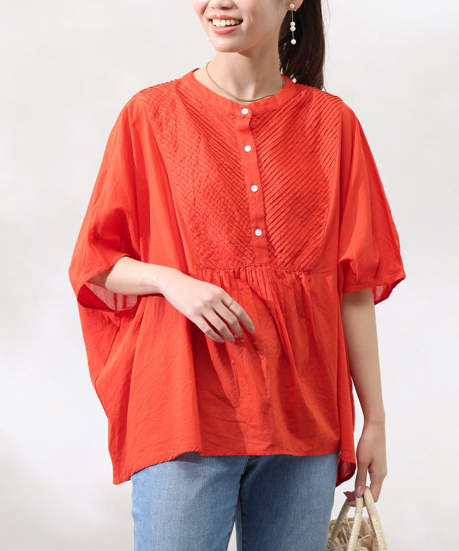 インド綿を使用したナチュラルな風合いの涼し気ブラウス