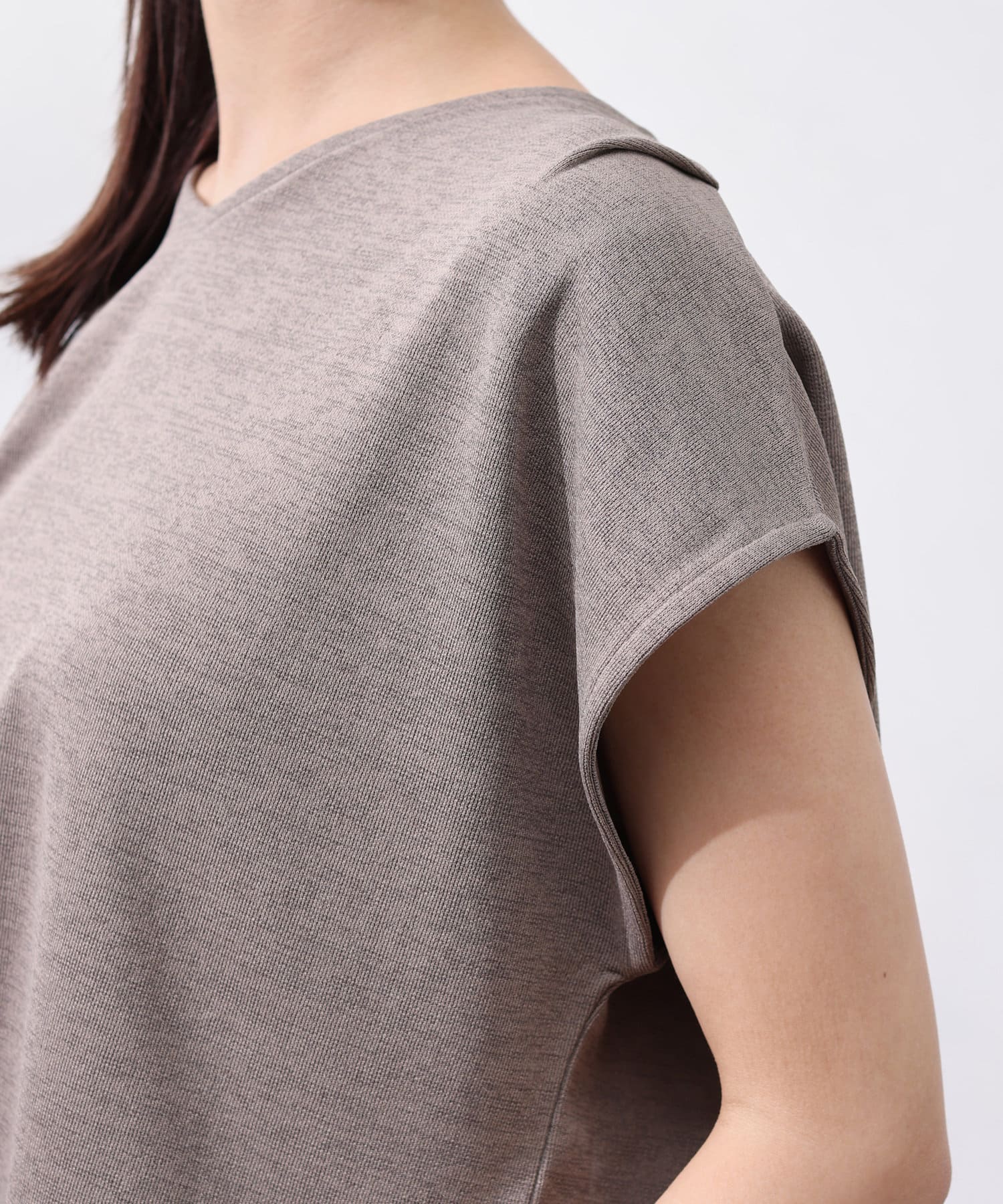 麻調のフライス生地を使用した肌さわりの良いトップスが入荷しました。
