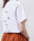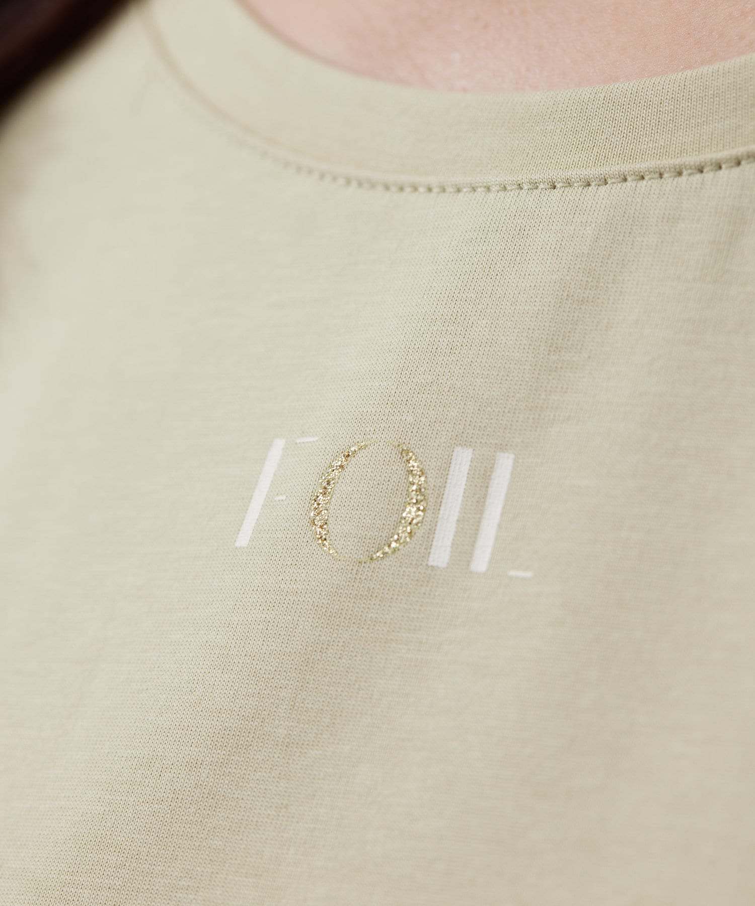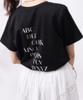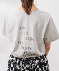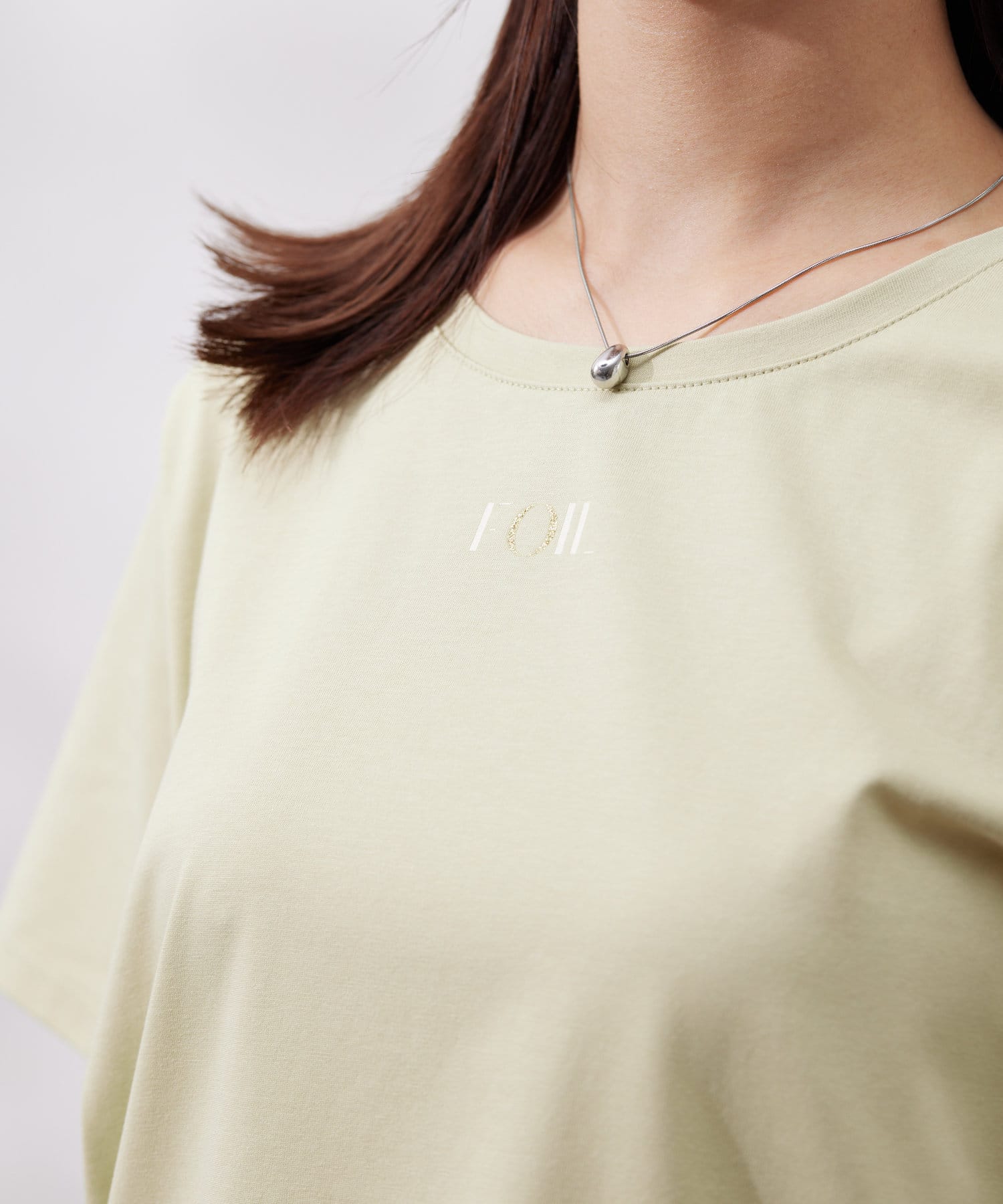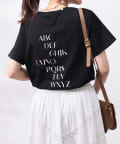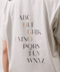 ラメプリントと染み込みプリントを合わせたロゴTシャツ。
