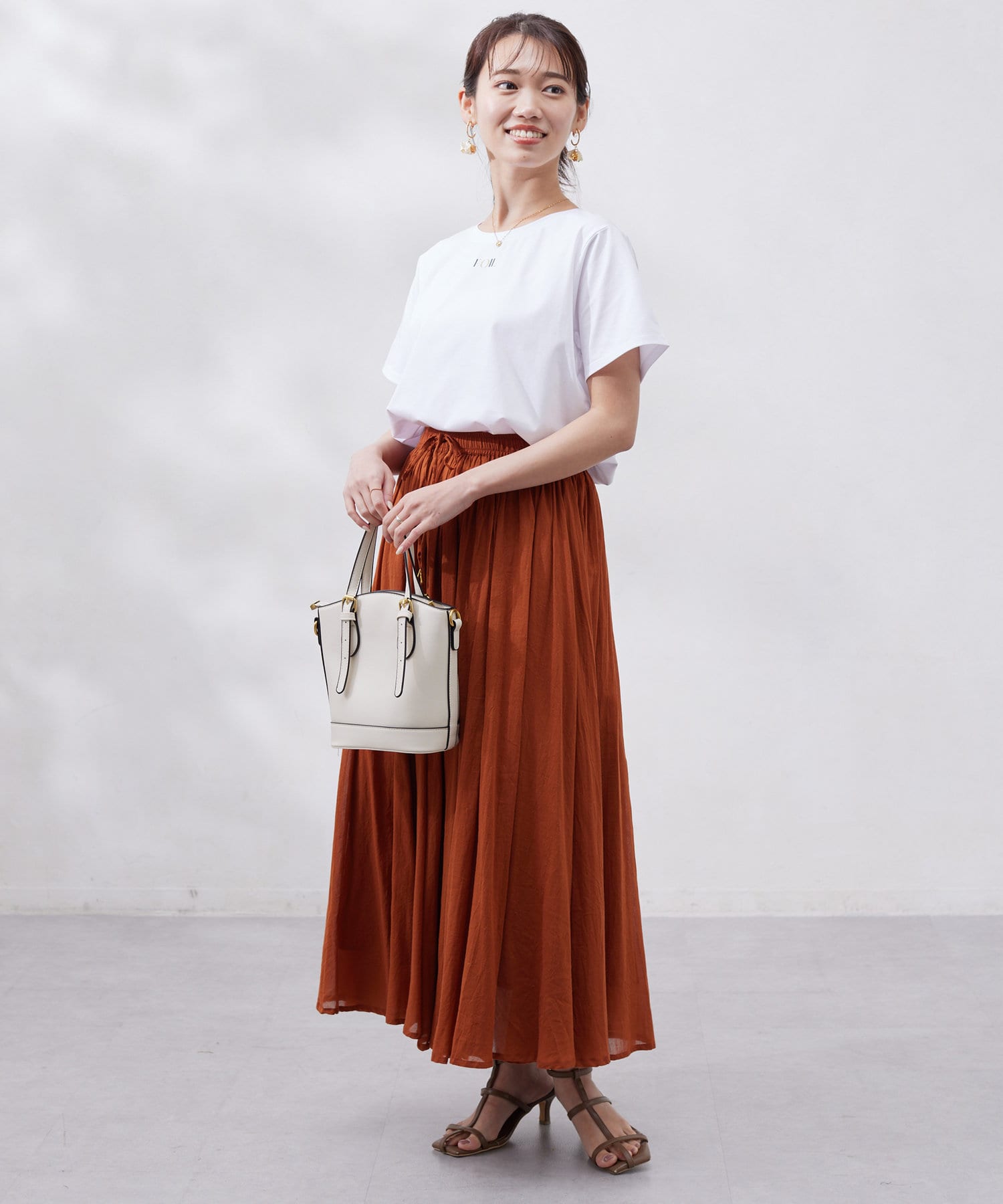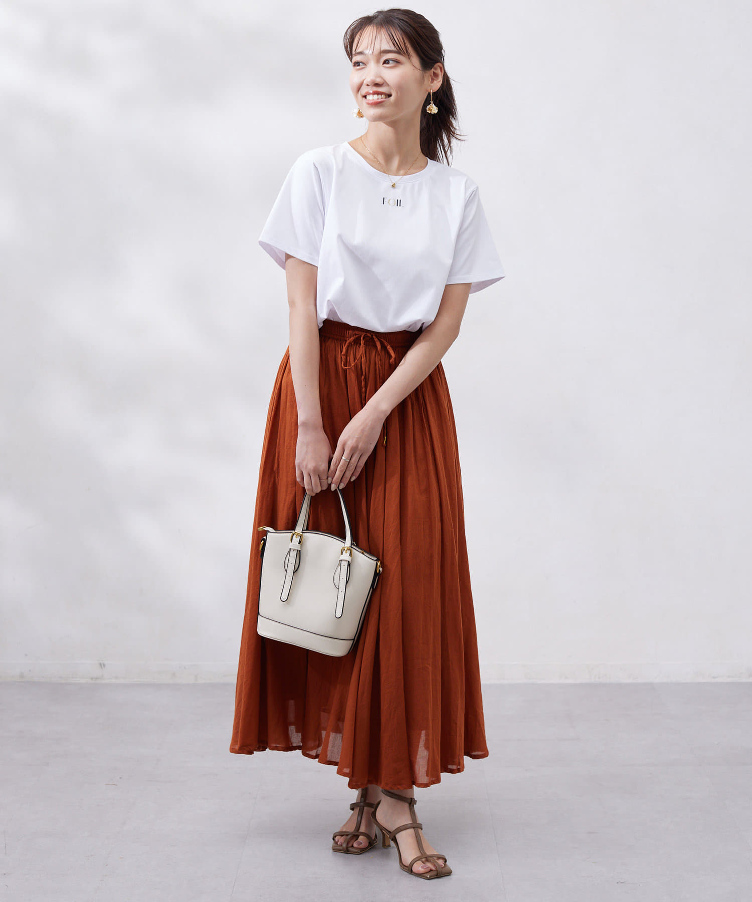 カラースカートやワイドパンツなど、どんなボトムスとも好相性◎