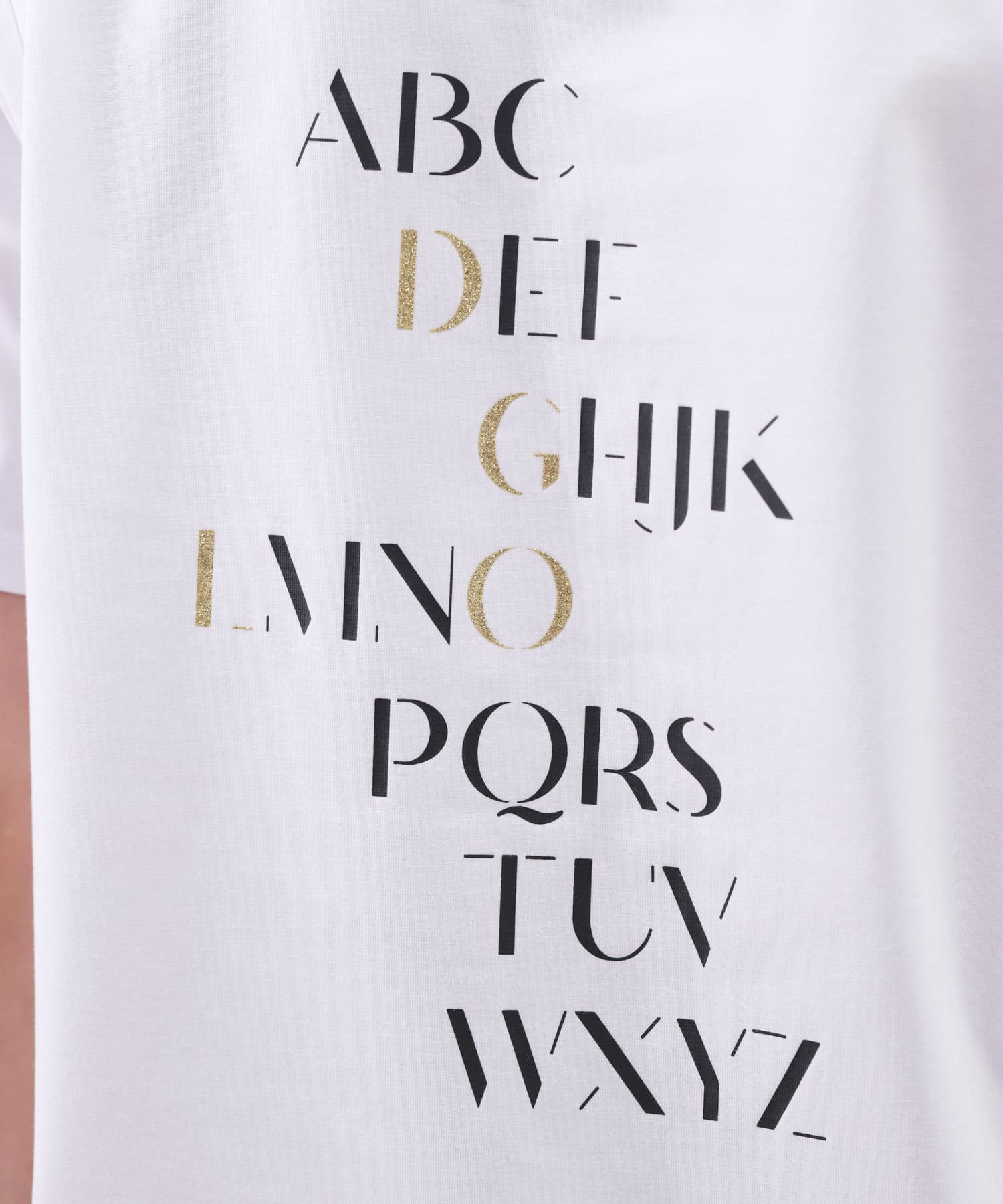 ラメプリントはゴールドカラーしていて、ラメのアルファベットを繋げるとGOLDのワードになる遊び心も◎