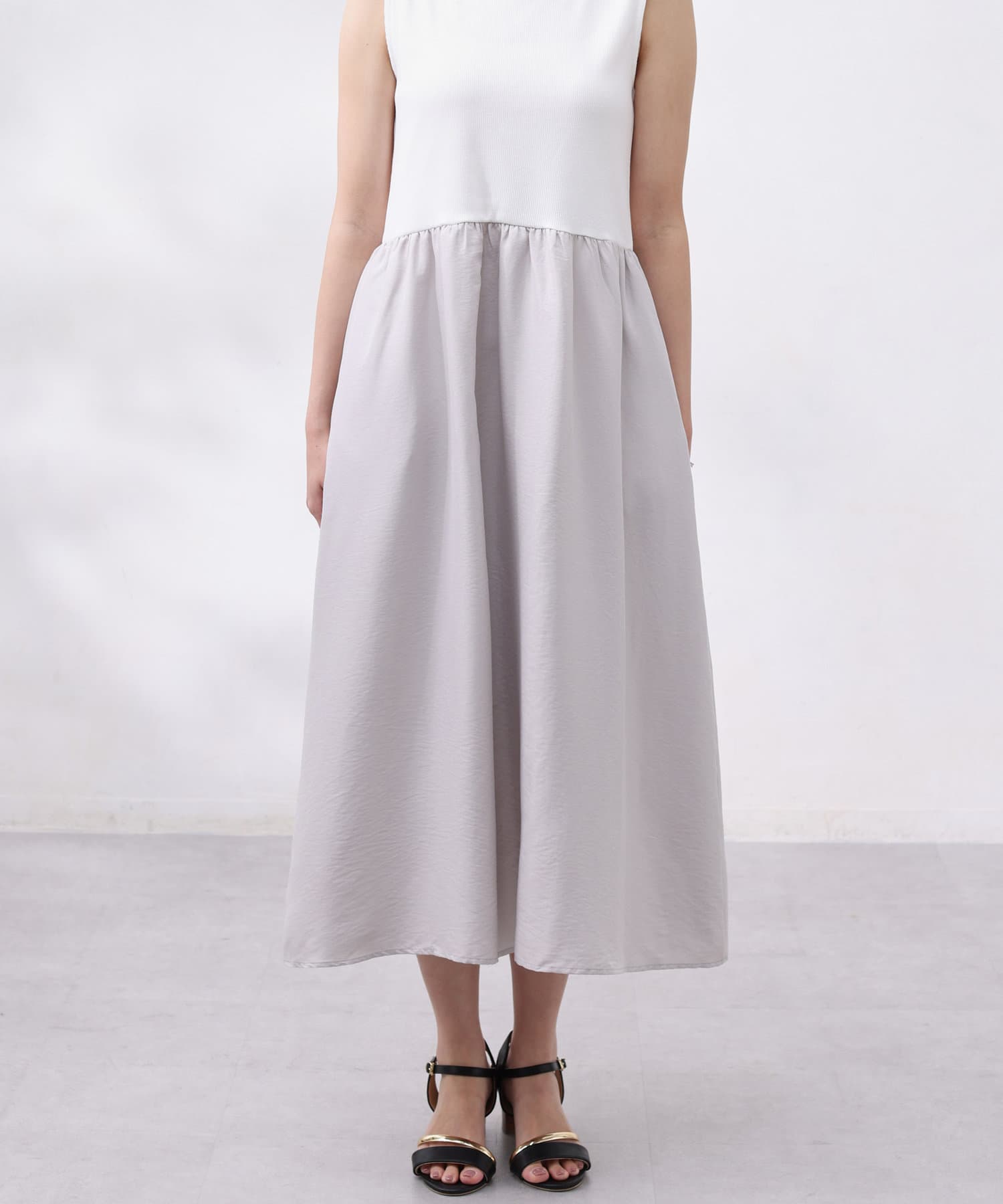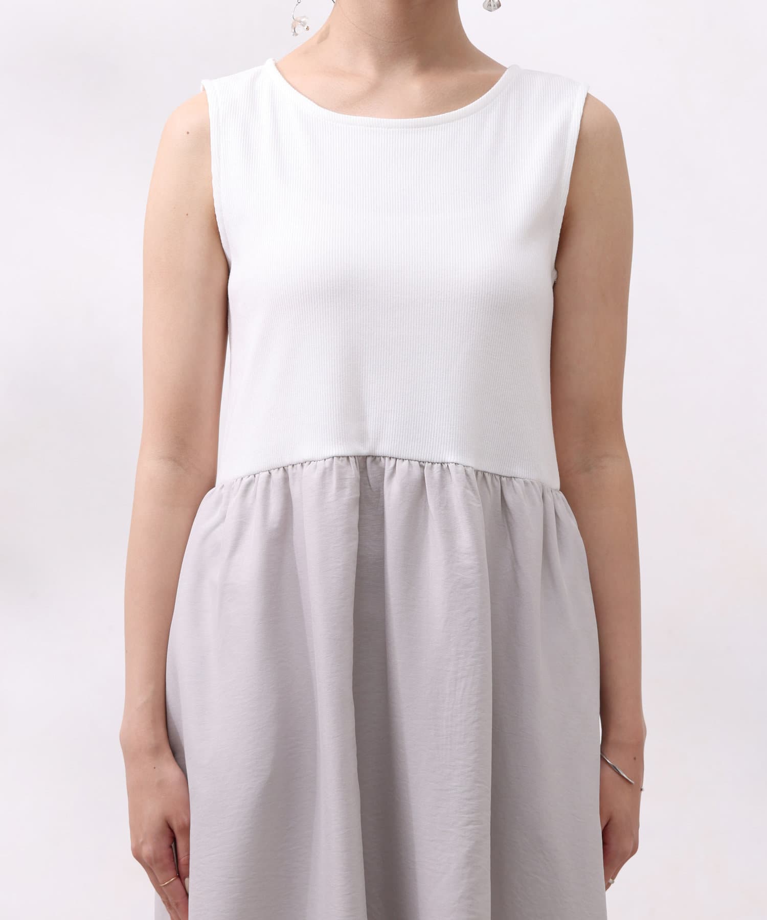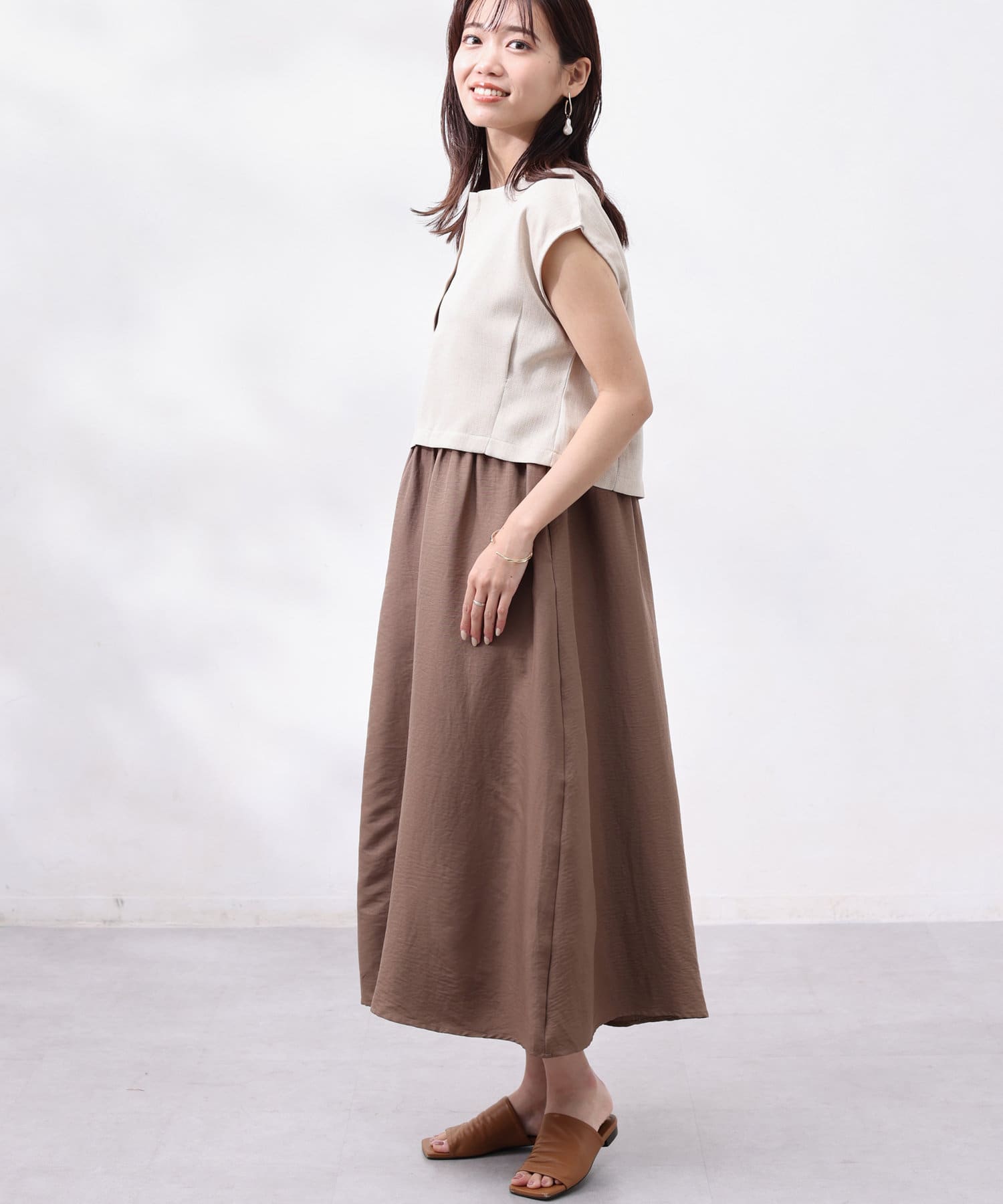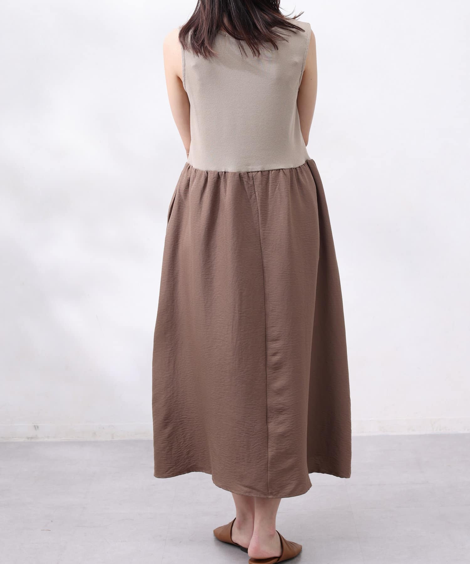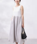 ワンピースは上部がリブの切替になっており、インナー感の出ない大人カジュアルなデザイン。