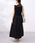 ツイードのベスト風プルオーパーとリブ切替のノースリーブワンピースのセットアイテム。