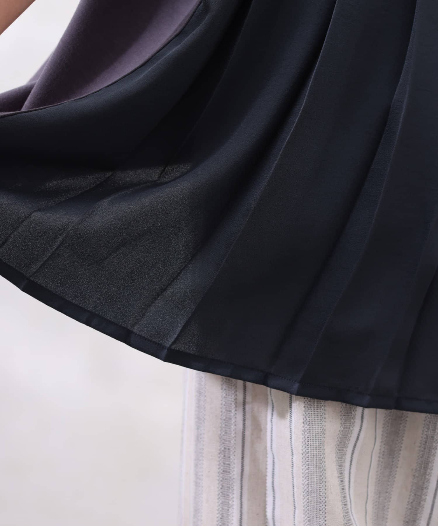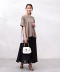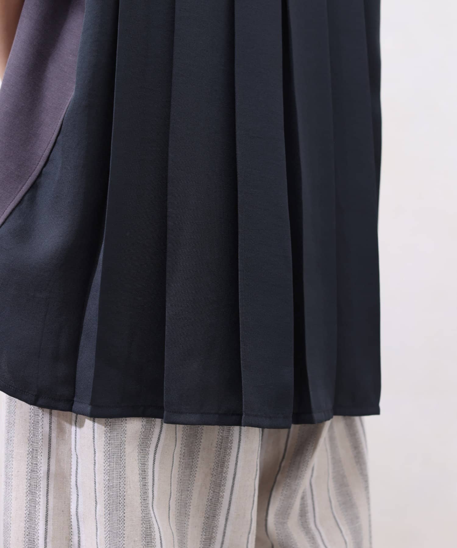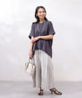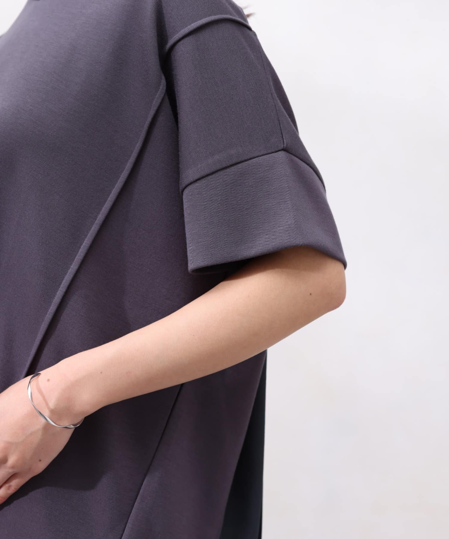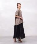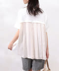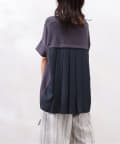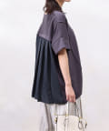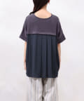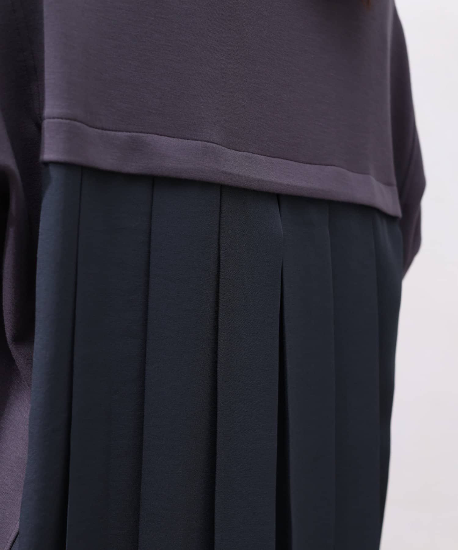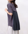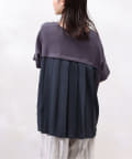 モダール生地と布帛のプリーツ生地をドッキングした異素材切替プルオーバーです。