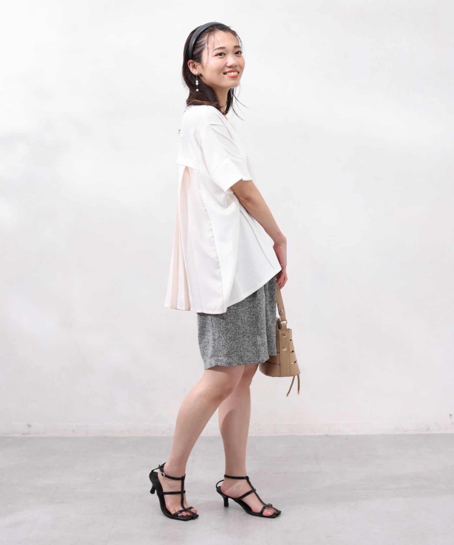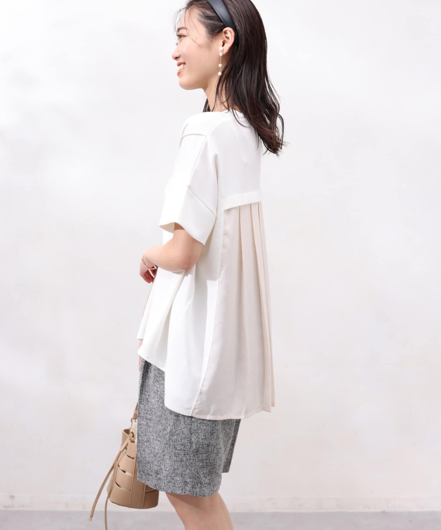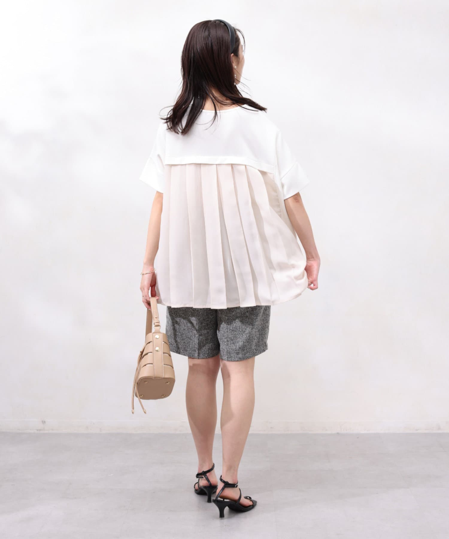 バックプリーツで後姿も印象的なトップス