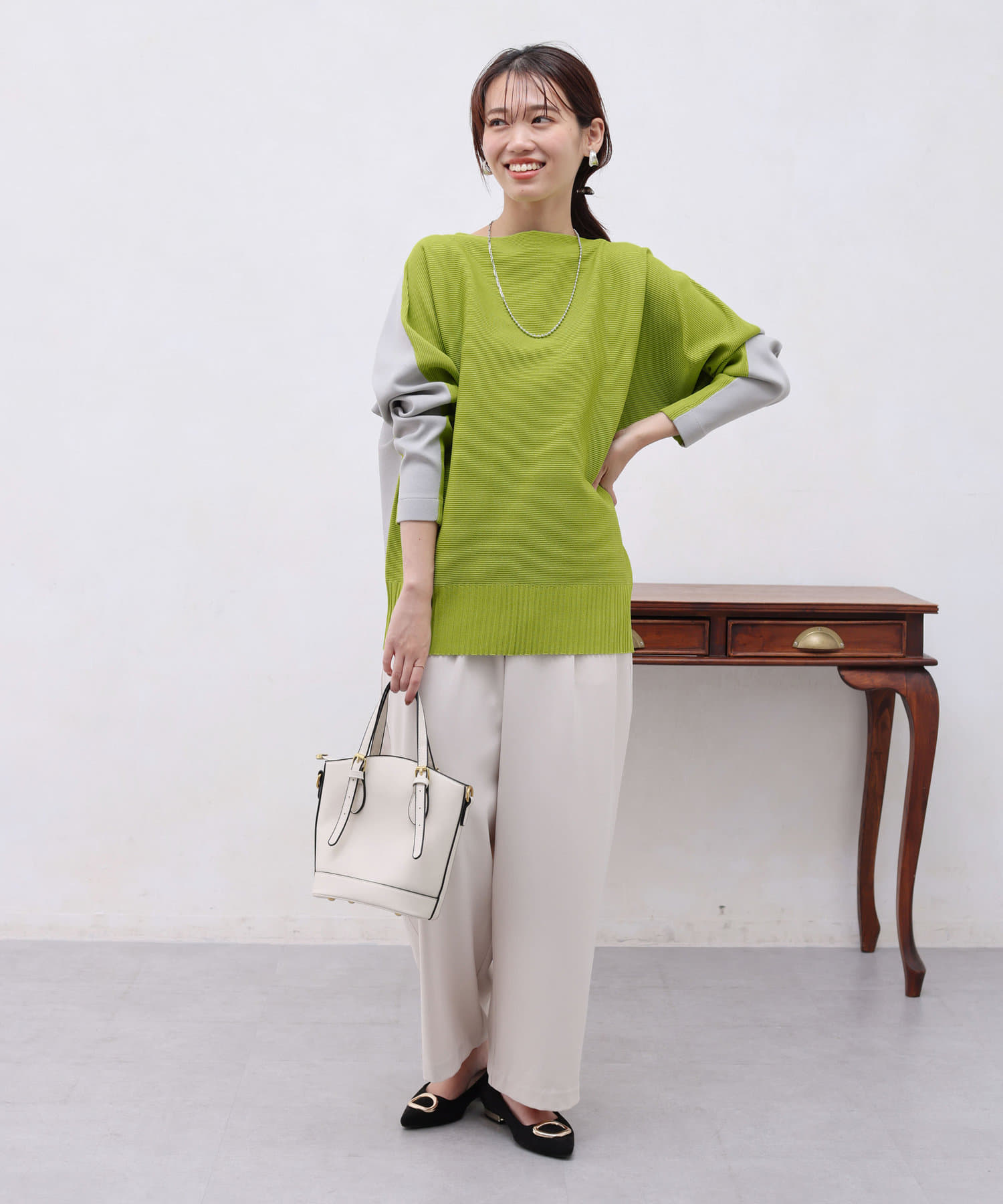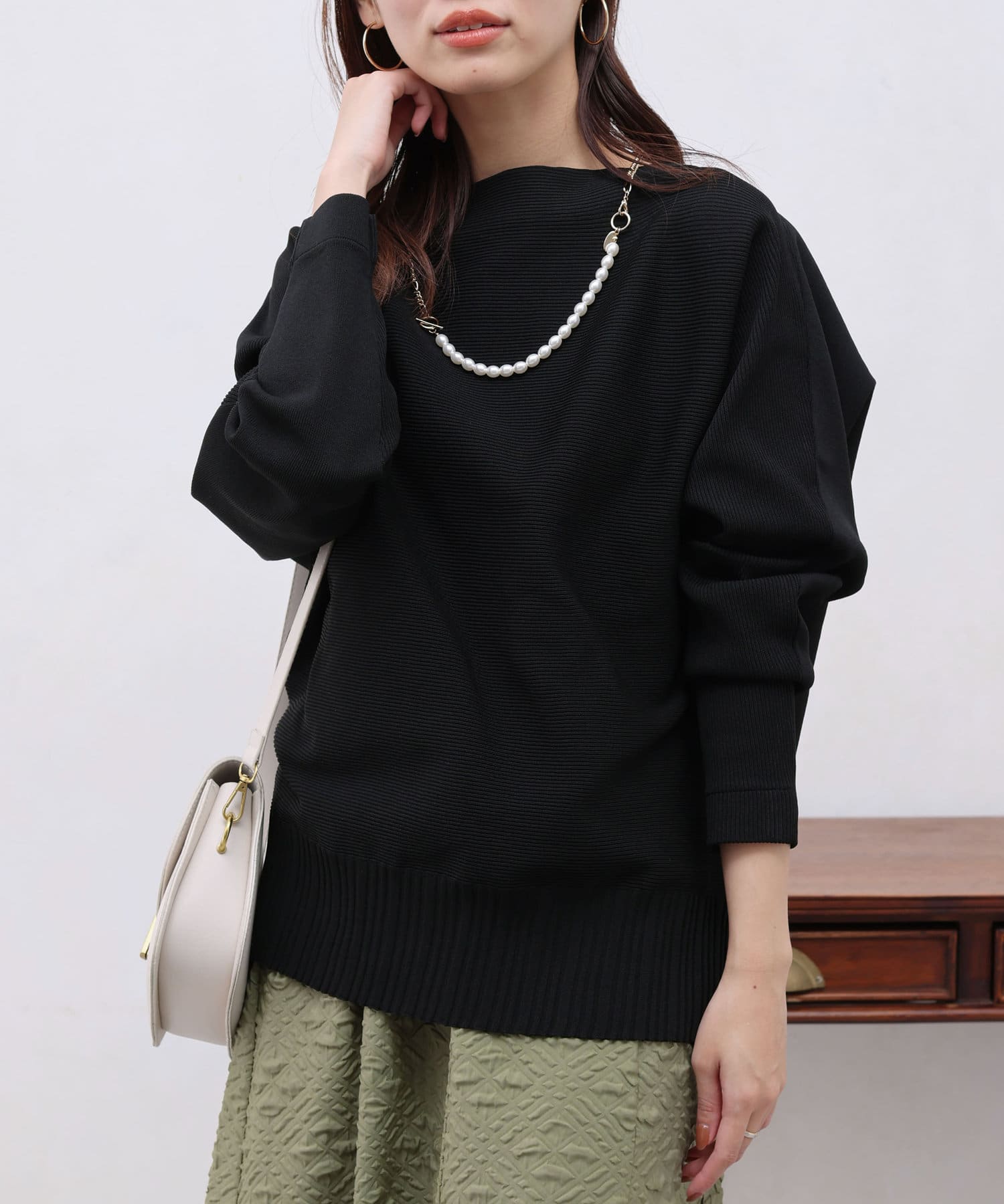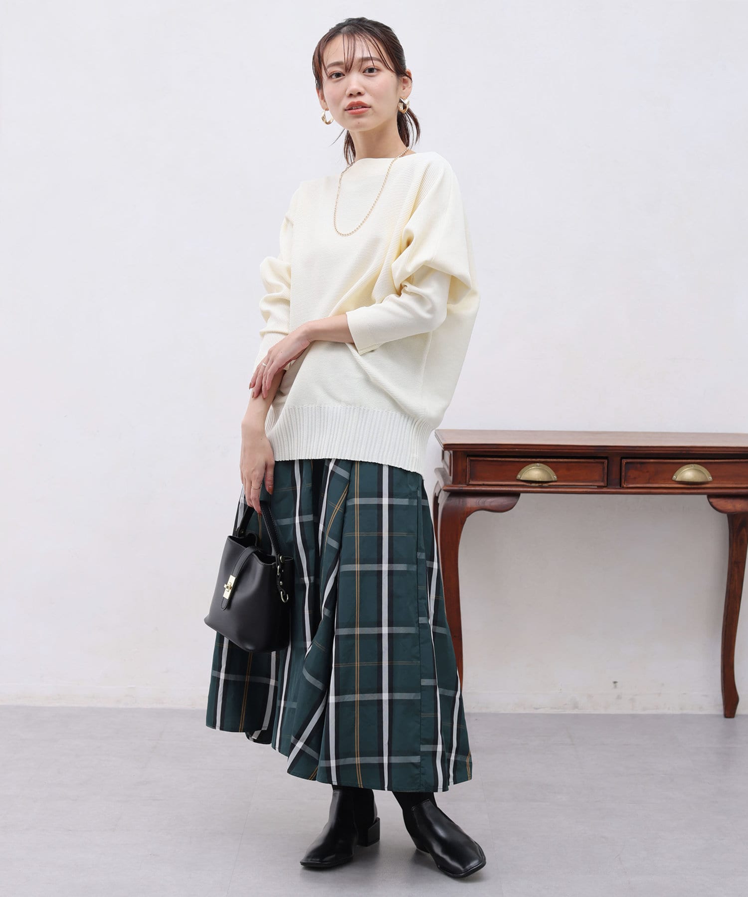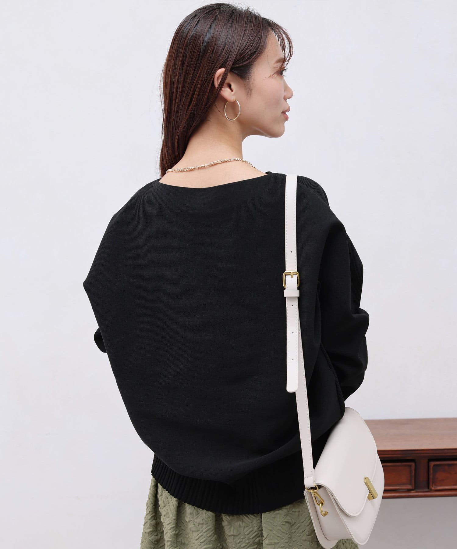 首元はボートネック。開きすぎず、デコルテ部分をきれいに見せてくれます。