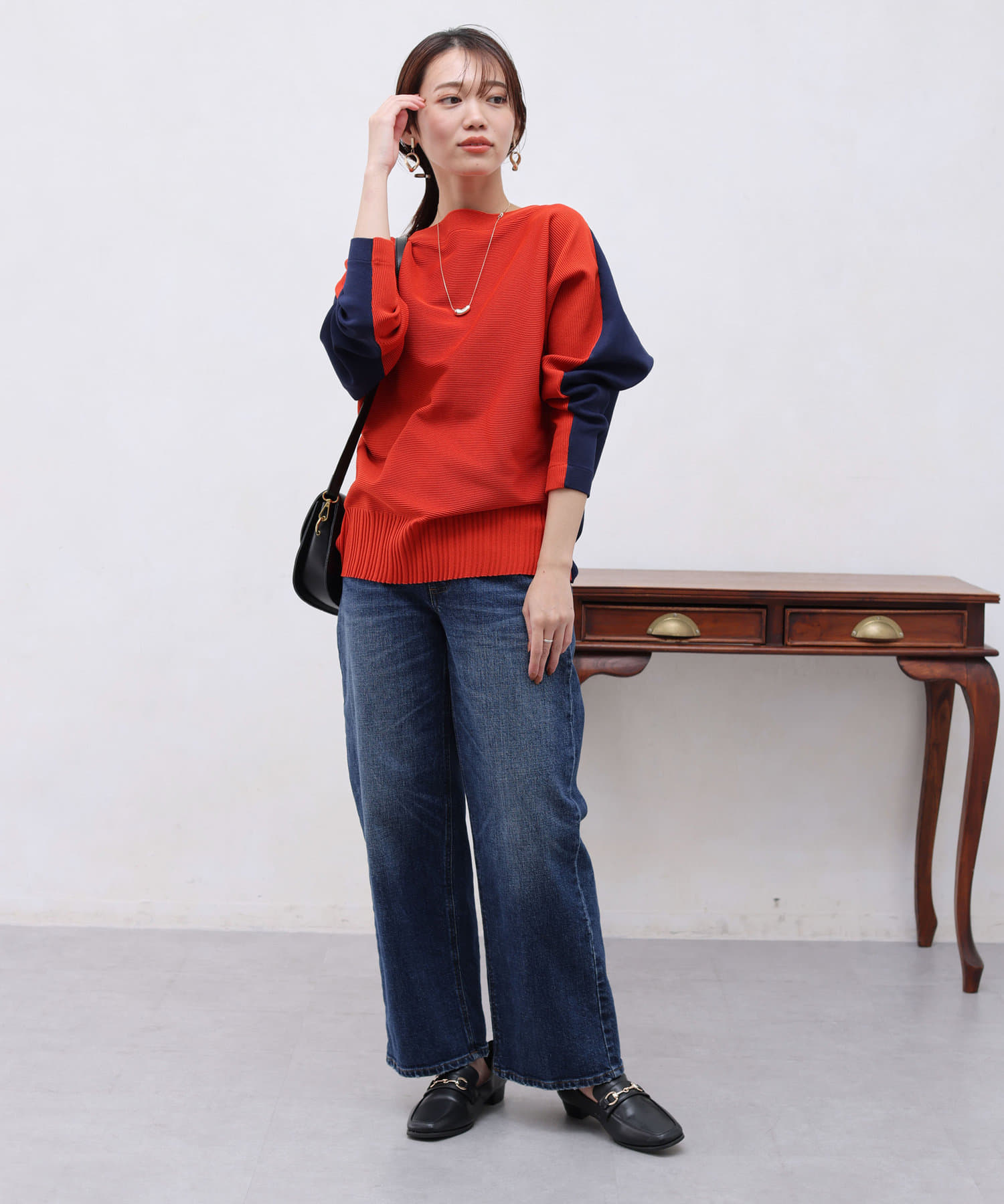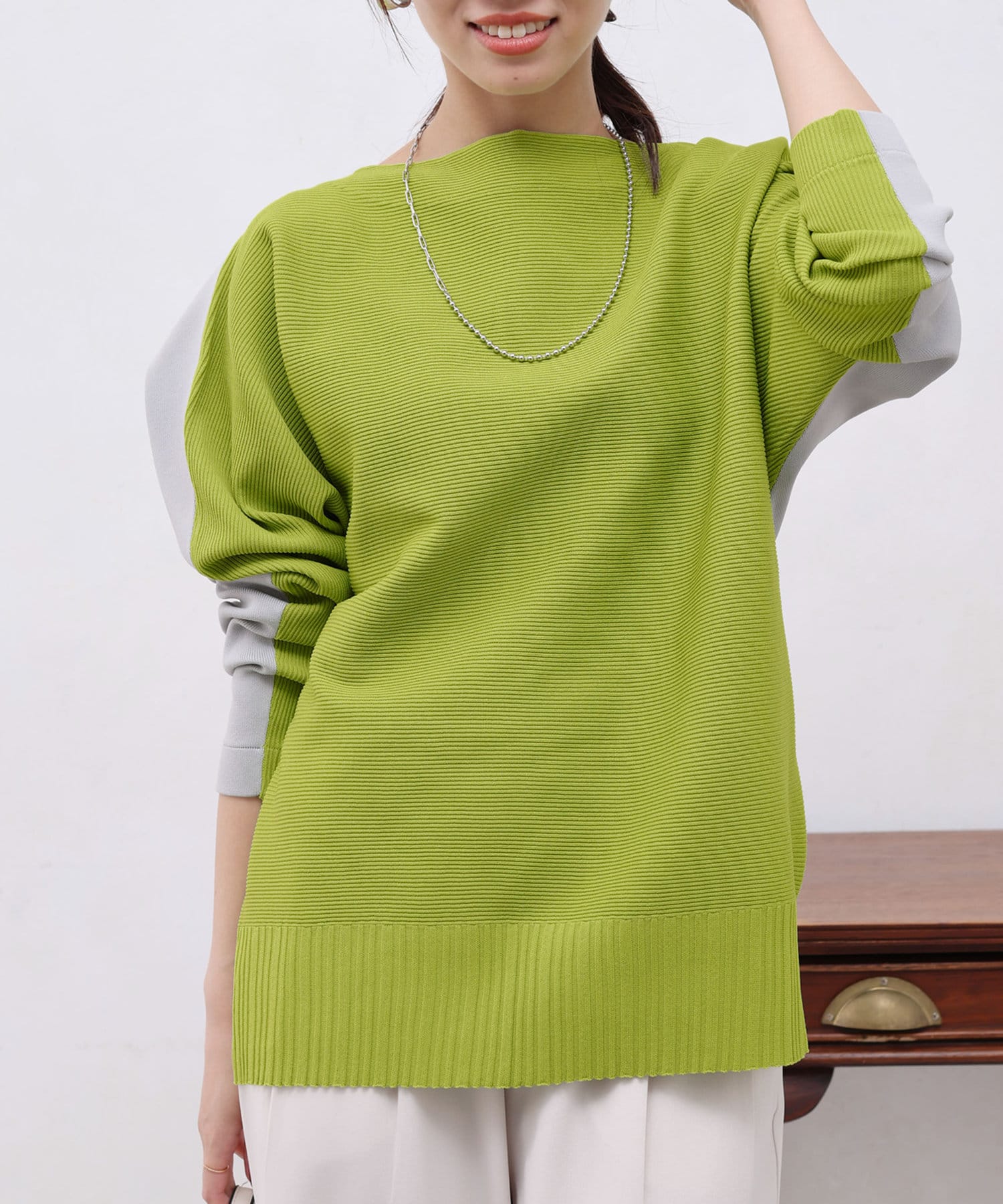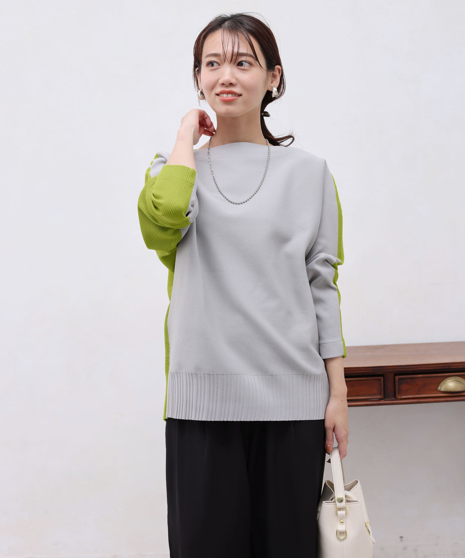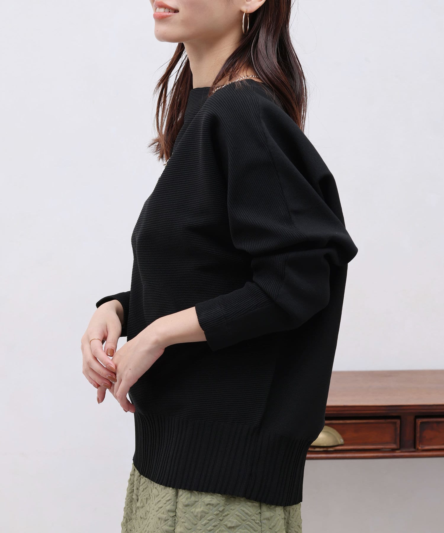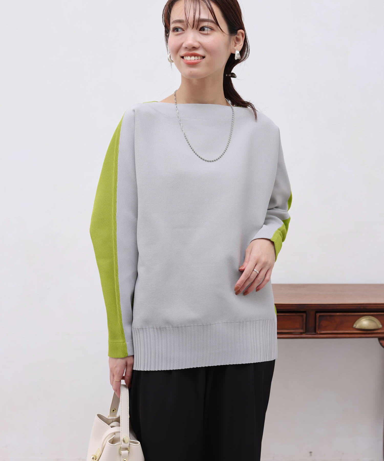 首元はボートネック。開きすぎず、デコルテ部分をきれいに見せてくれます。