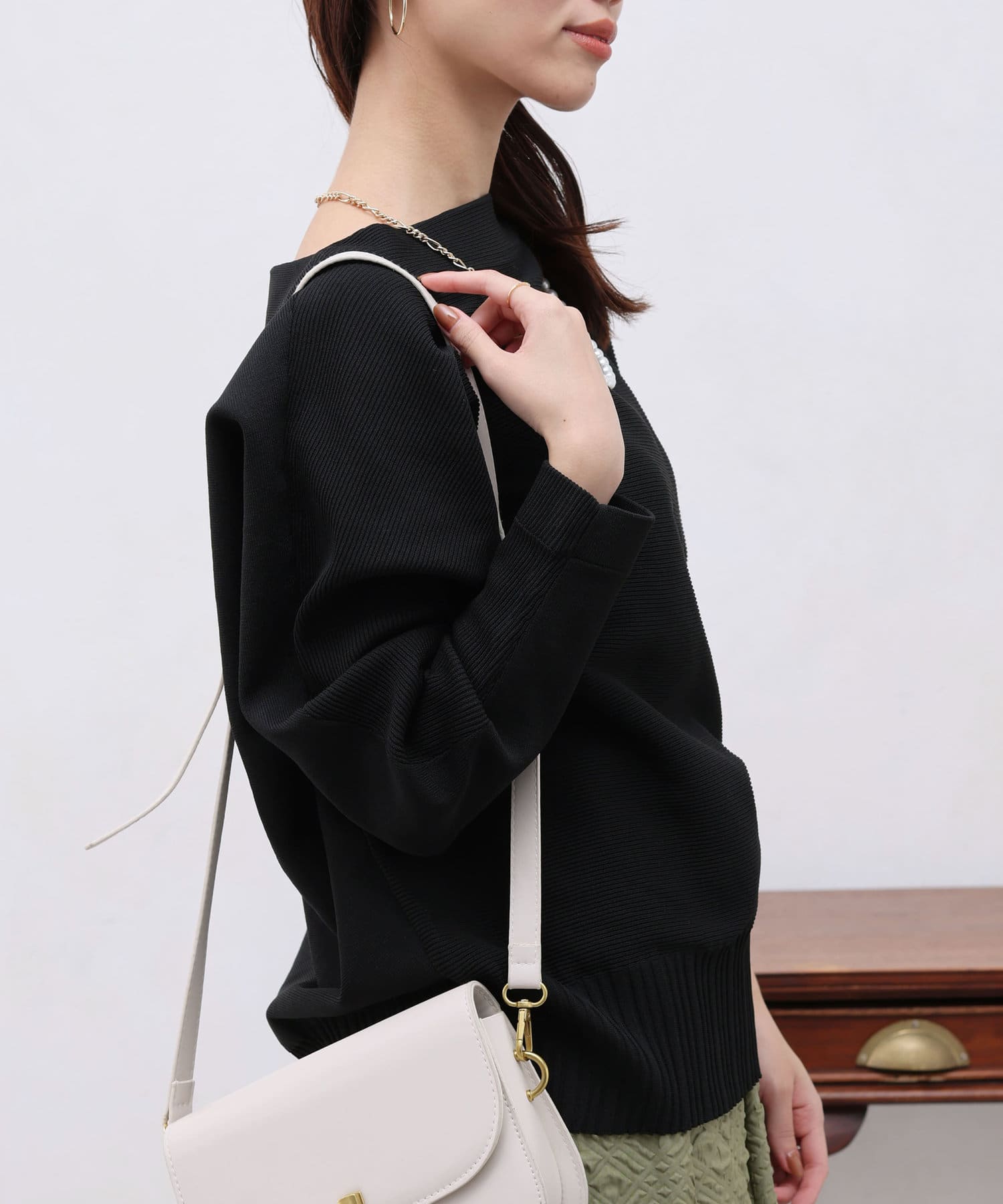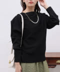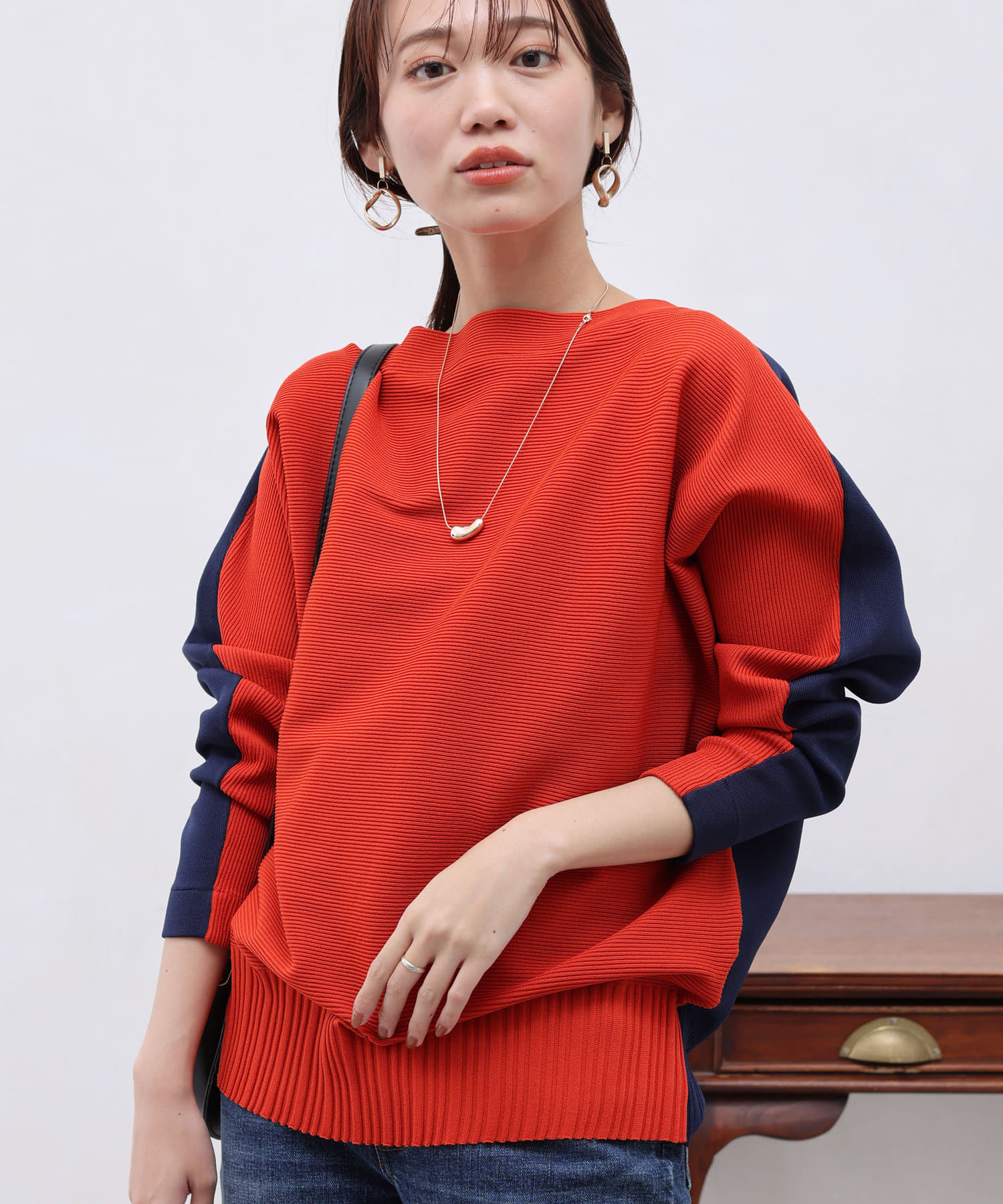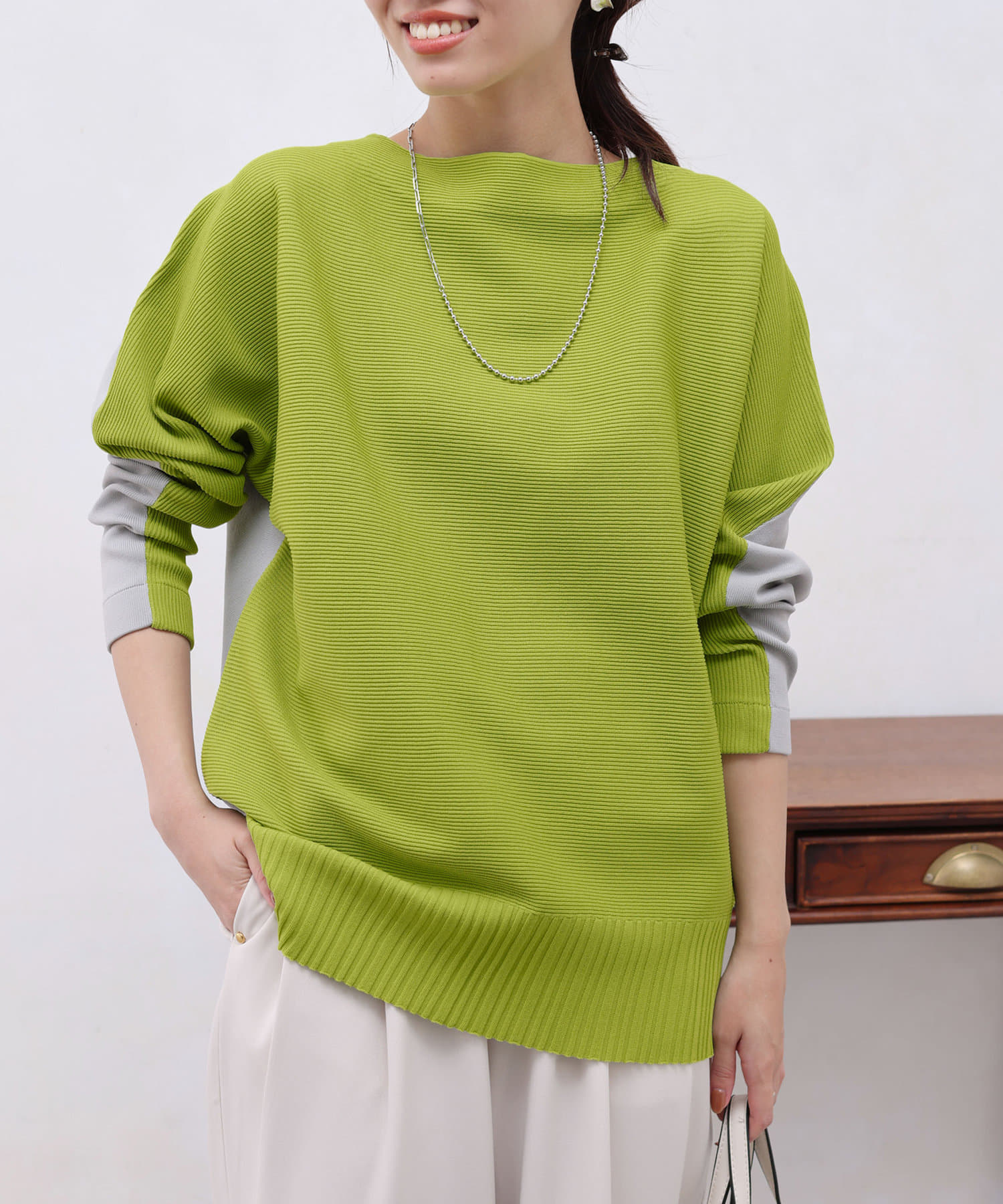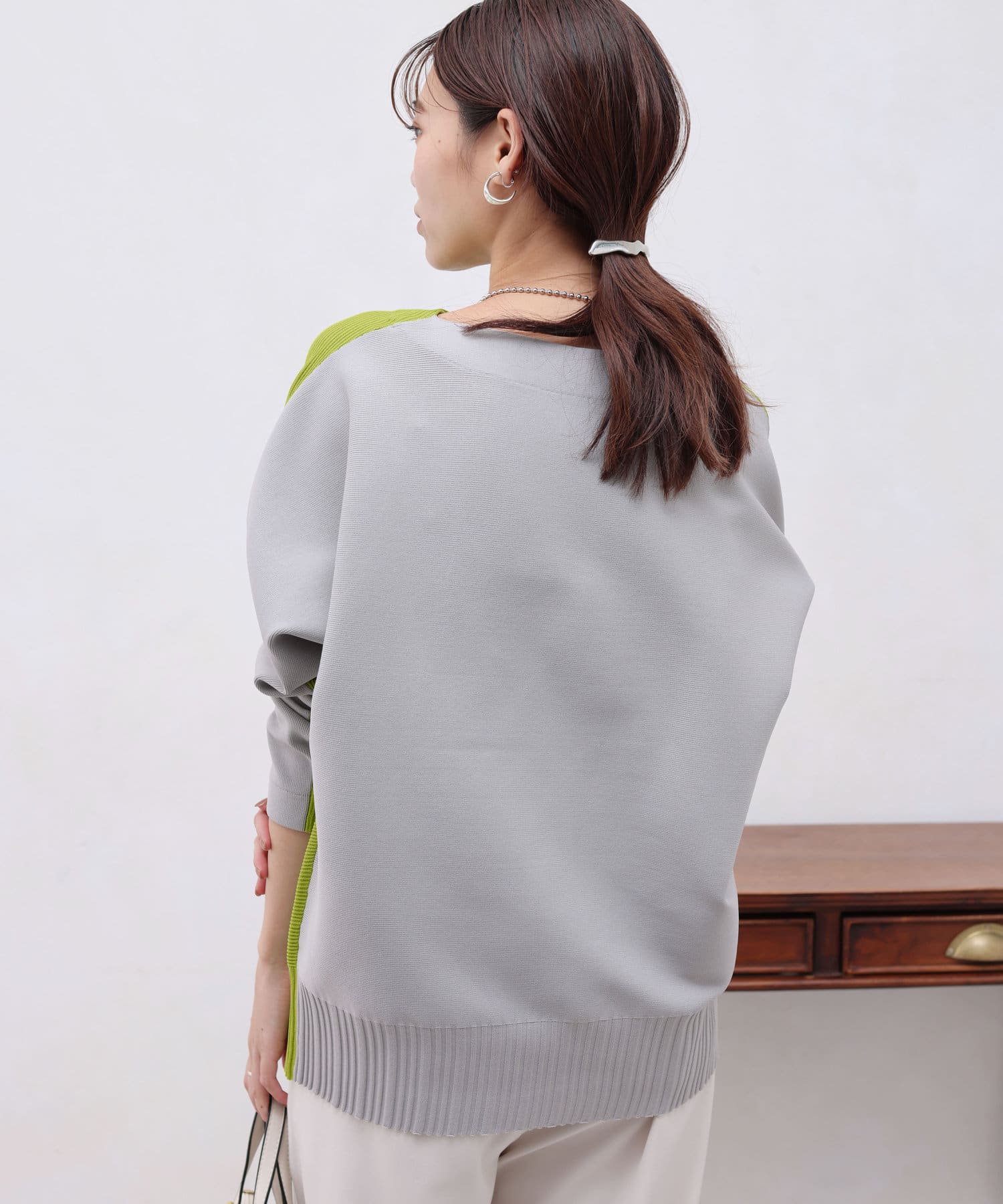 首元はボートネック。開きすぎず、デコルテ部分をきれいに見せてくれます。