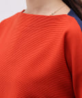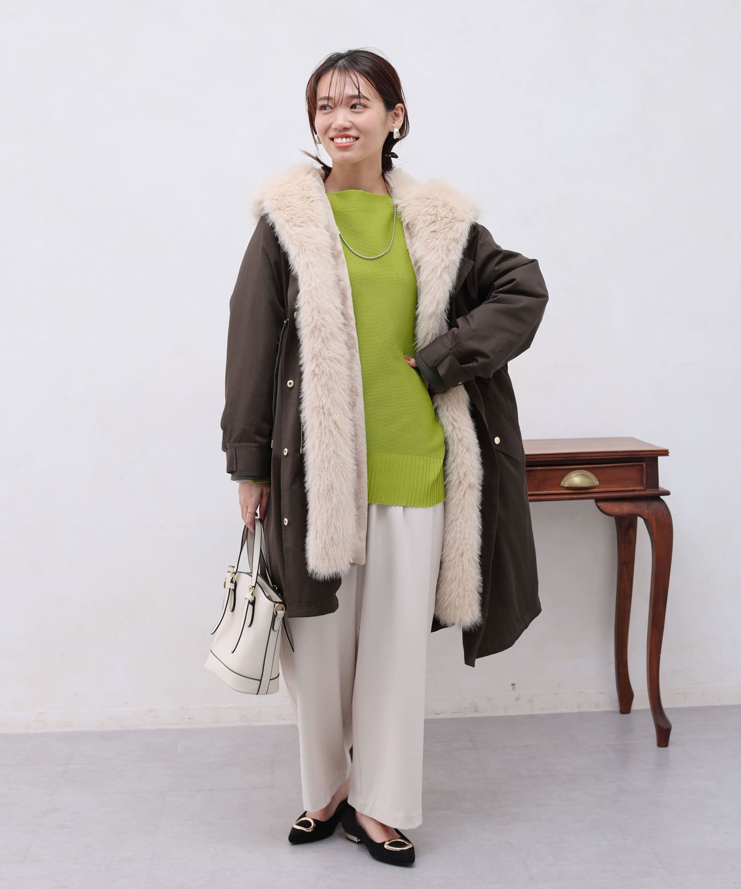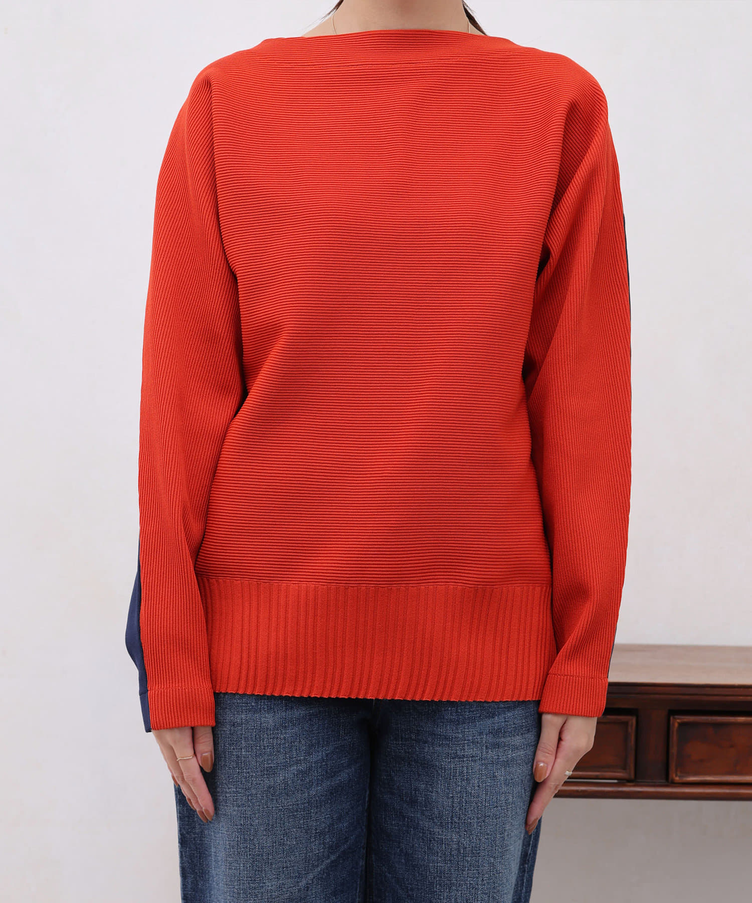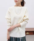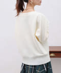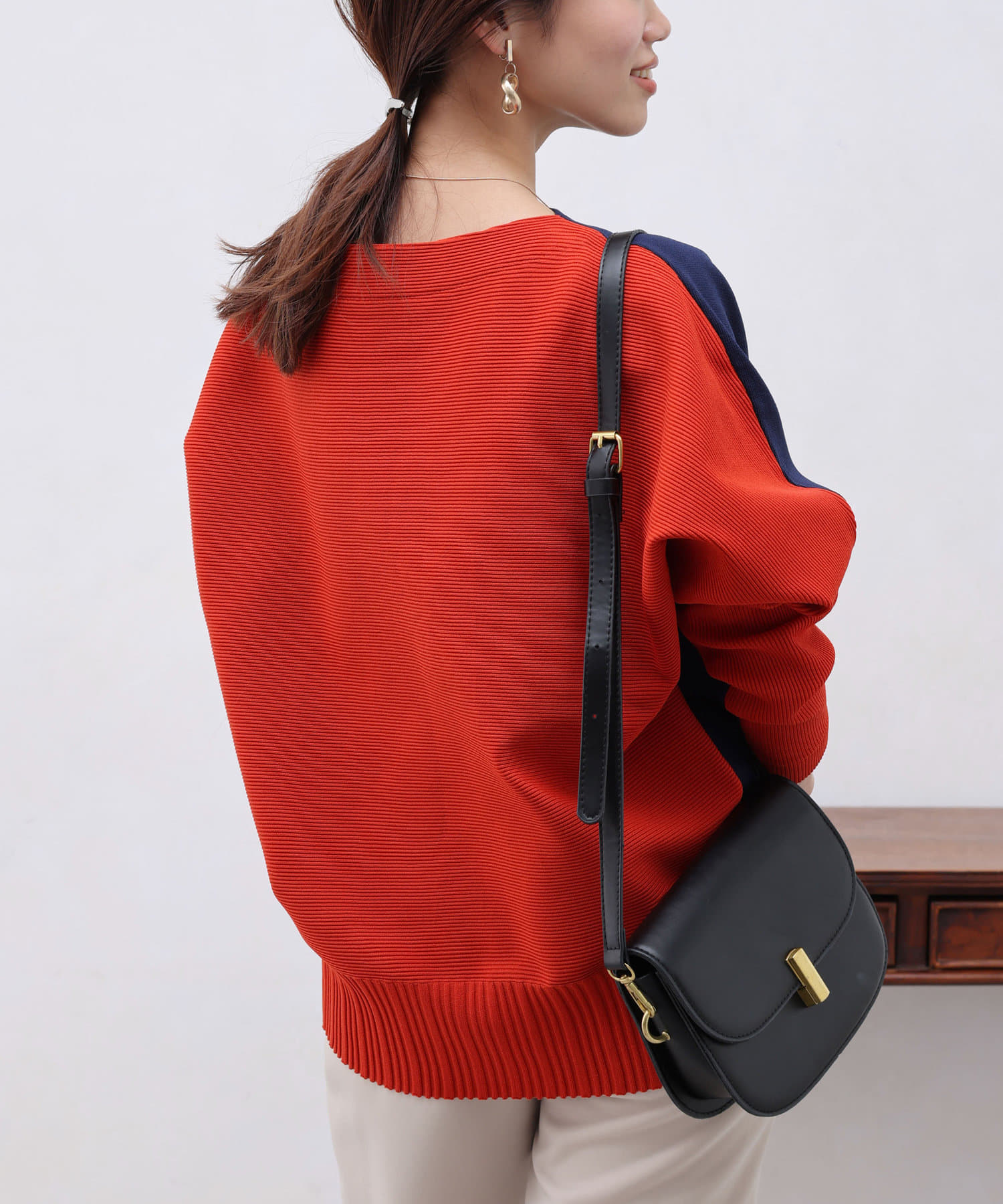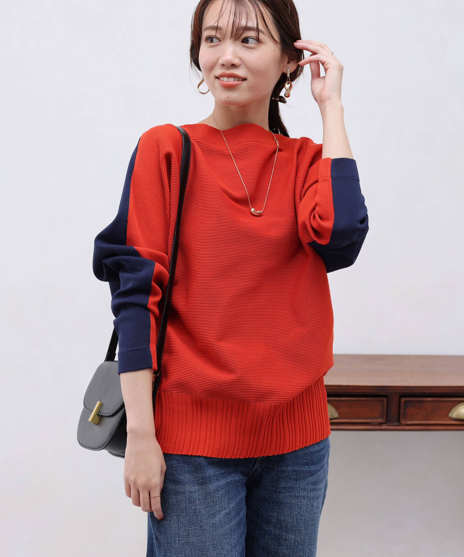 首元はボートネック。開きすぎず、デコルテ部分をきれいに見せてくれます。