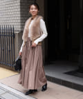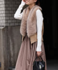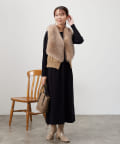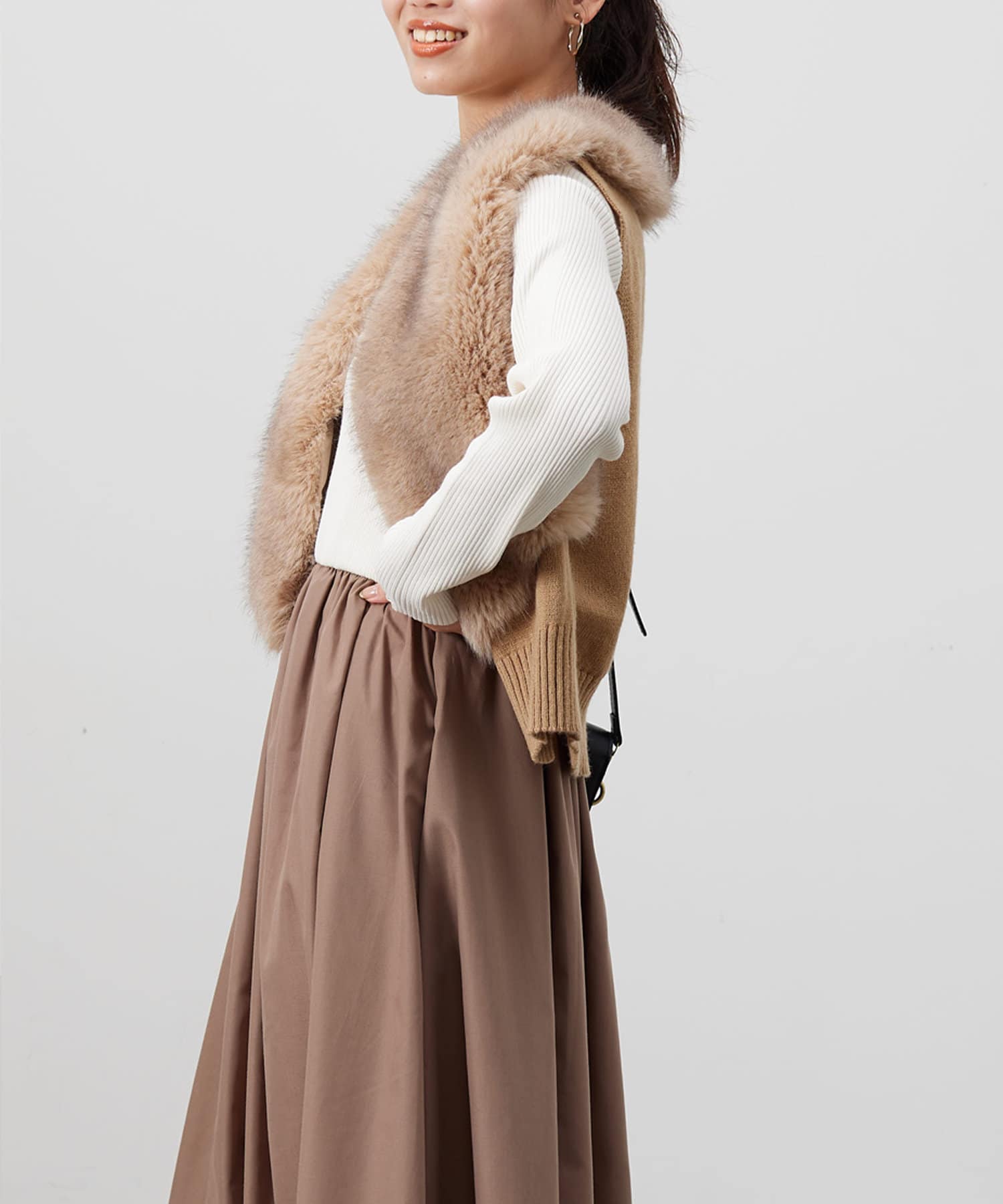 ・羽織るだけで華やかになるボリュームのあるフェイクファーを使用。