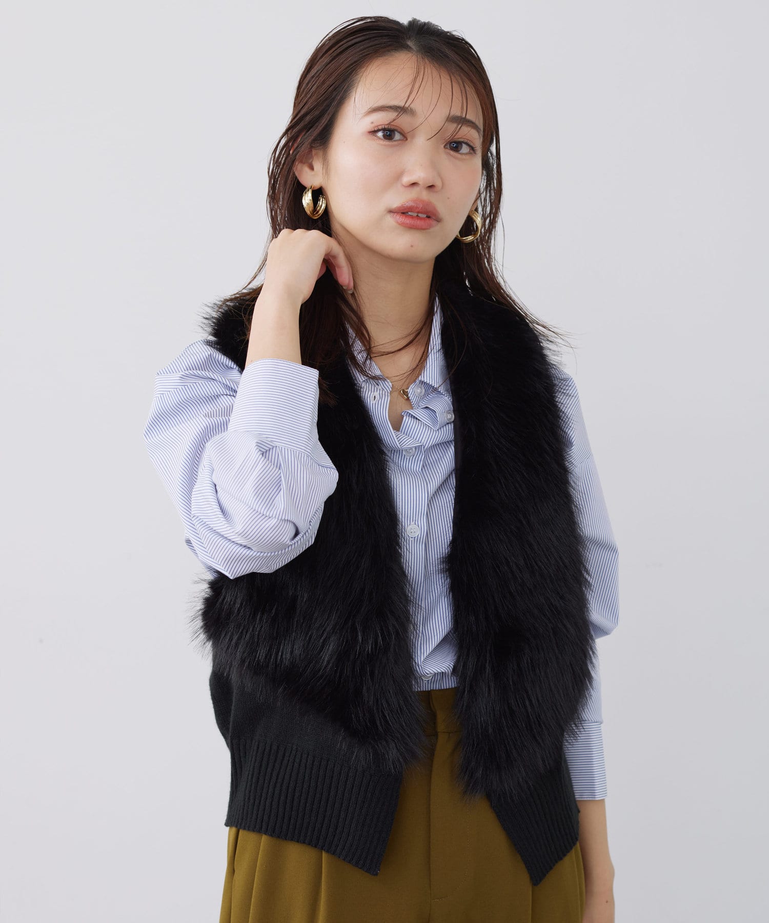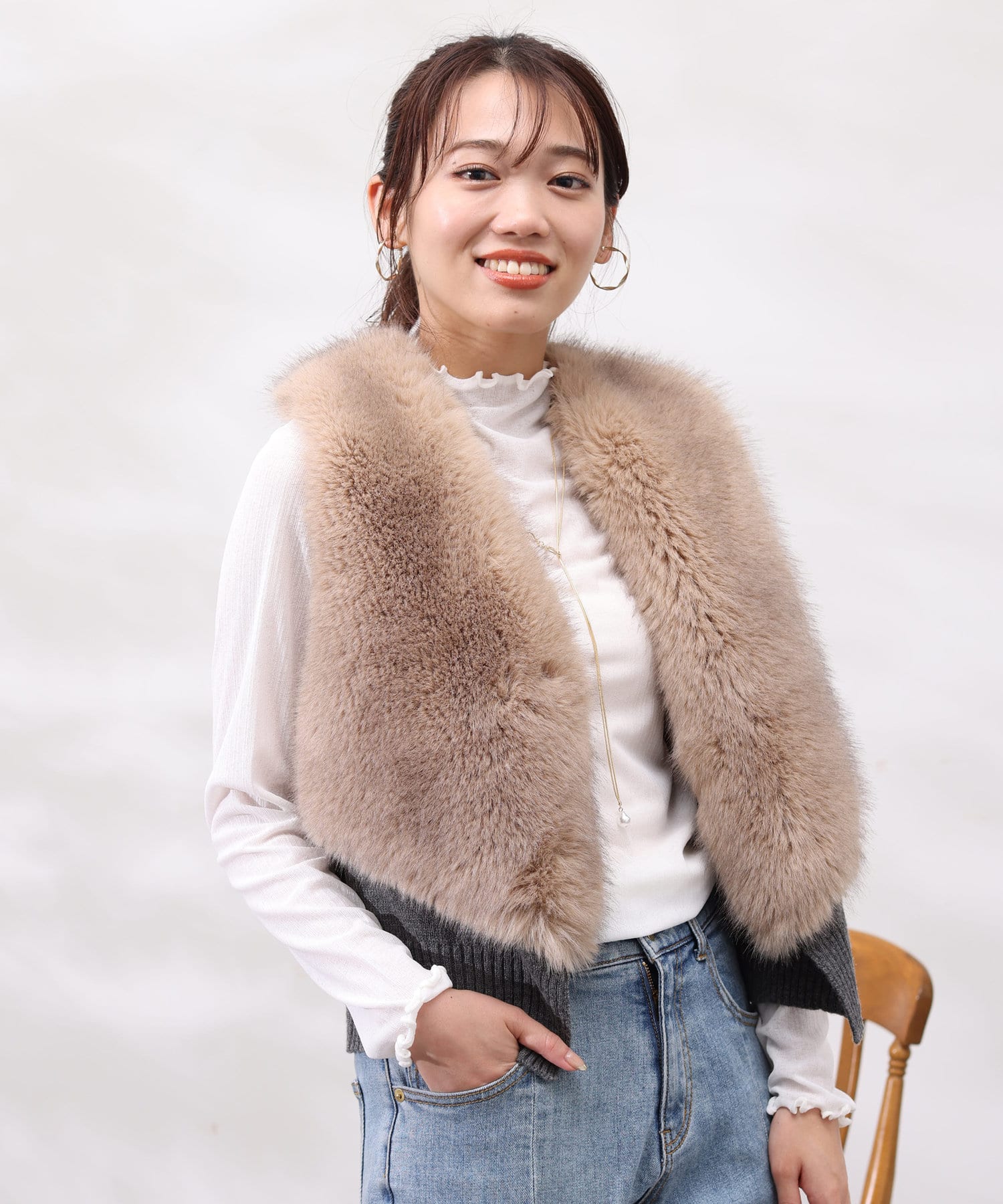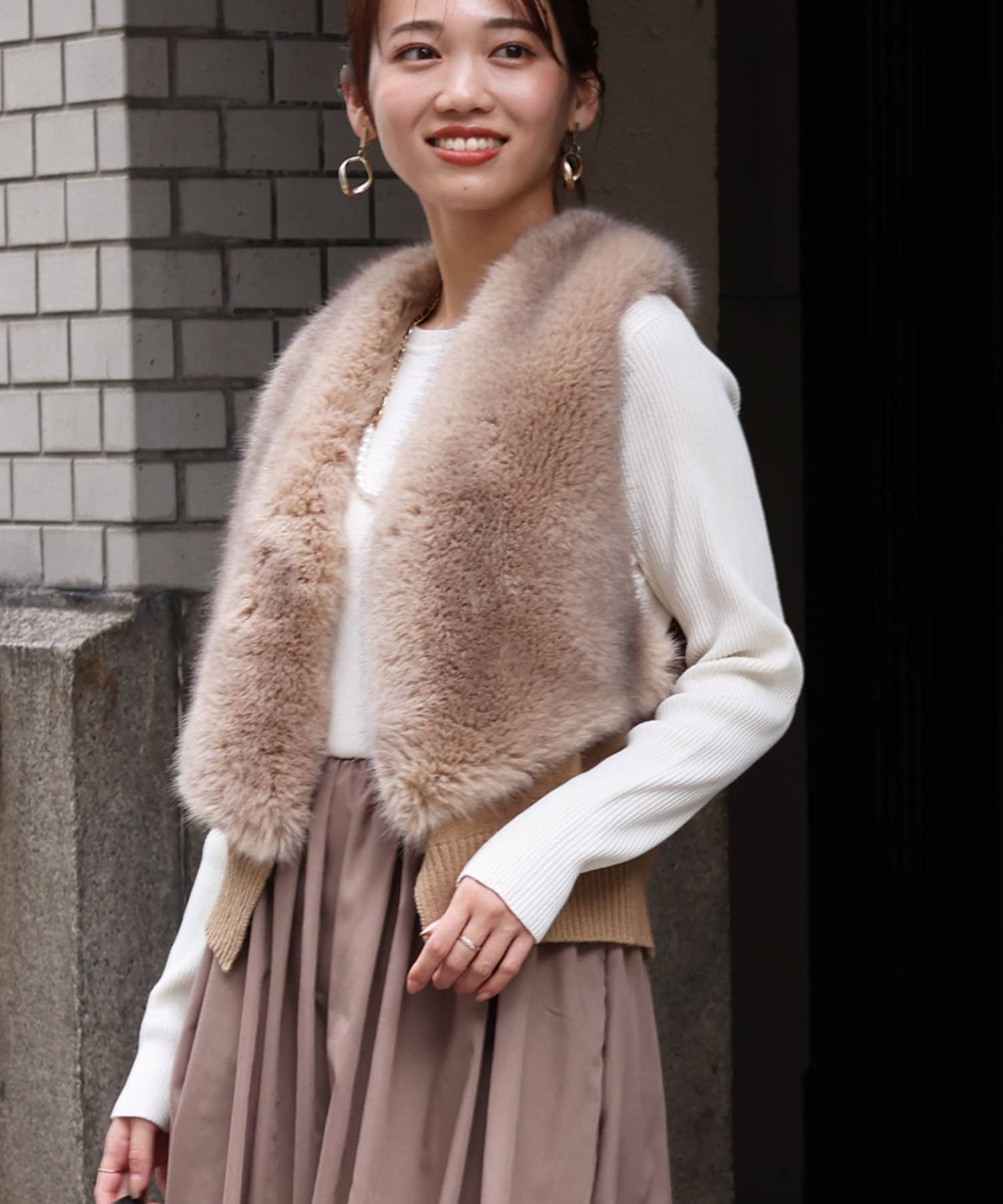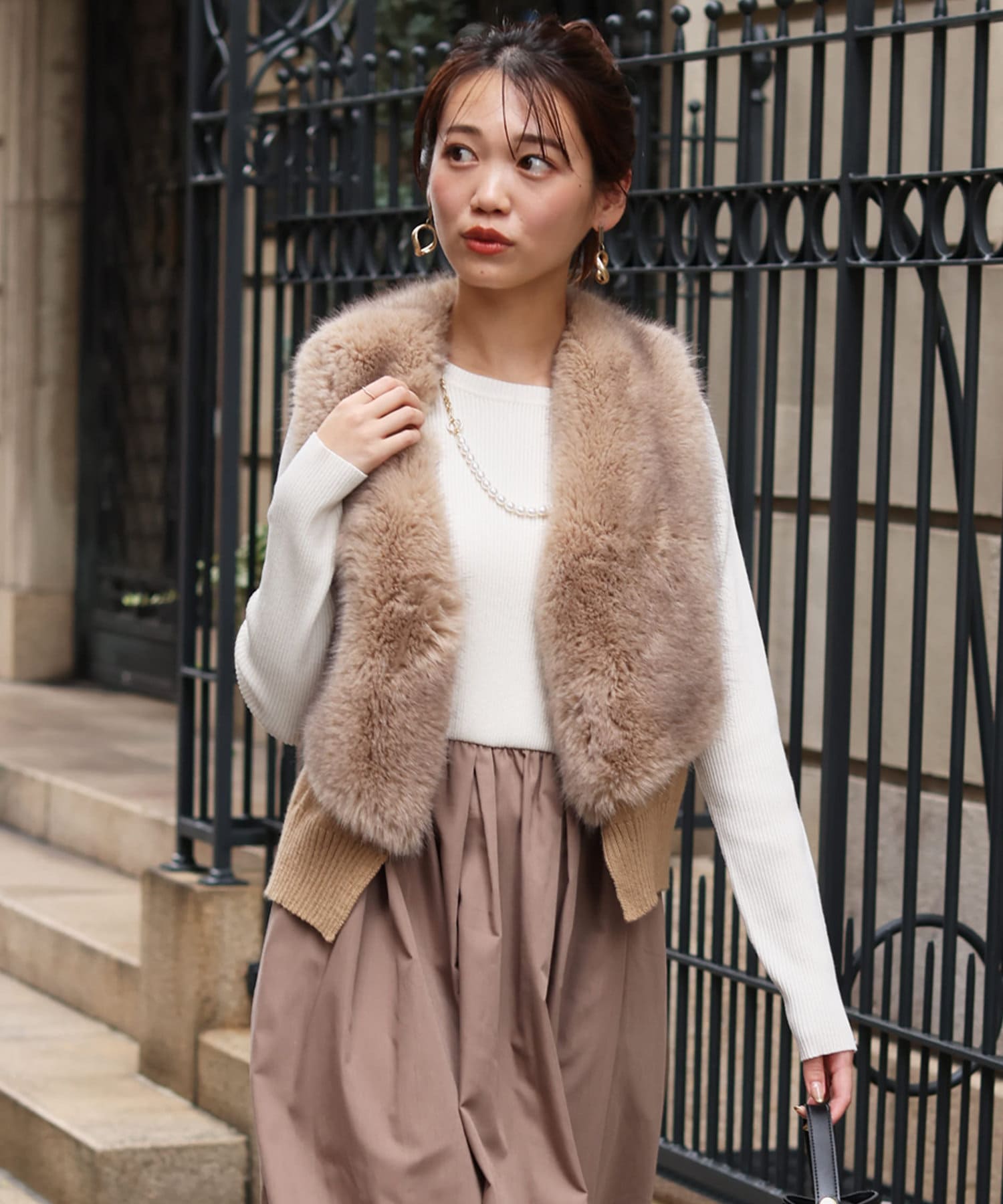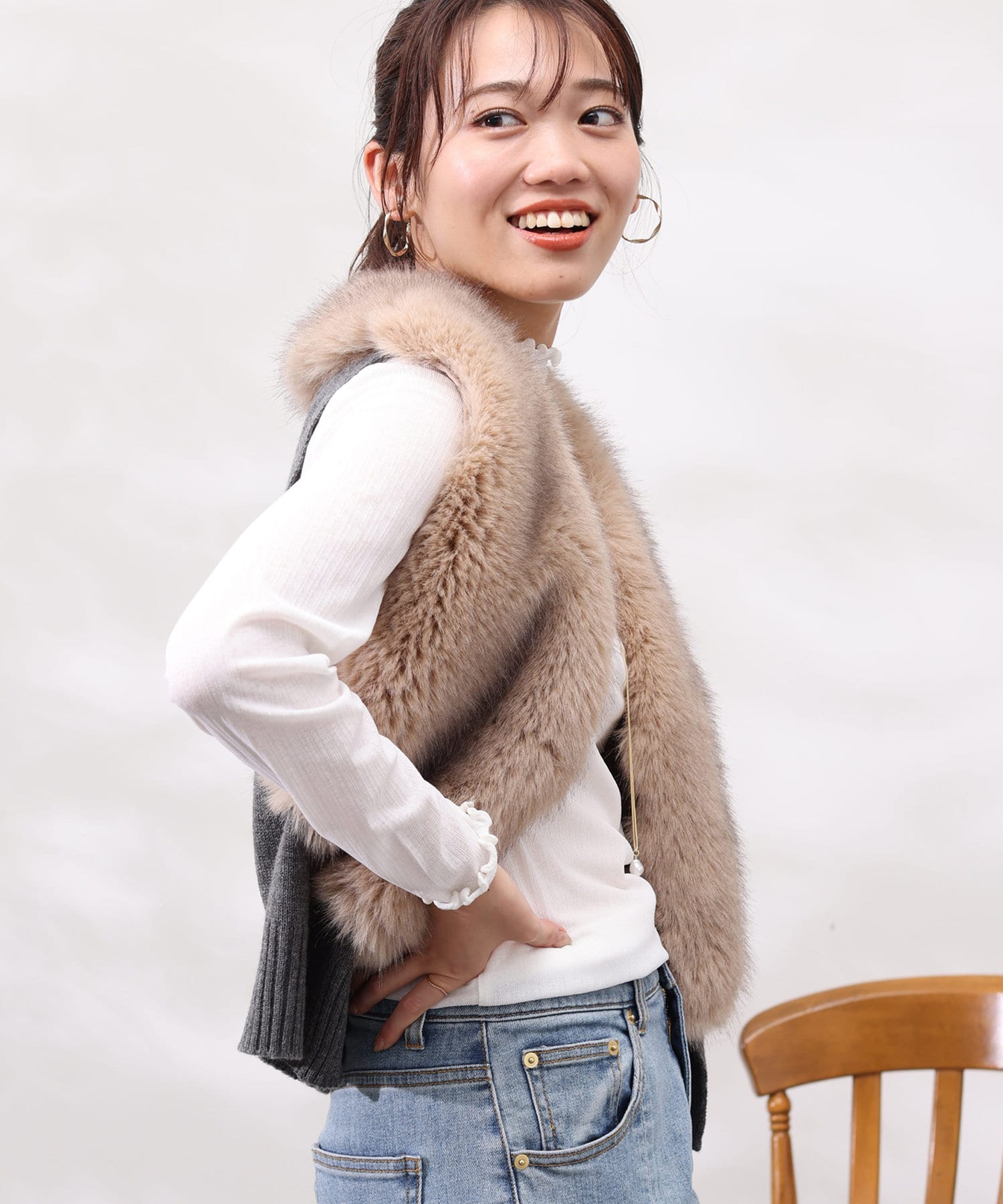 (フェイクファー部分)ポリエステル50%アクリル50%(前身裏)ポリエステル100%原産国 中国 サイズ F カテゴリ ジャケット/アウター > ベスト/ジレ タイプ レディース ギフト ラッピング 可 取り扱い - アイテムサイズ