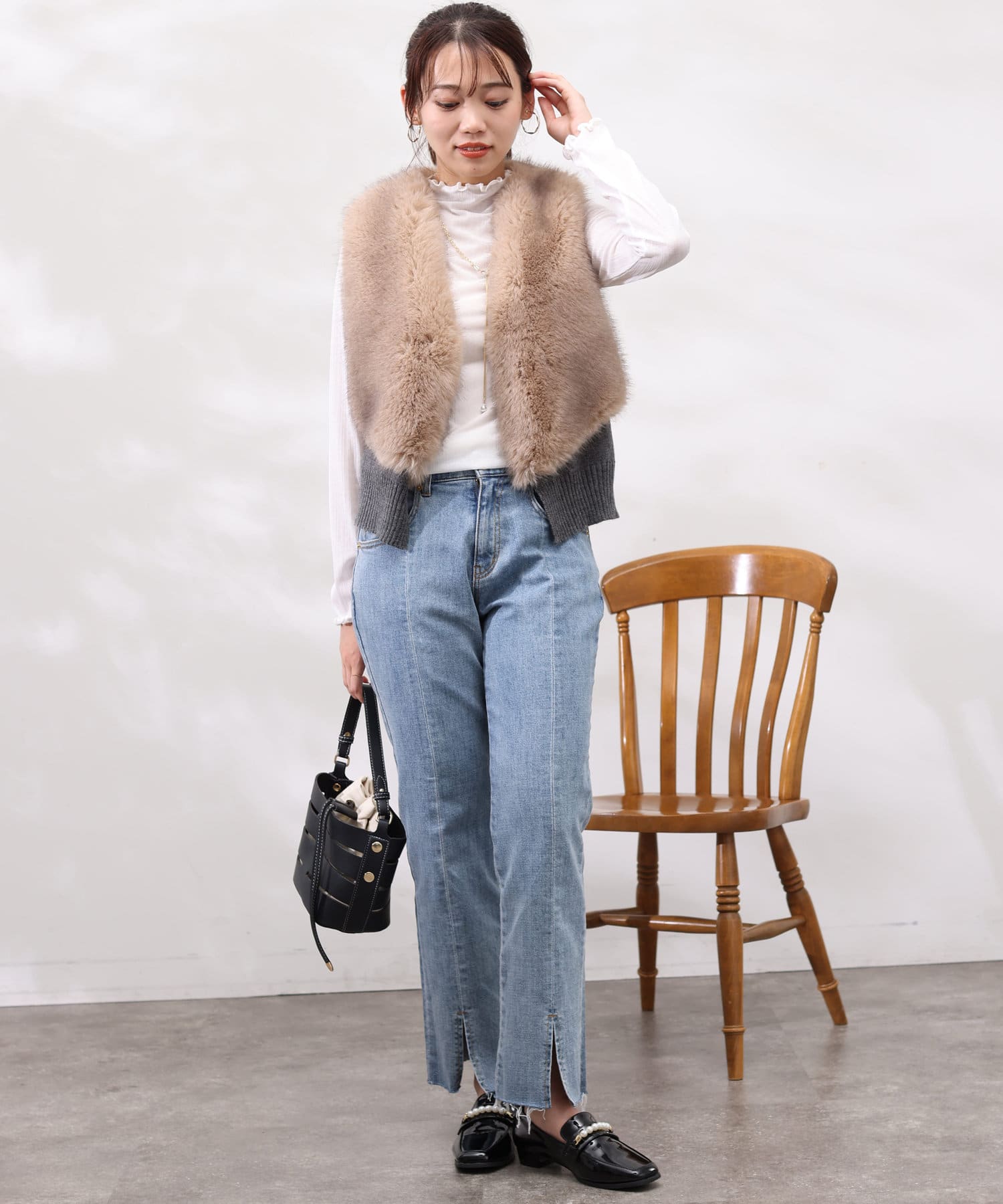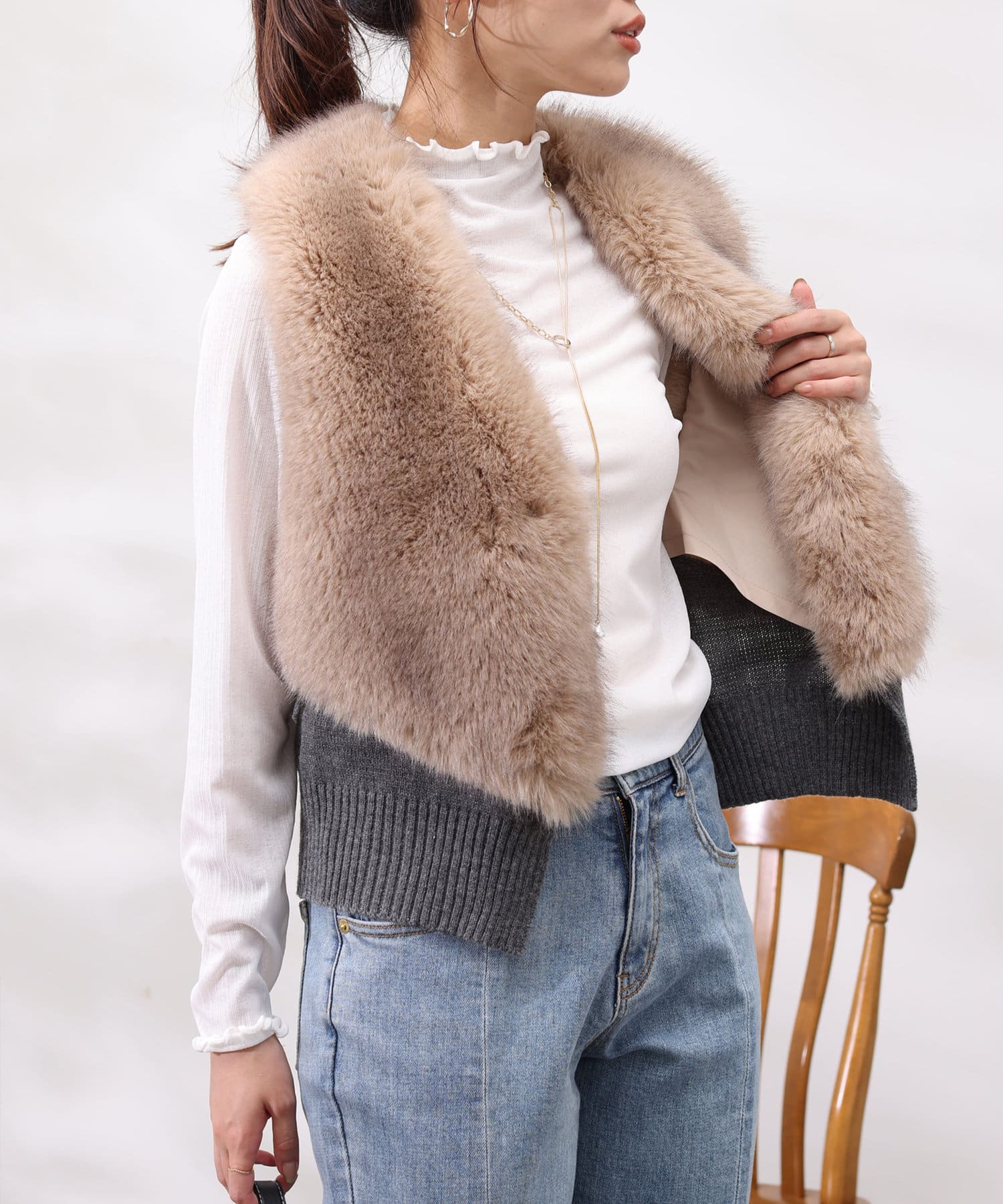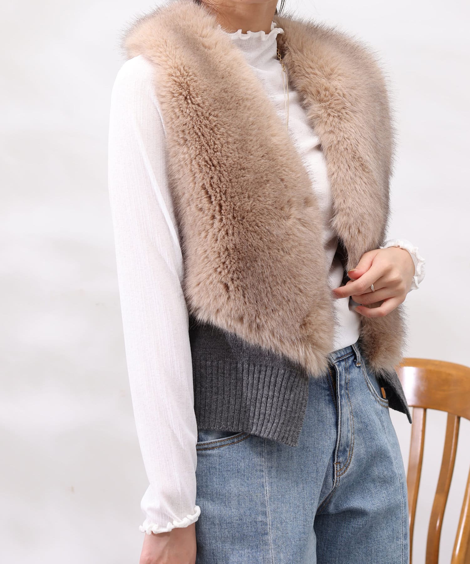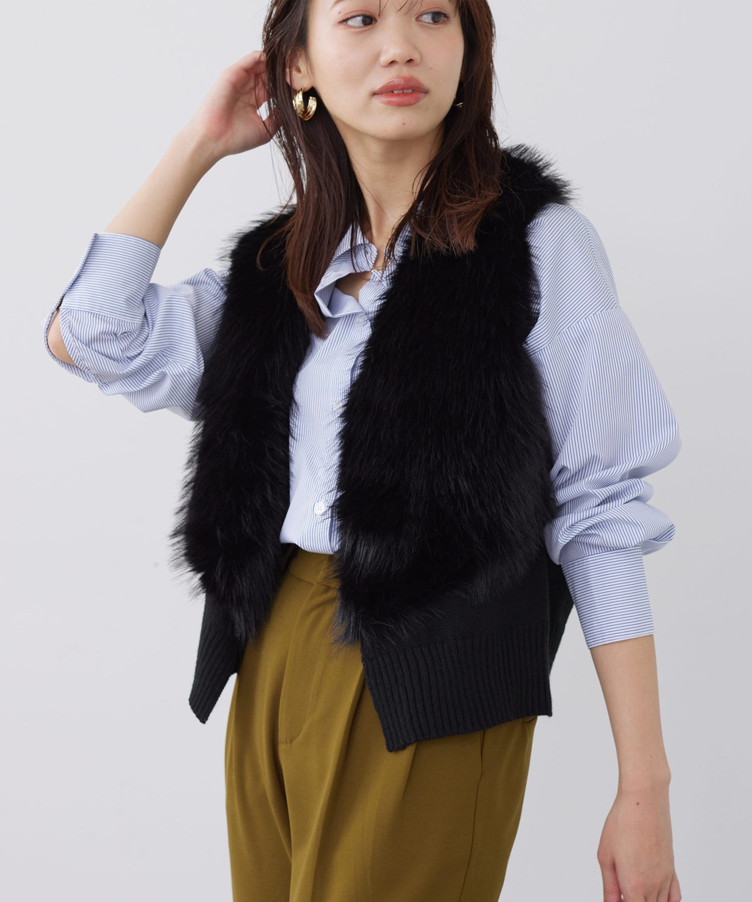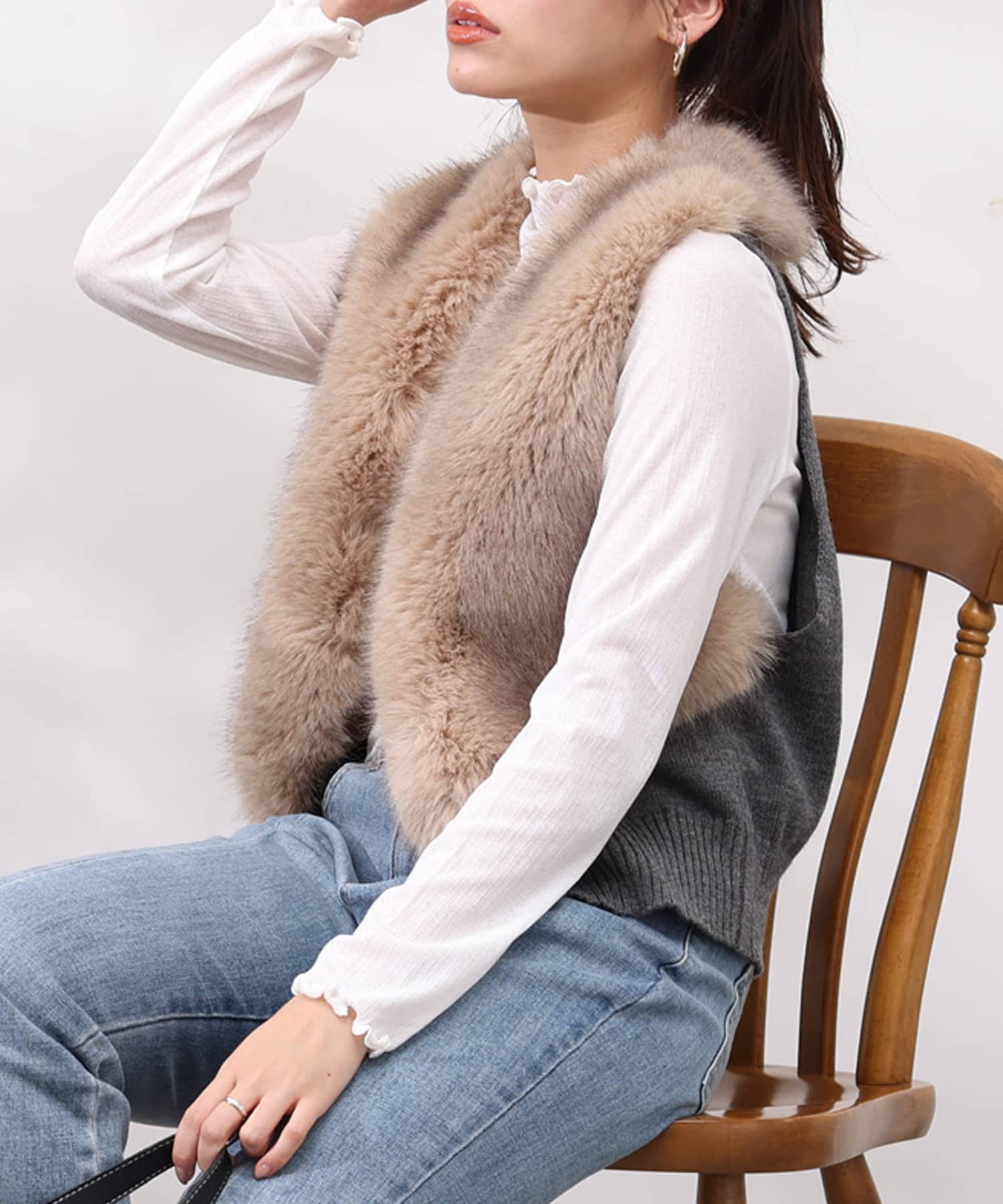 (フェイクファー部分)ポリエステル50%アクリル50%(前身裏)ポリエステル100%原産国 中国 サイズ F カテゴリ ジャケット/アウター > ベスト/ジレ タイプ レディース ギフト ラッピング 可 取り扱い - アイテムサイズ