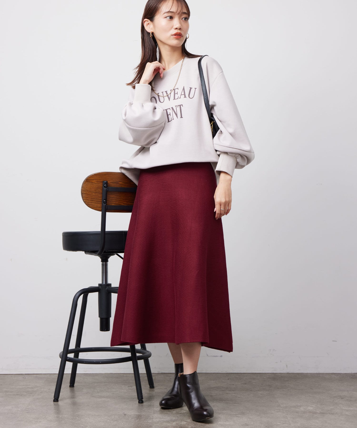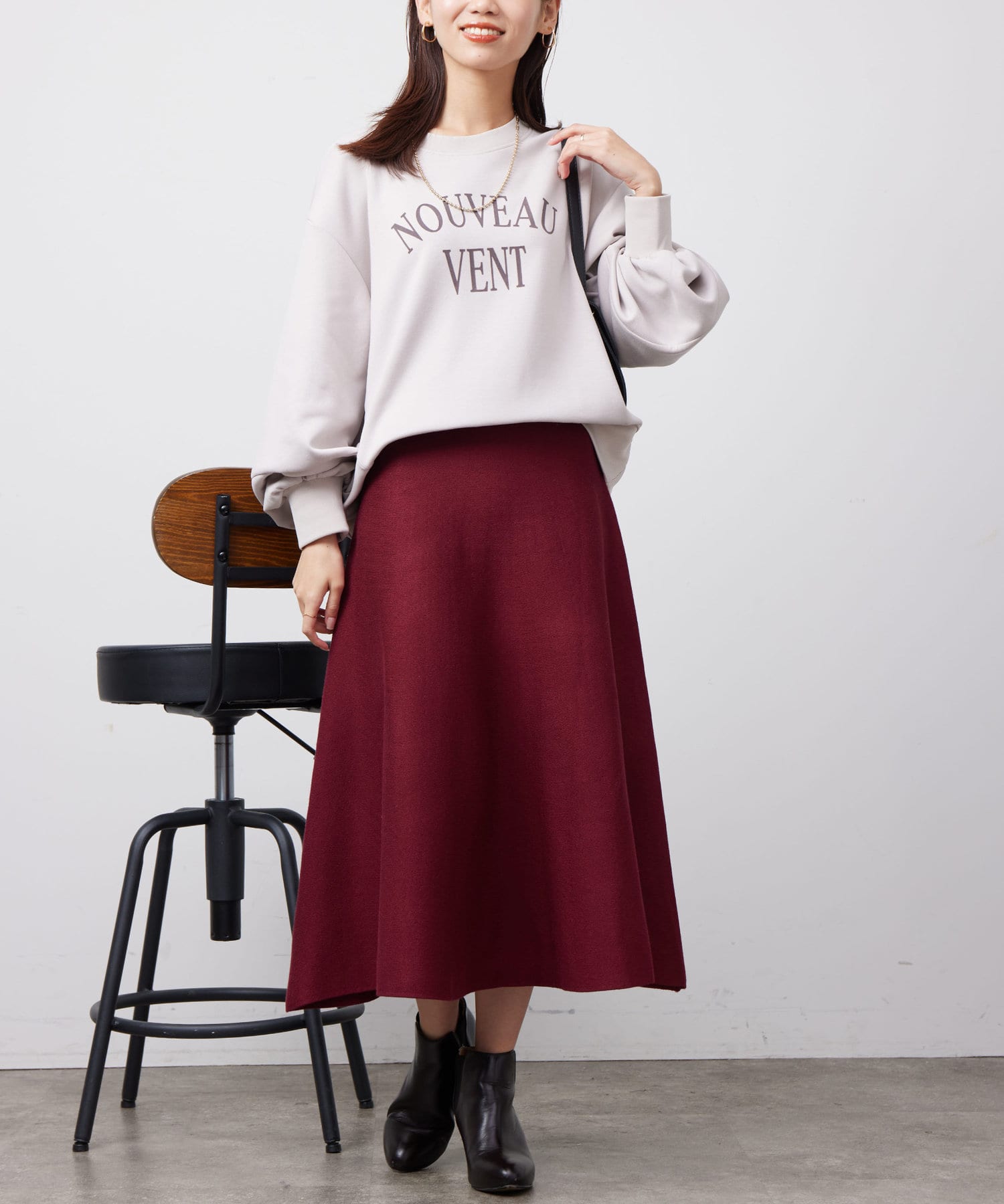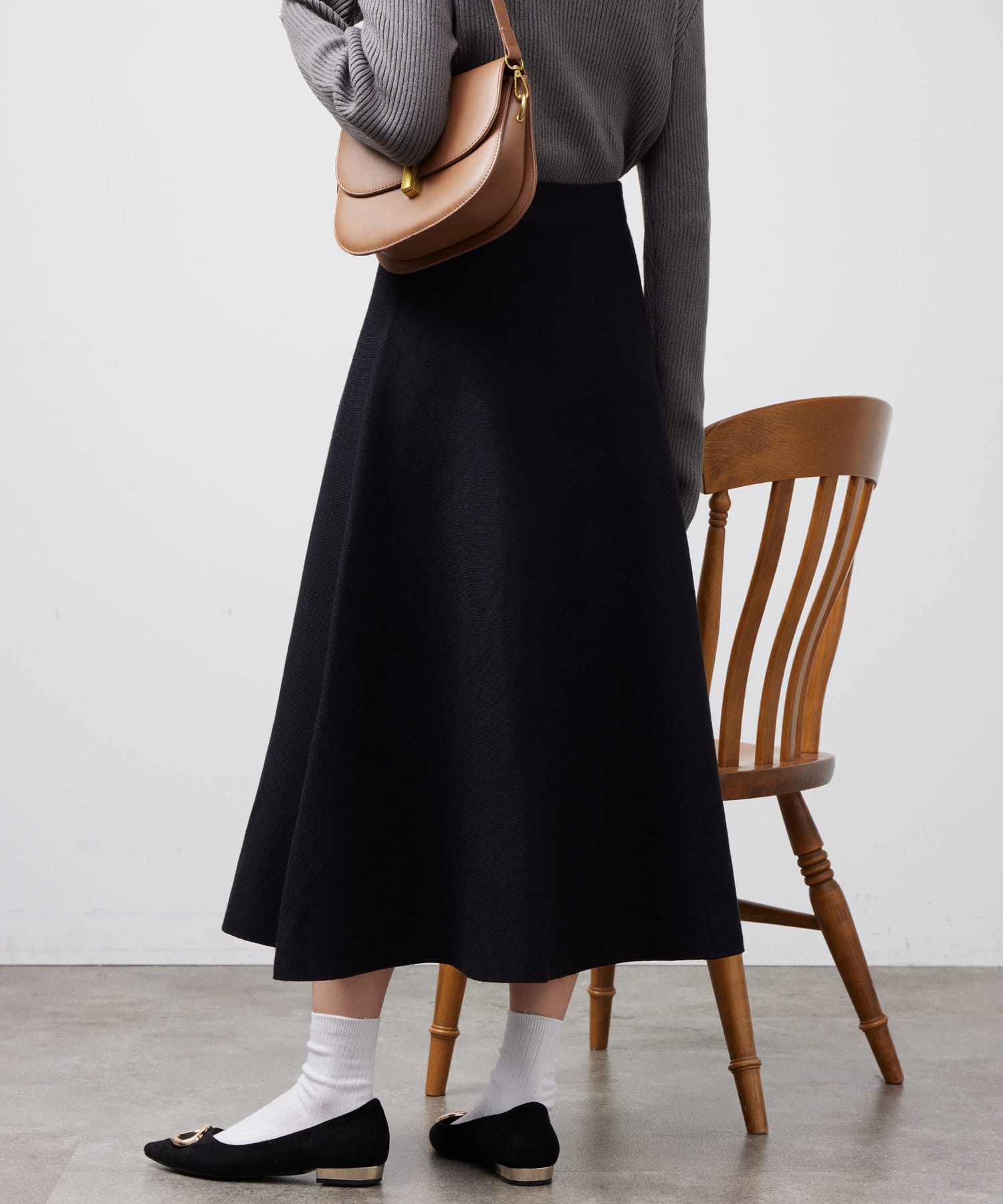 お出掛けからデイリーまで、幅広いシーンにマッチするニットフレアスカート