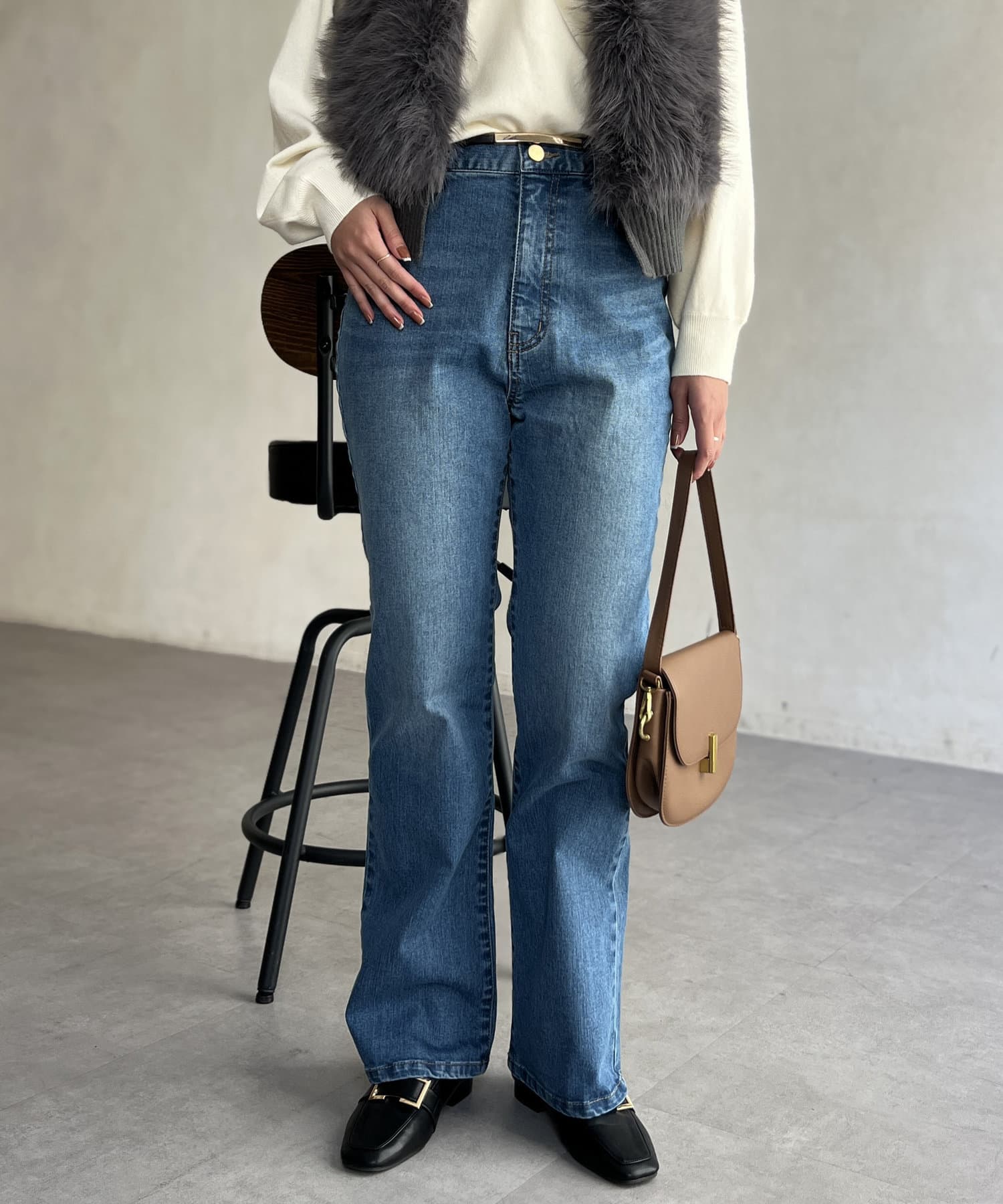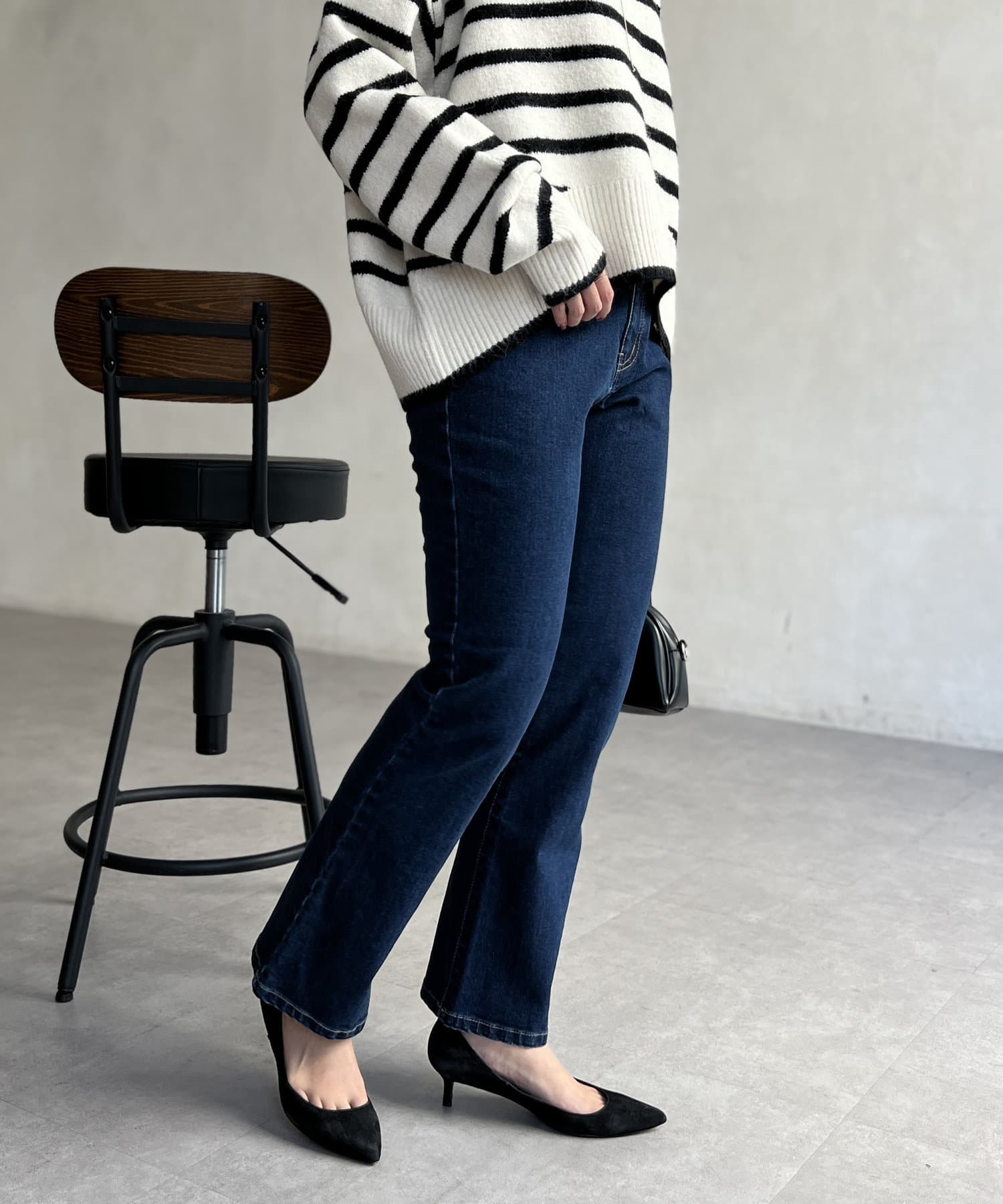 足元もパンプス、スニーカーまで幅広く活躍する万能デニムです。