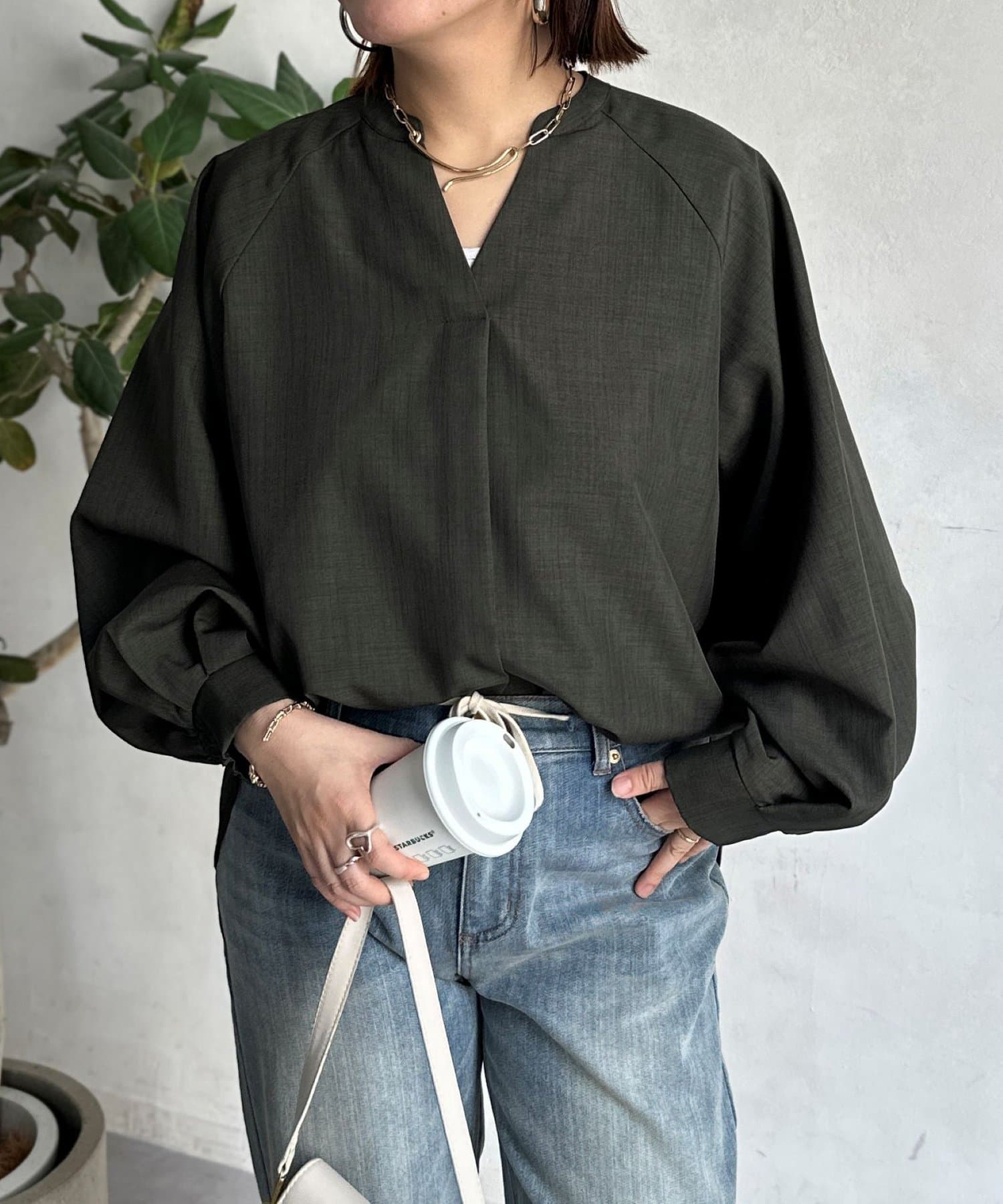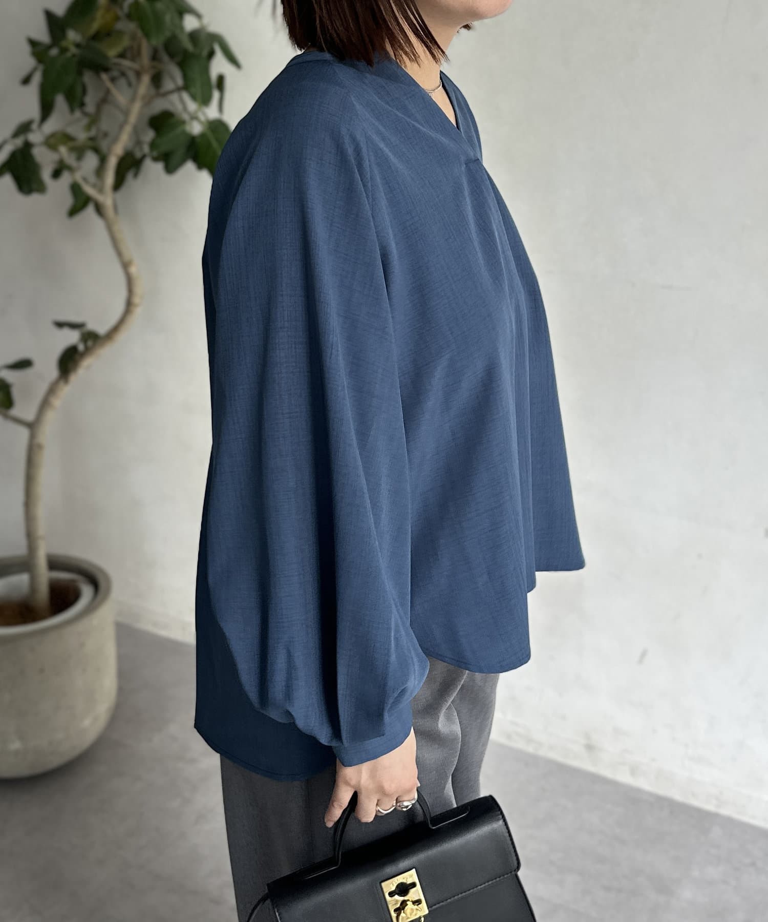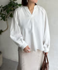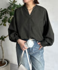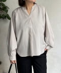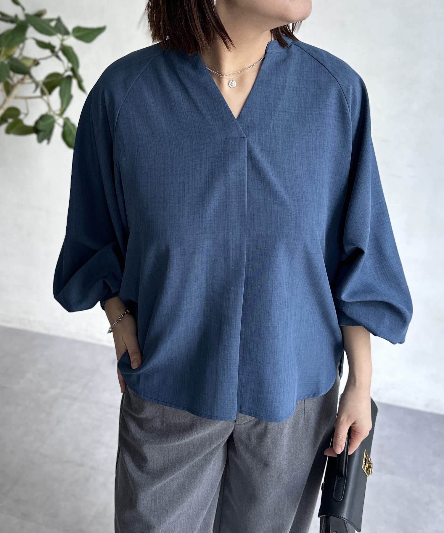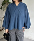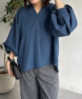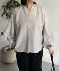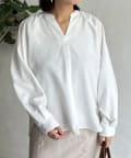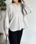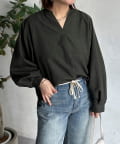 リネンライクスリットネックブラウス