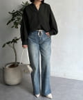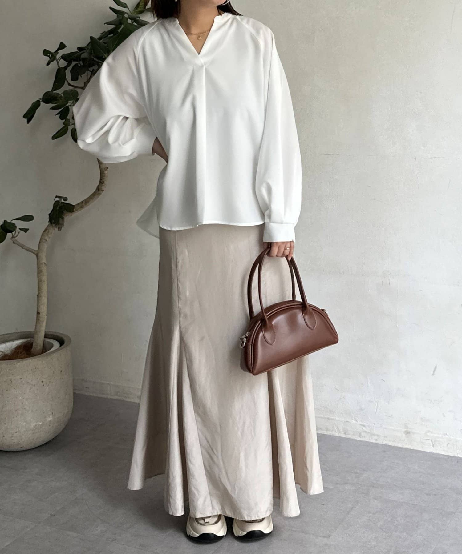 首元はスリットネックですっきりとした印象に。