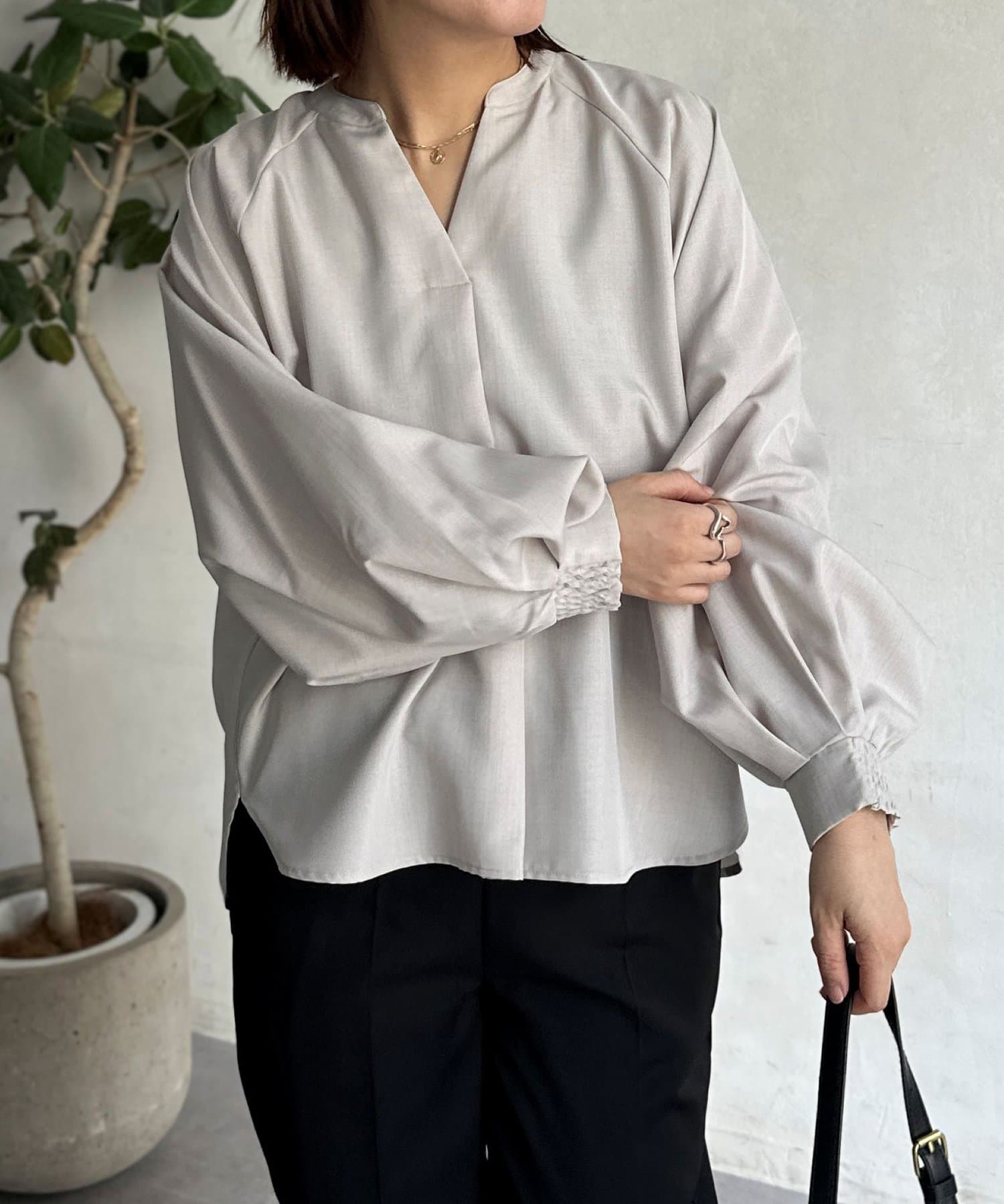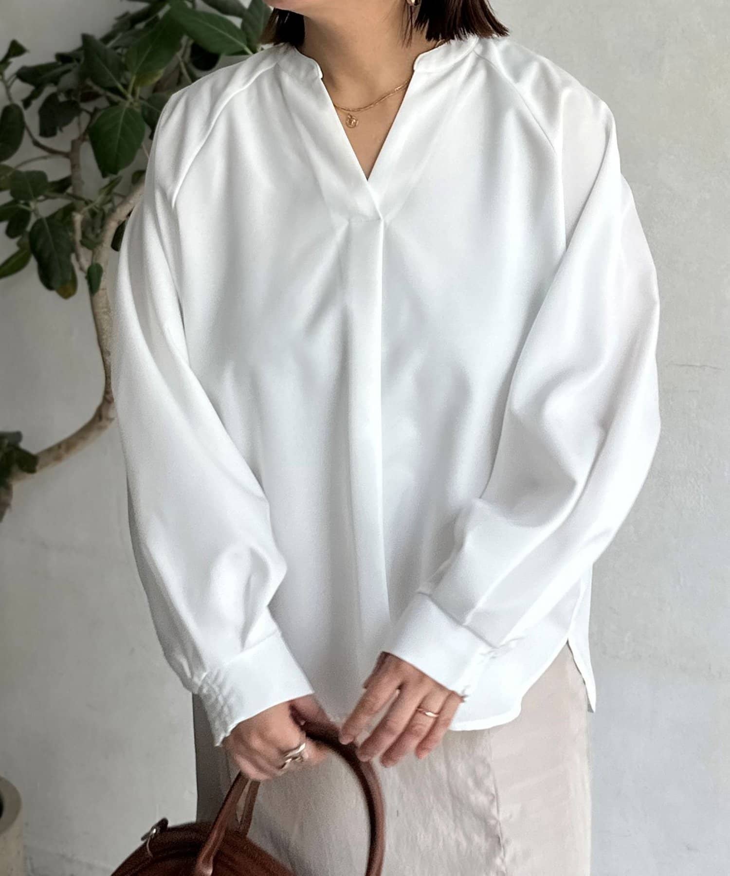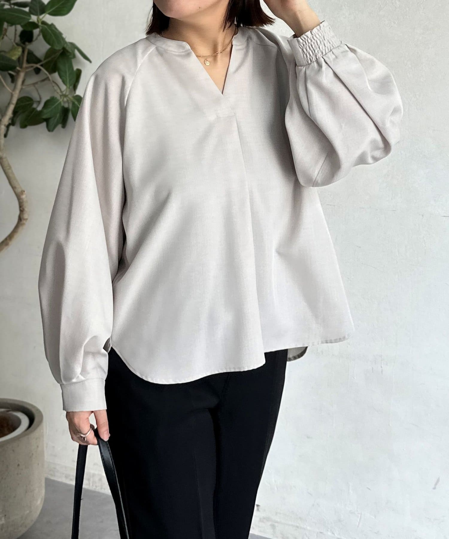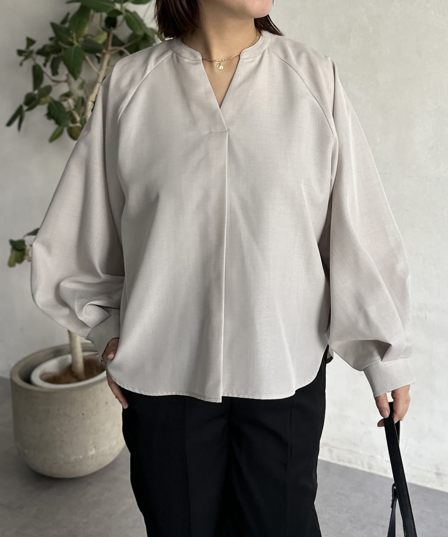 抜け感のあるスリットネックで上品で華やかになるブラウス