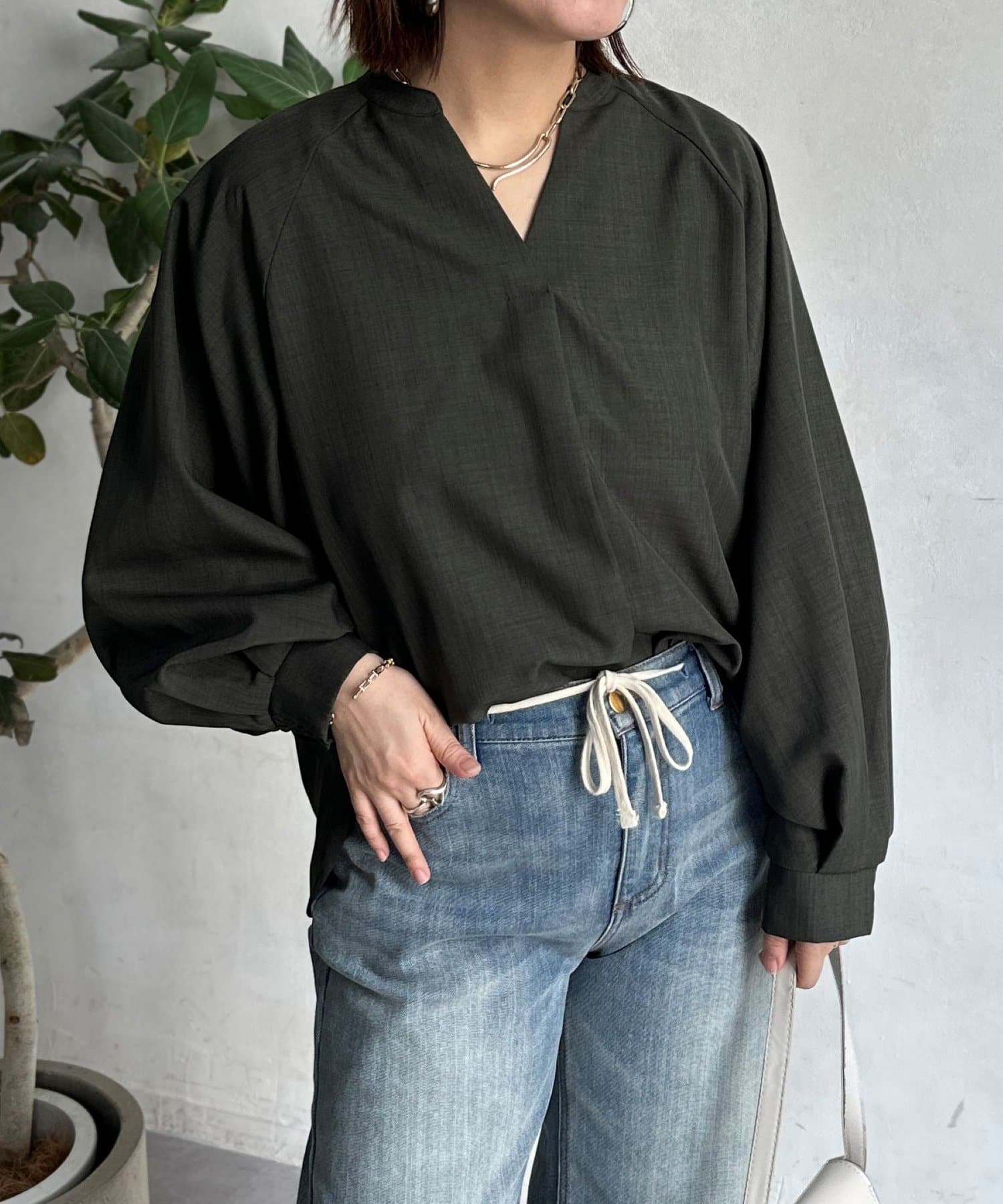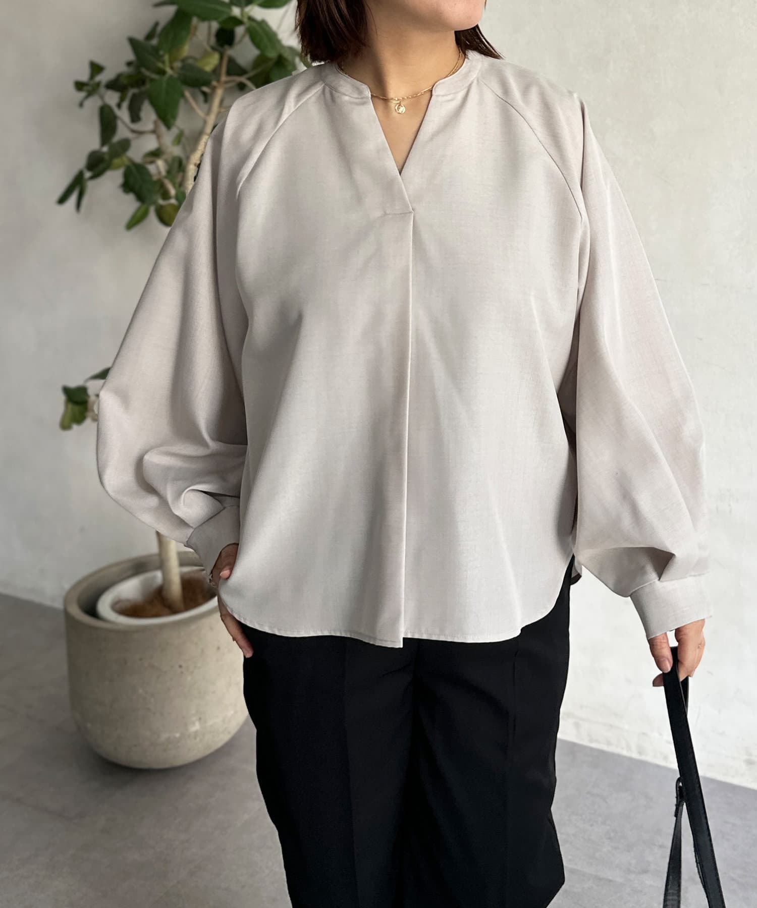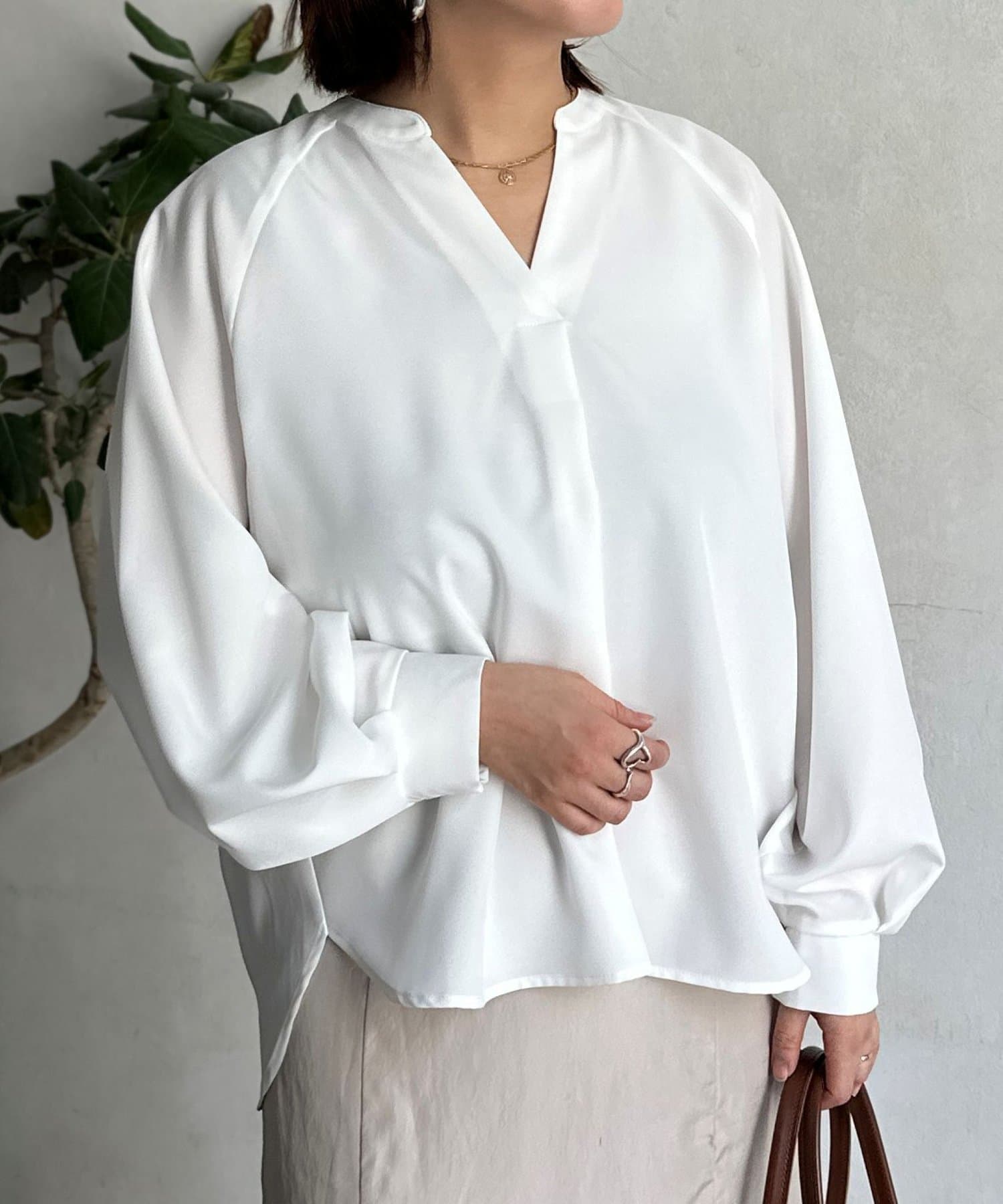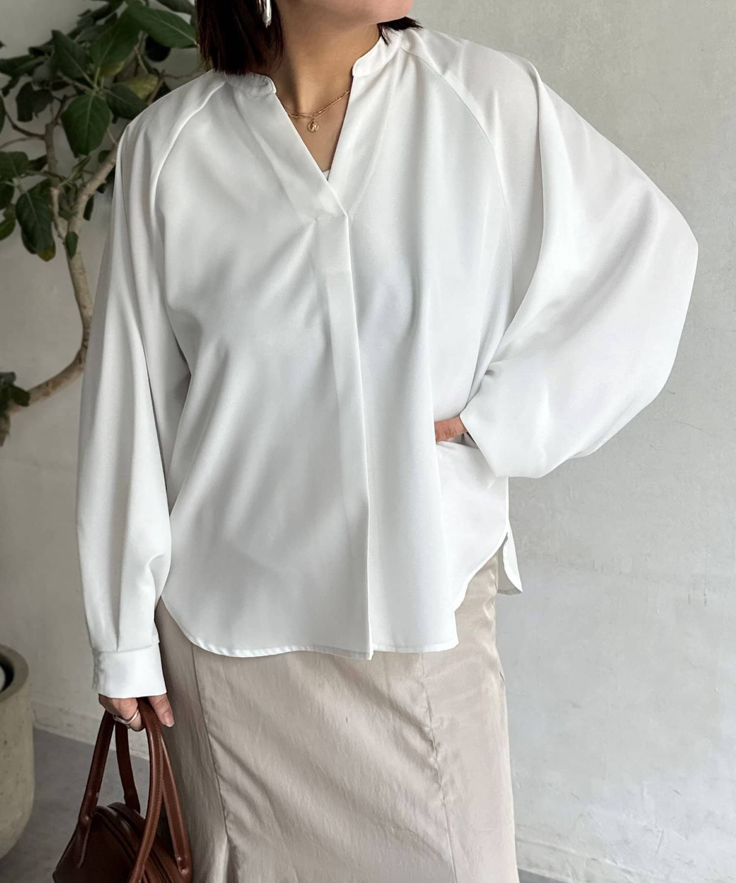 抜け感のあるスリットネックで上品で華やかになるブラウス