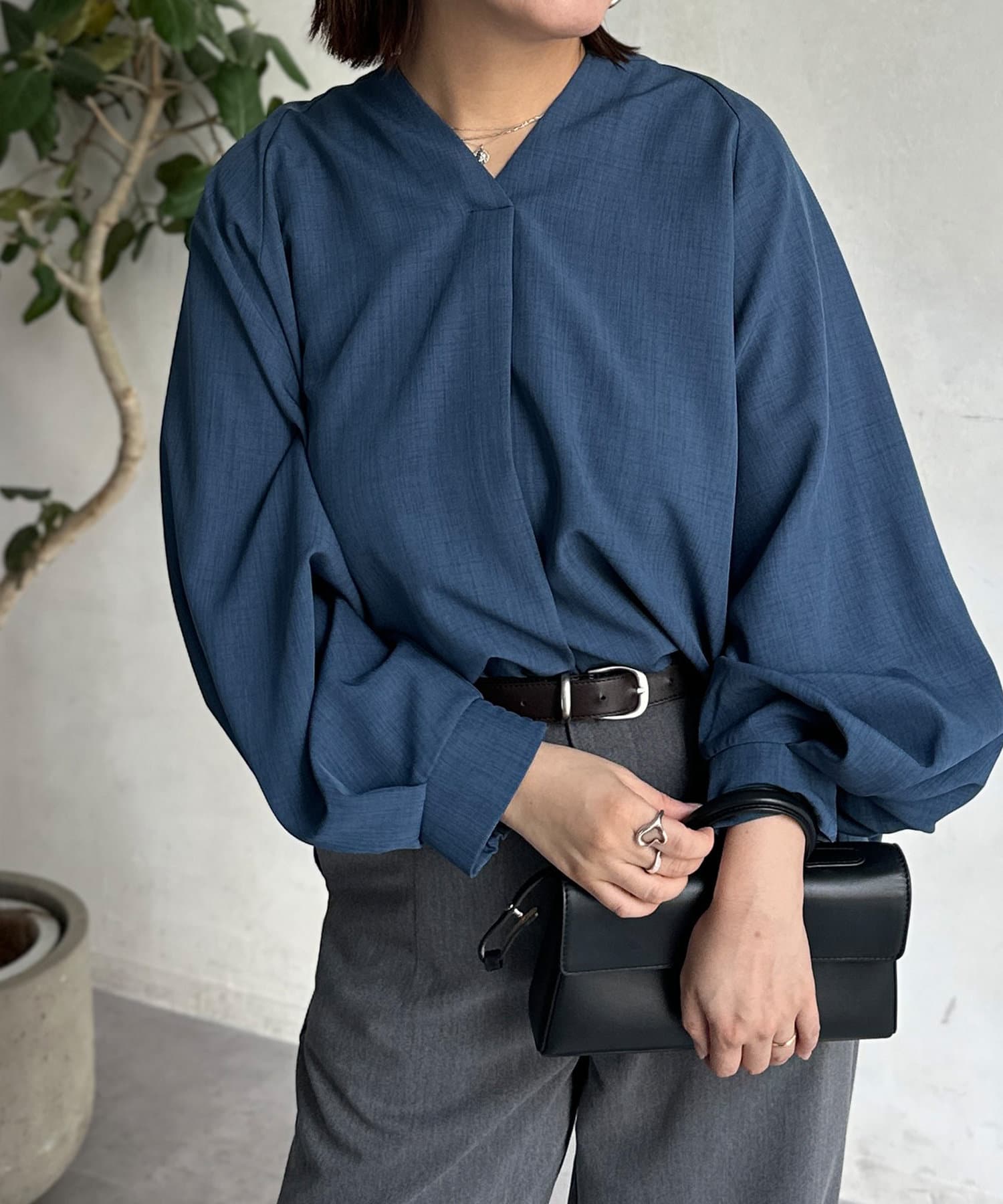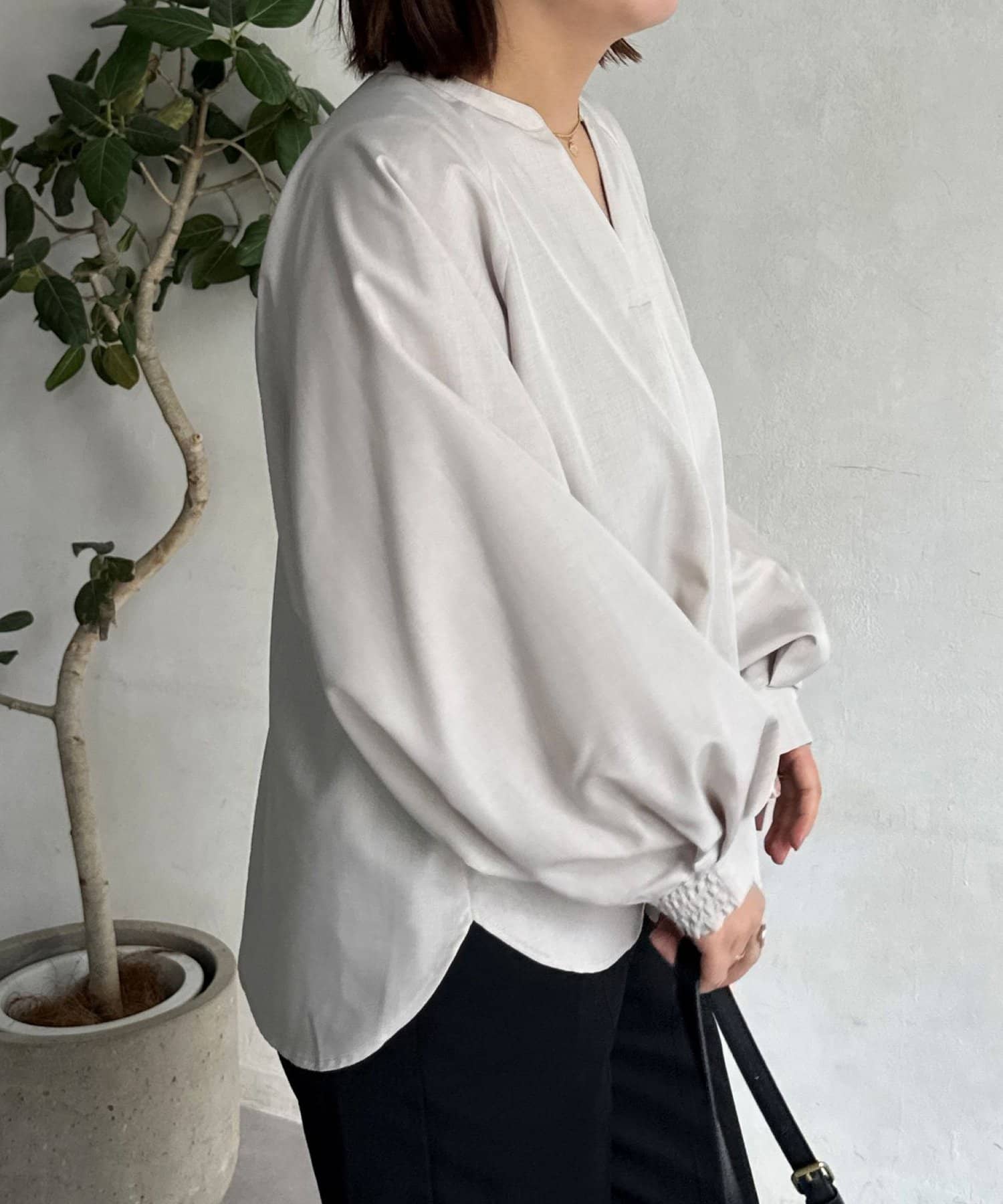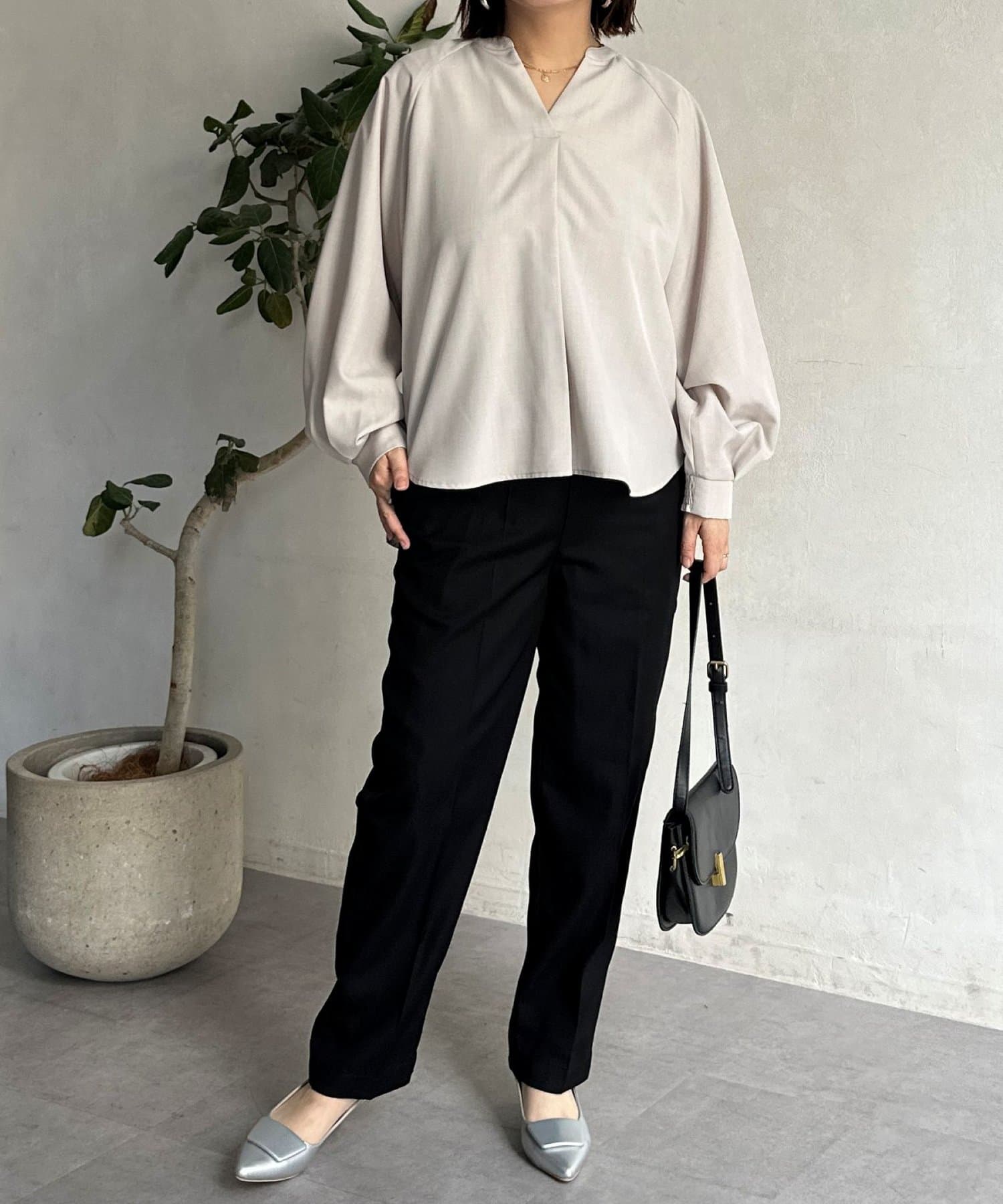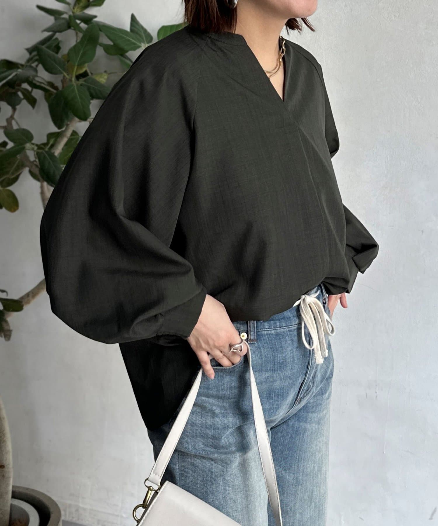 抜け感のあるスリットネックで上品で華やかになるブラウス