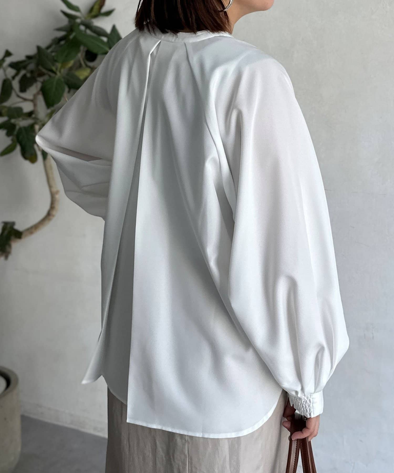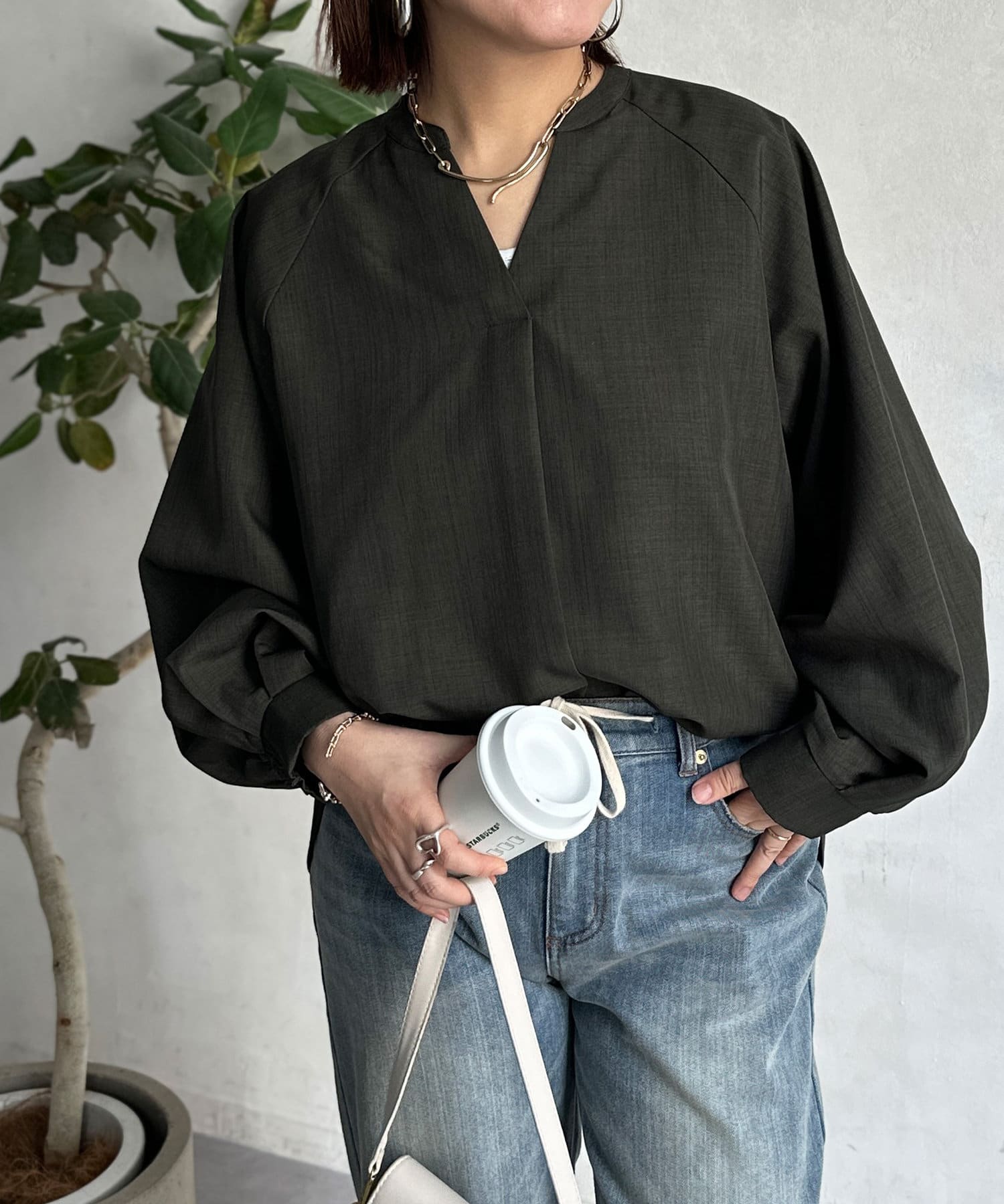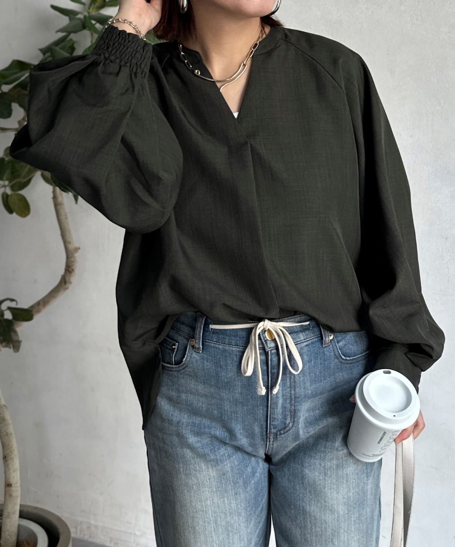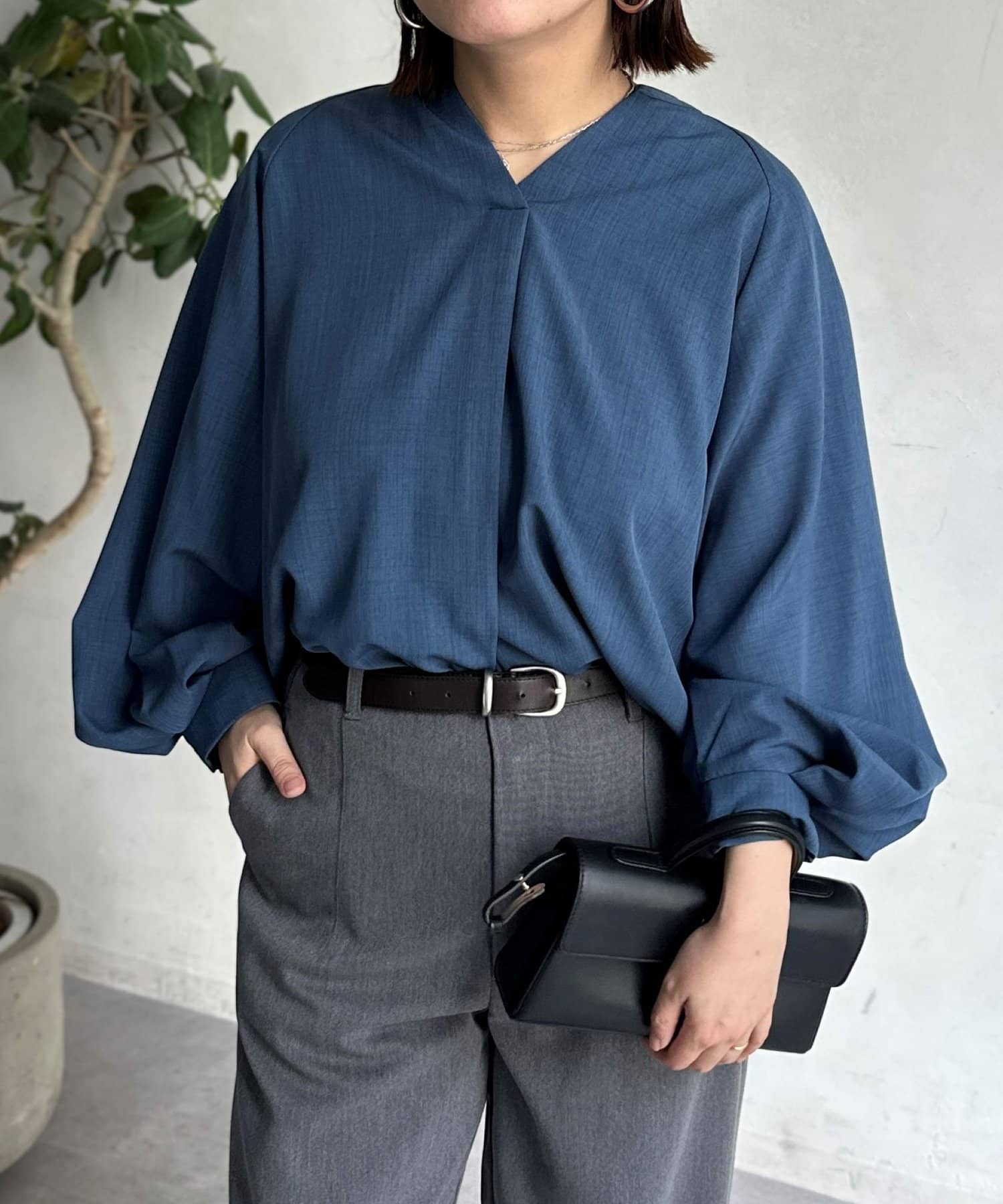 抜け感のあるスリットネックで上品で華やかになるブラウス