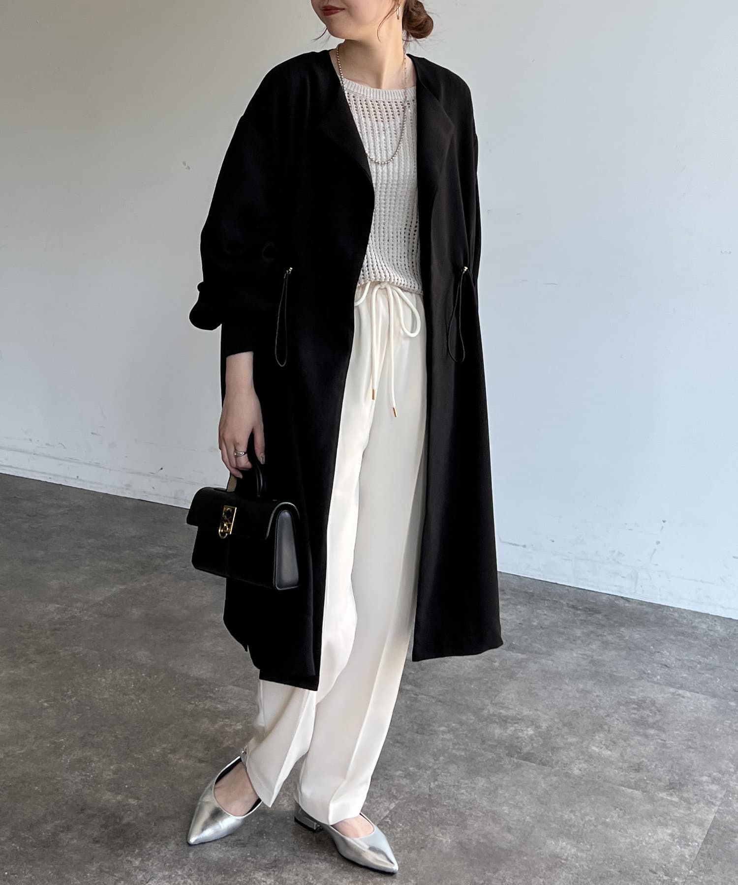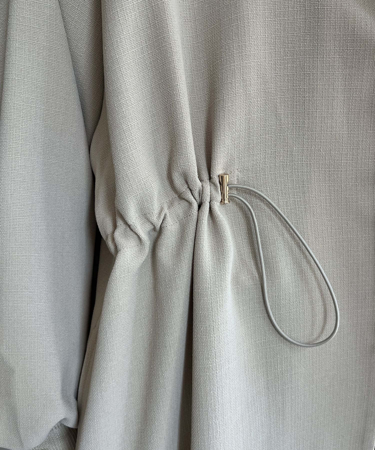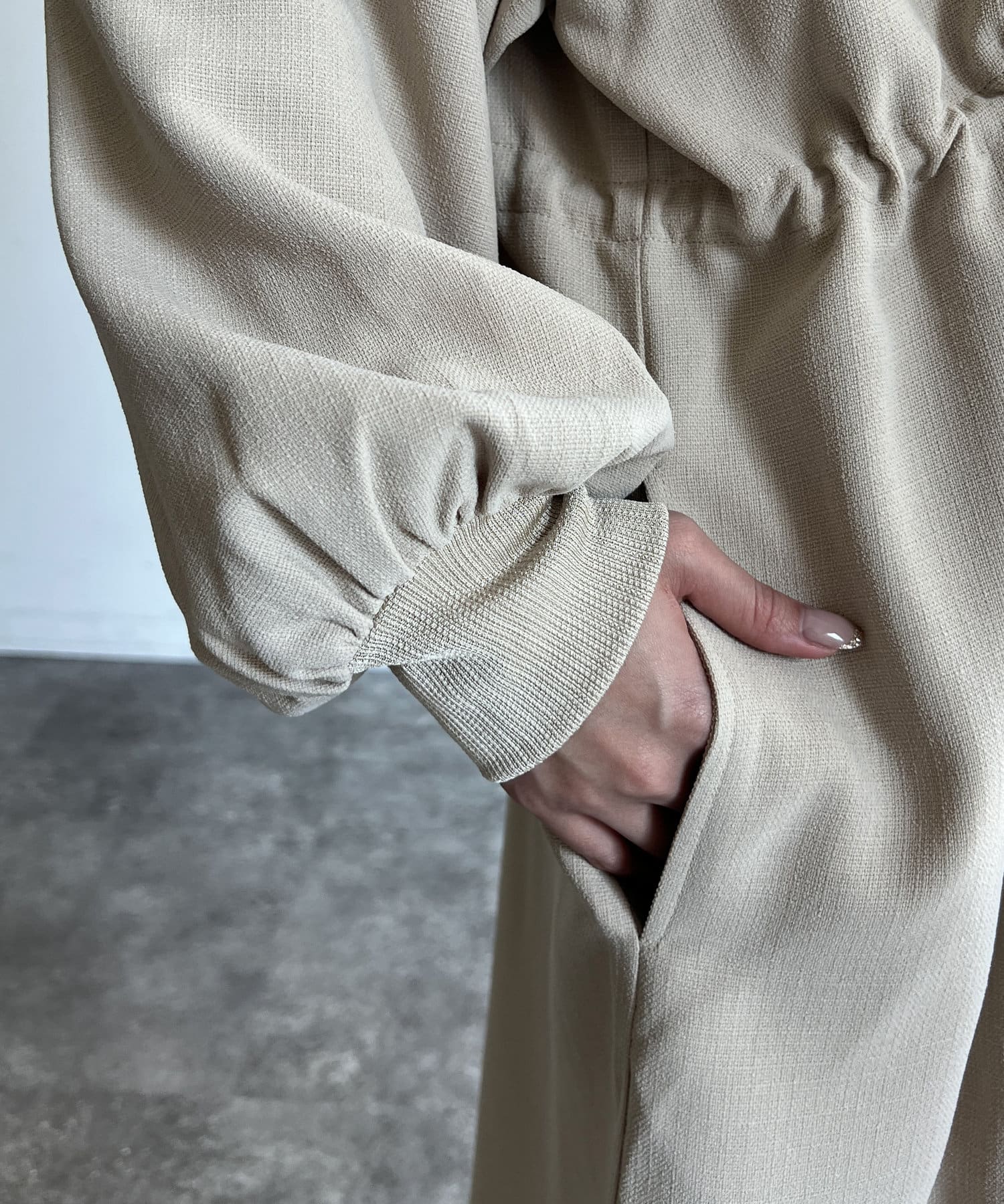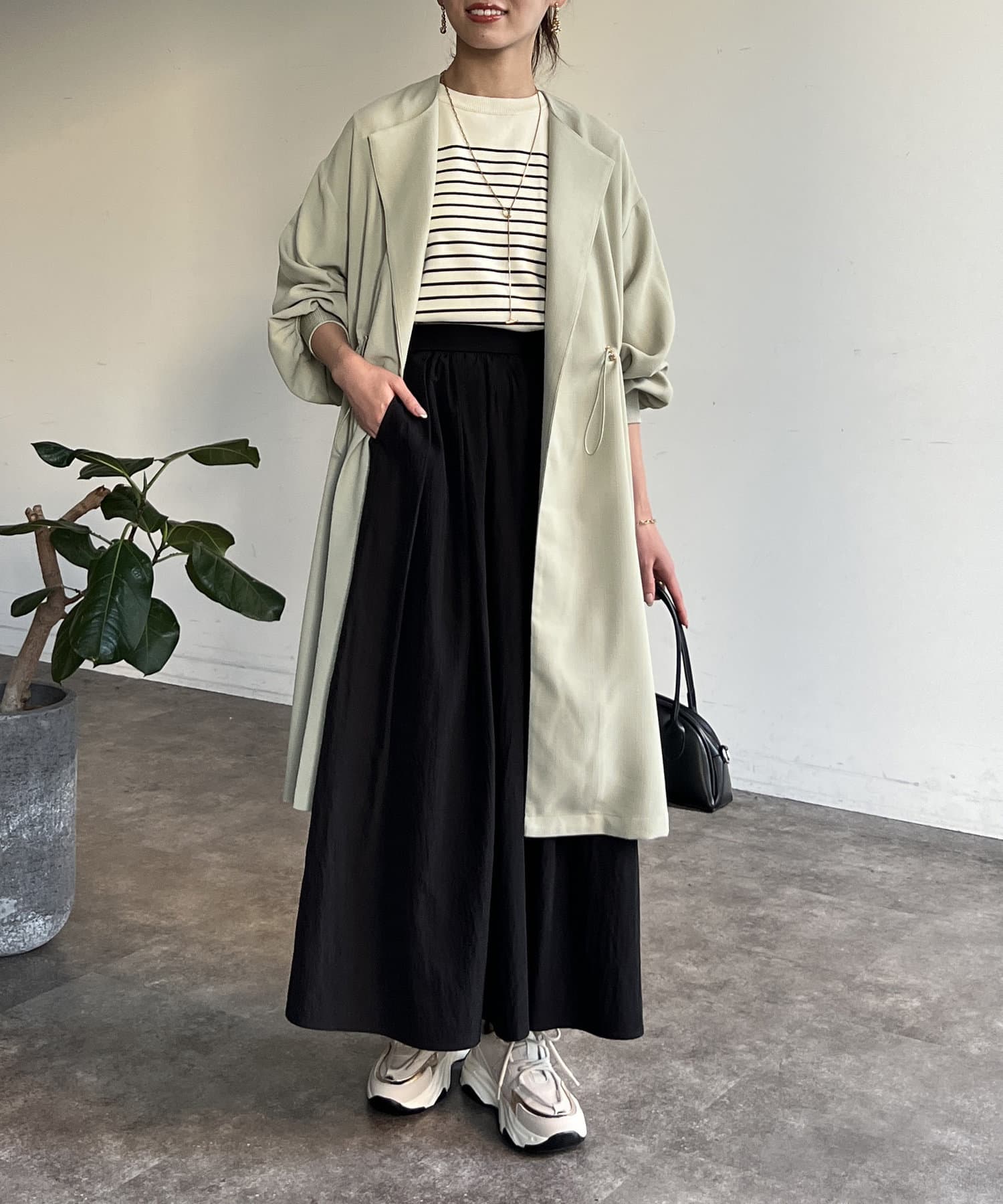 ウエストのドロストが付いているので、お好みのスタイルで楽しんでいただけるライトコート。